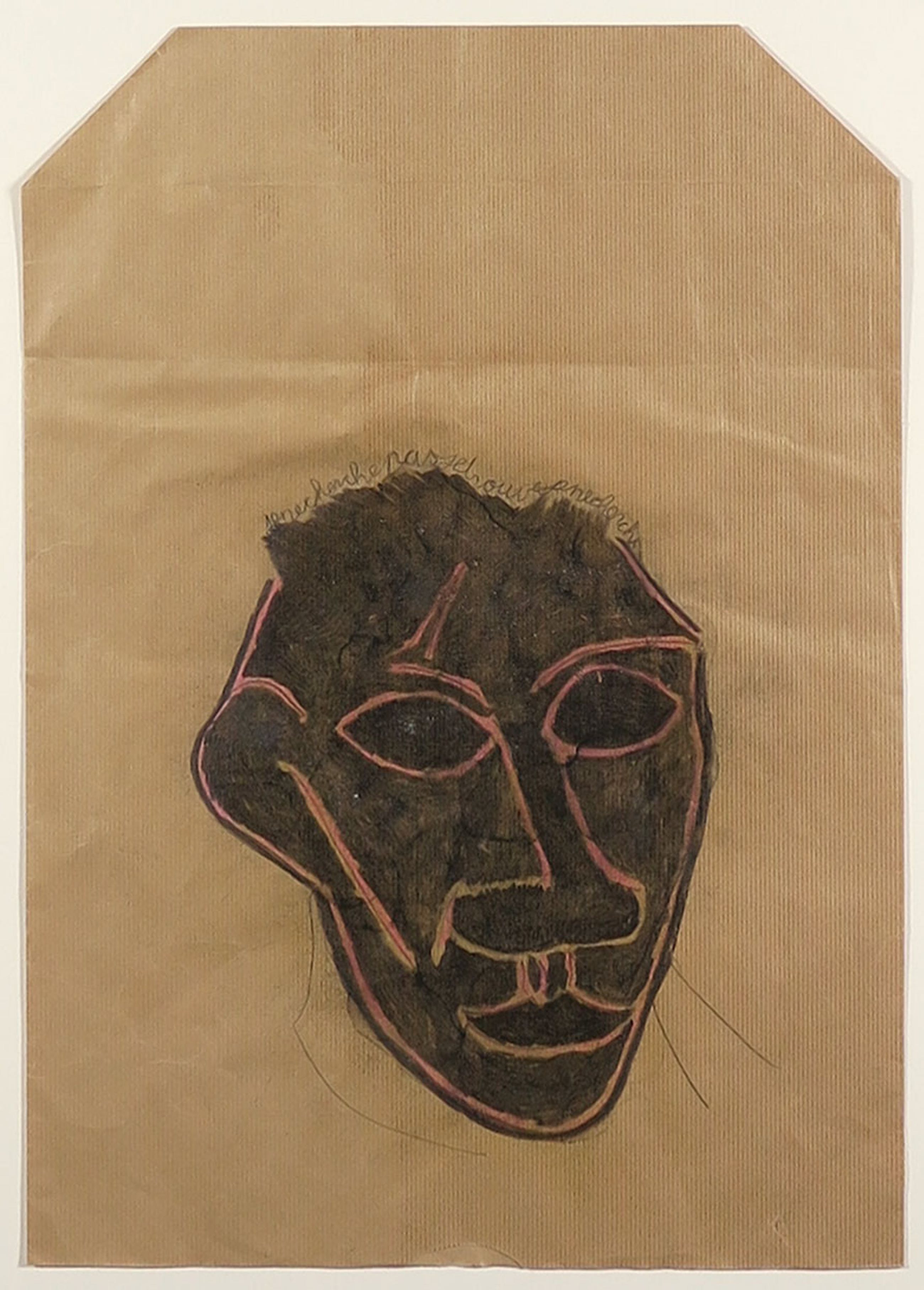 Gemengde techniek (o.a. potlood en krijt) op kraftpapier.