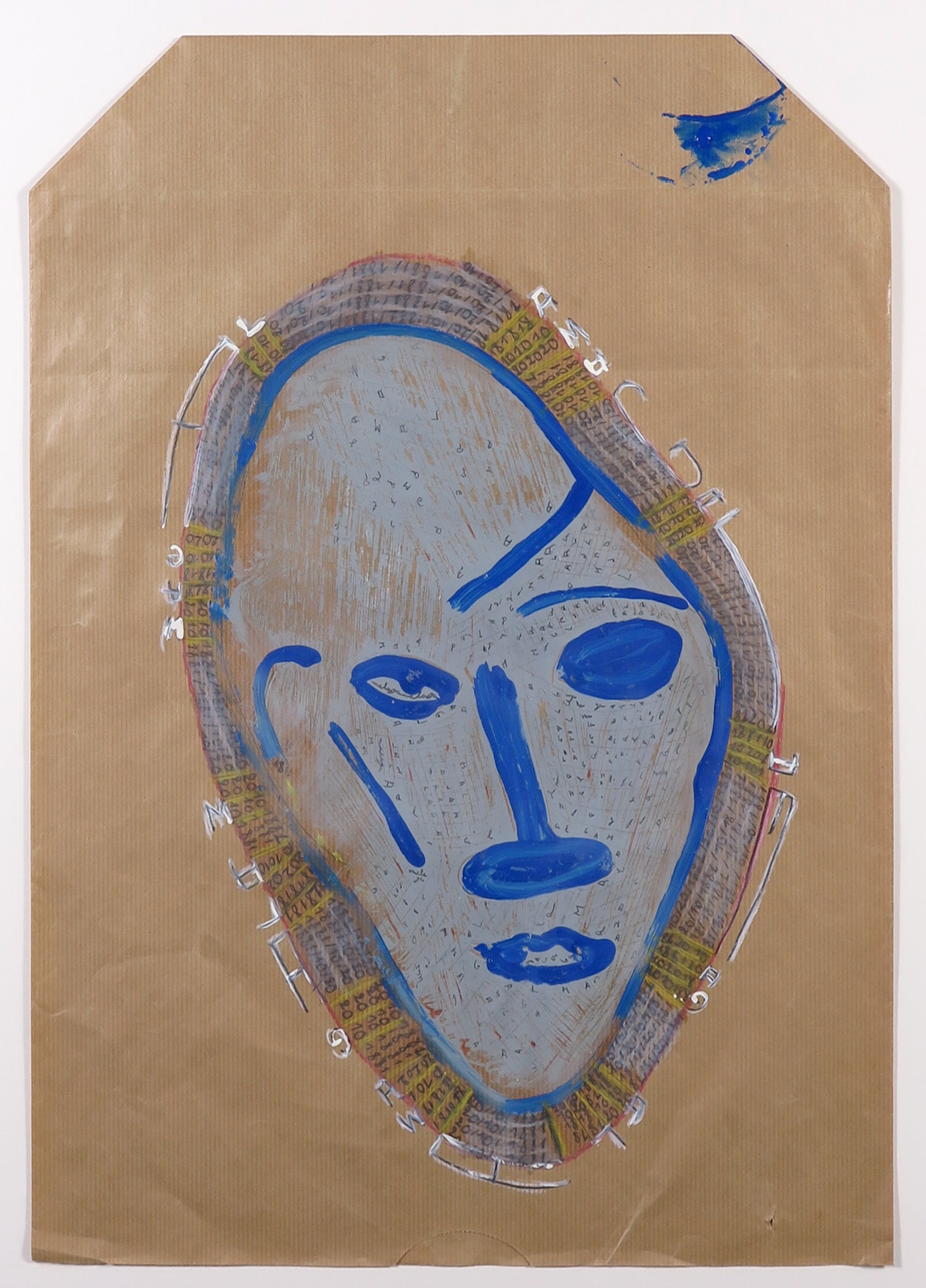 Gemengde techniek (o.a. acryl en potlood) op kraftpapier.