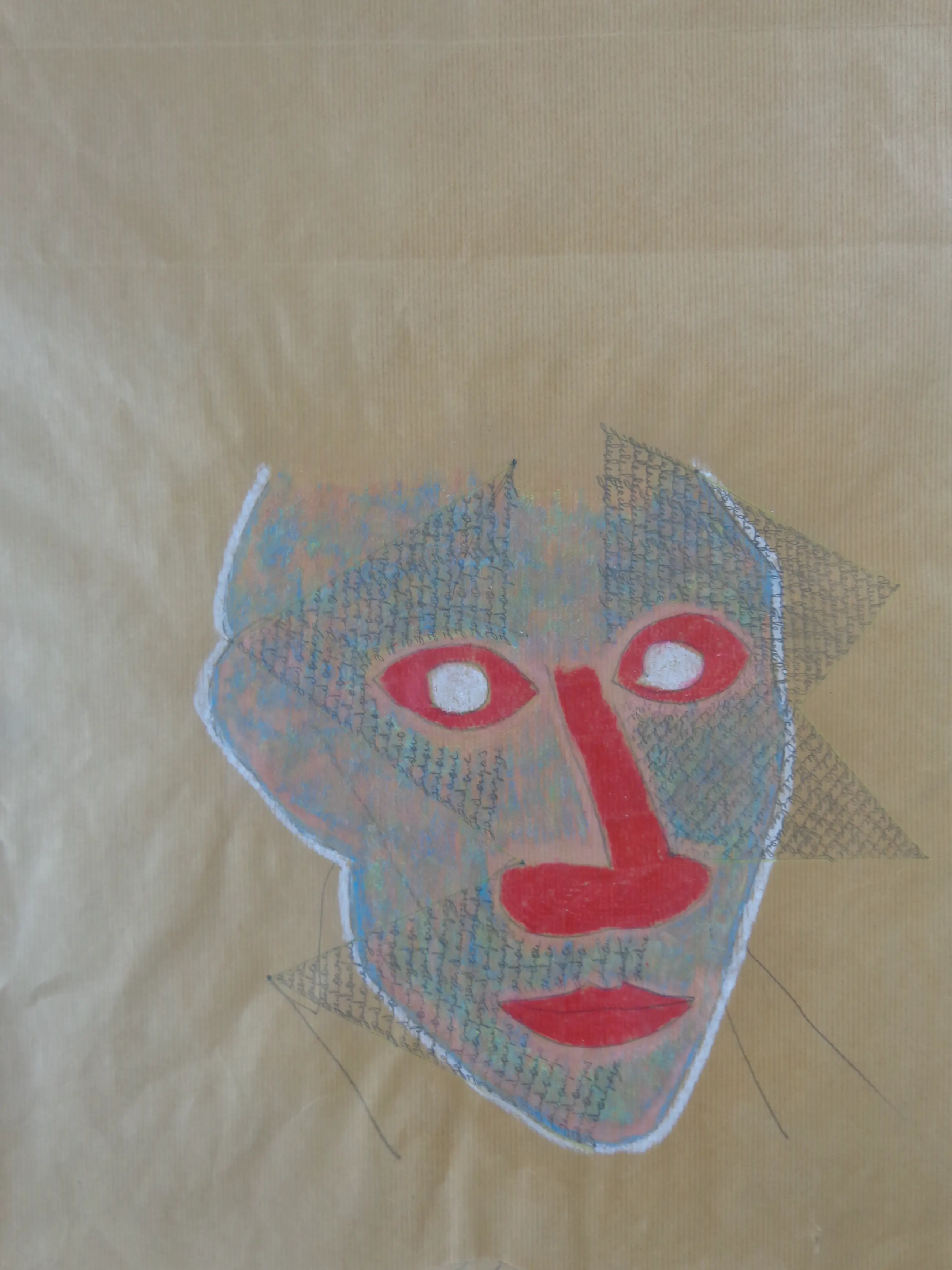 Dirk Celis (°1949). Hoofd. Origineel werk van pastelkrijt en potlood op bruin papier (papieren zak). Signatuur niet gevonden. Verso etiket kunstuitleen met naam kunstenaar + prijsetiket 800 euro. Zeer goede staat.