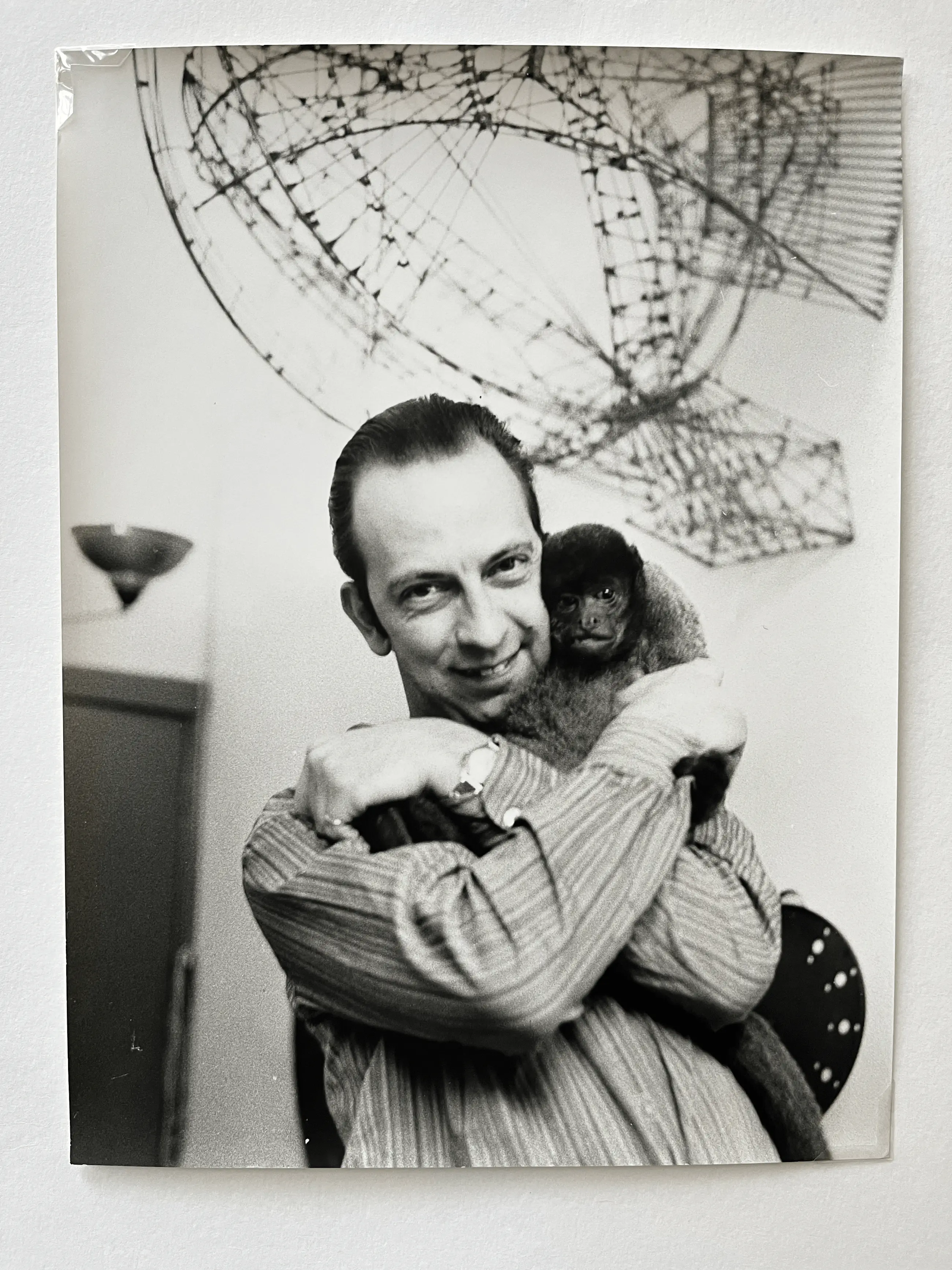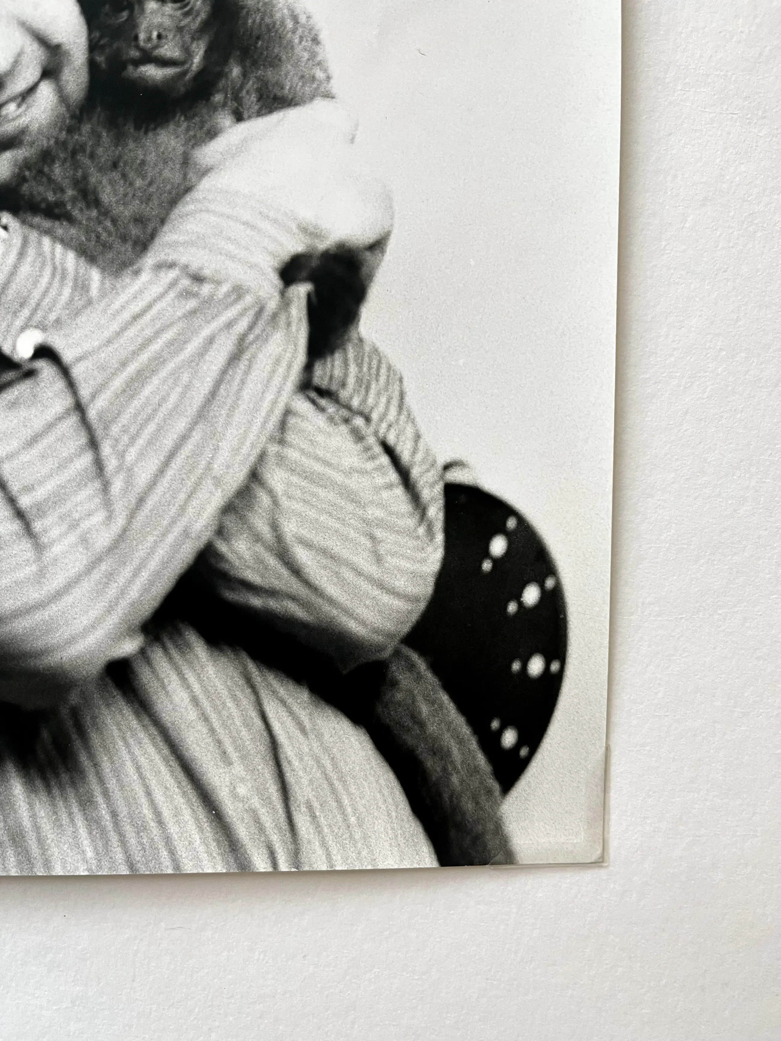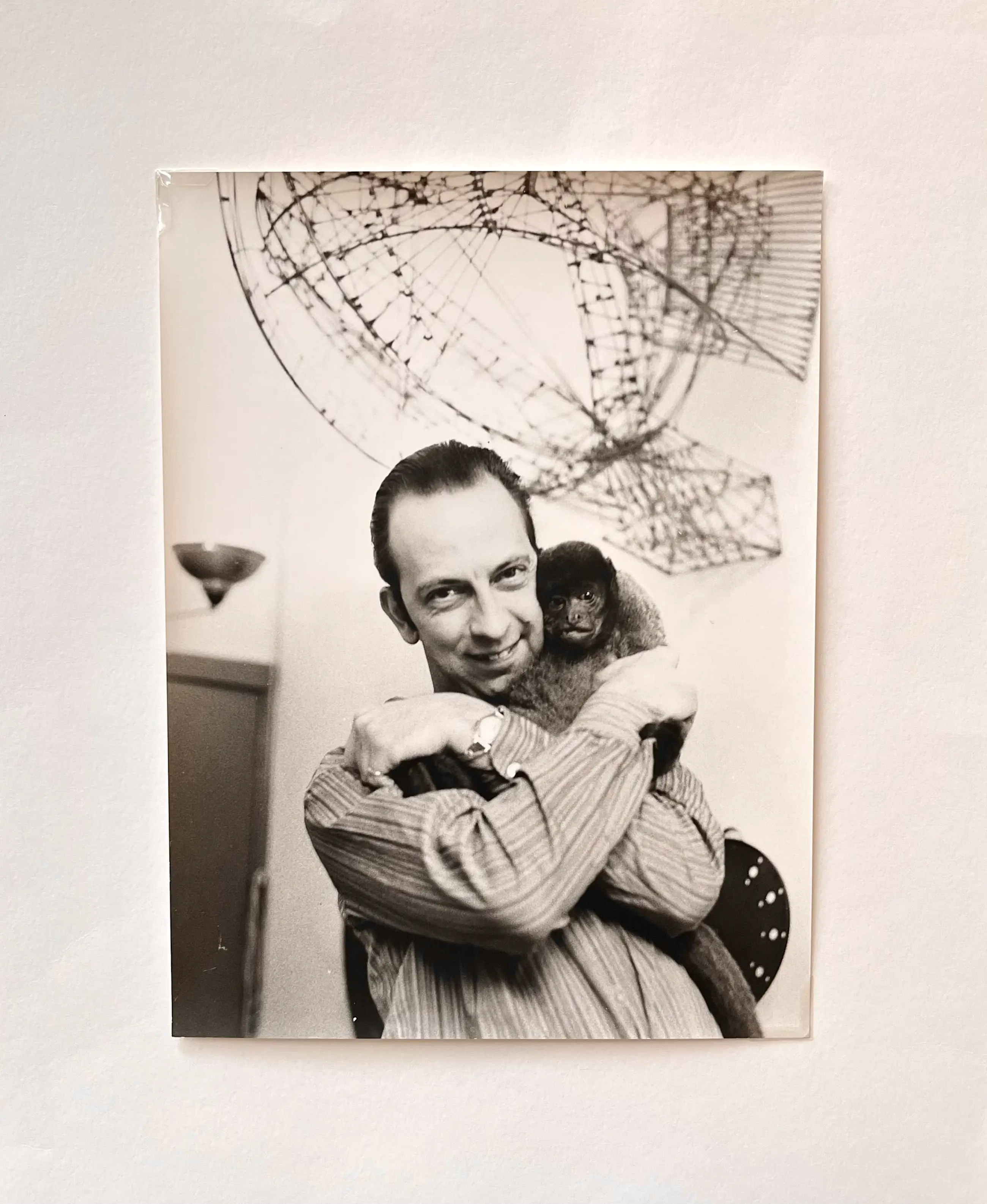 Prachtige foto uit 1955 van de Cobra kunstenaar Constant met aap op de schouder.