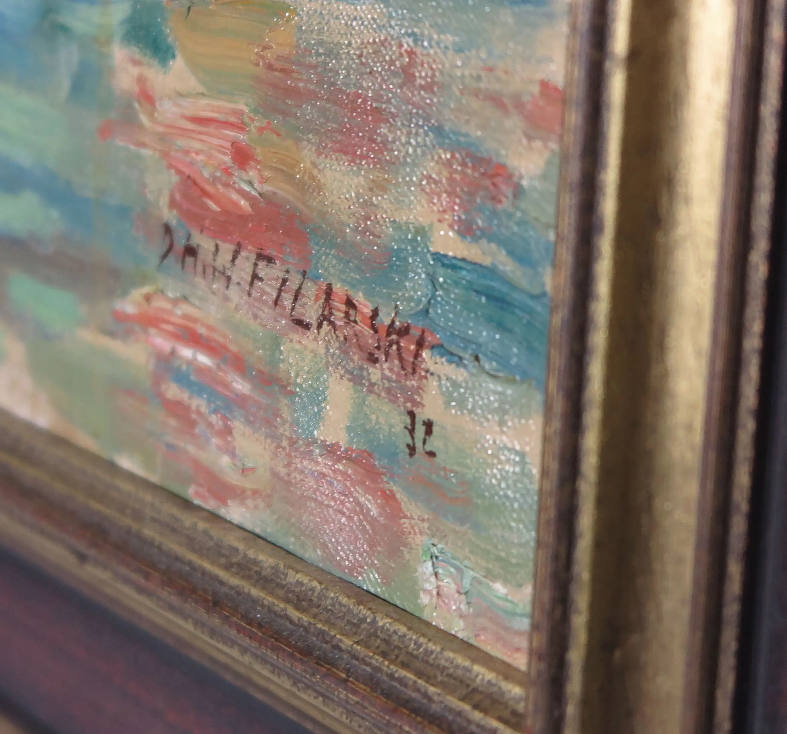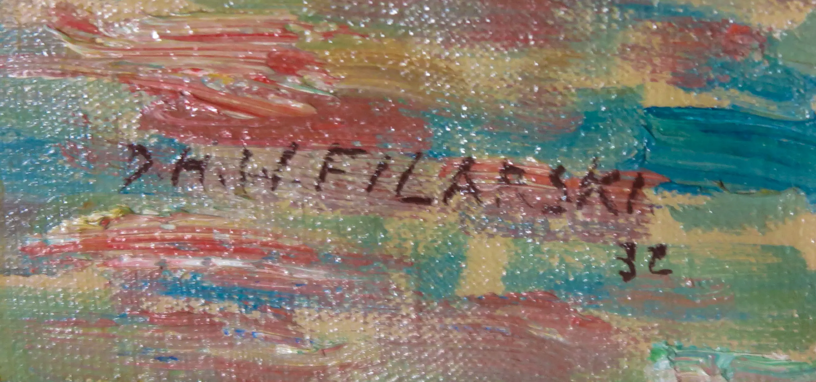 | Er is een zeer lichte bolling (door spanning op het doek) zichtbaar bij de handtekening, zie foto's. | |