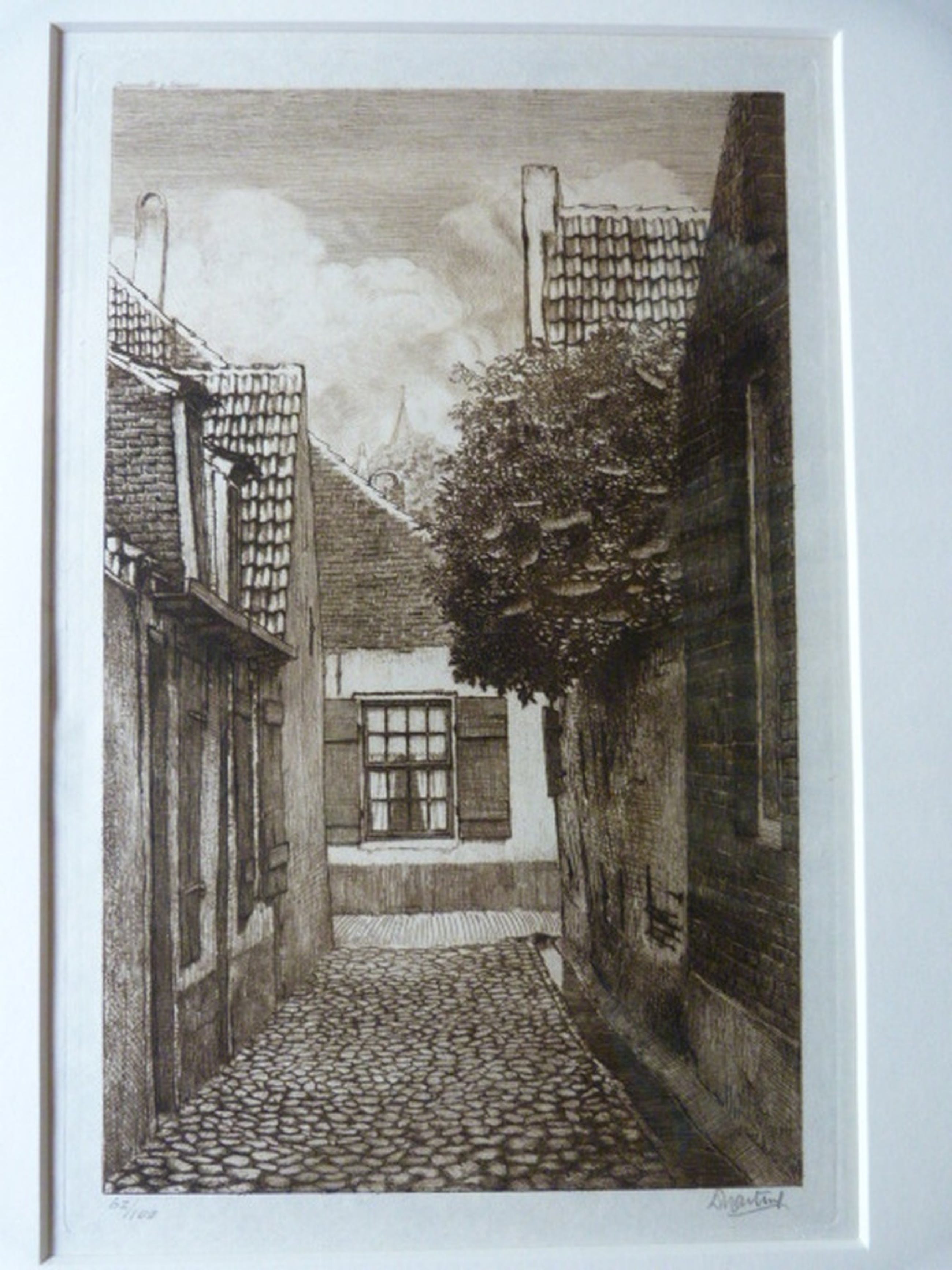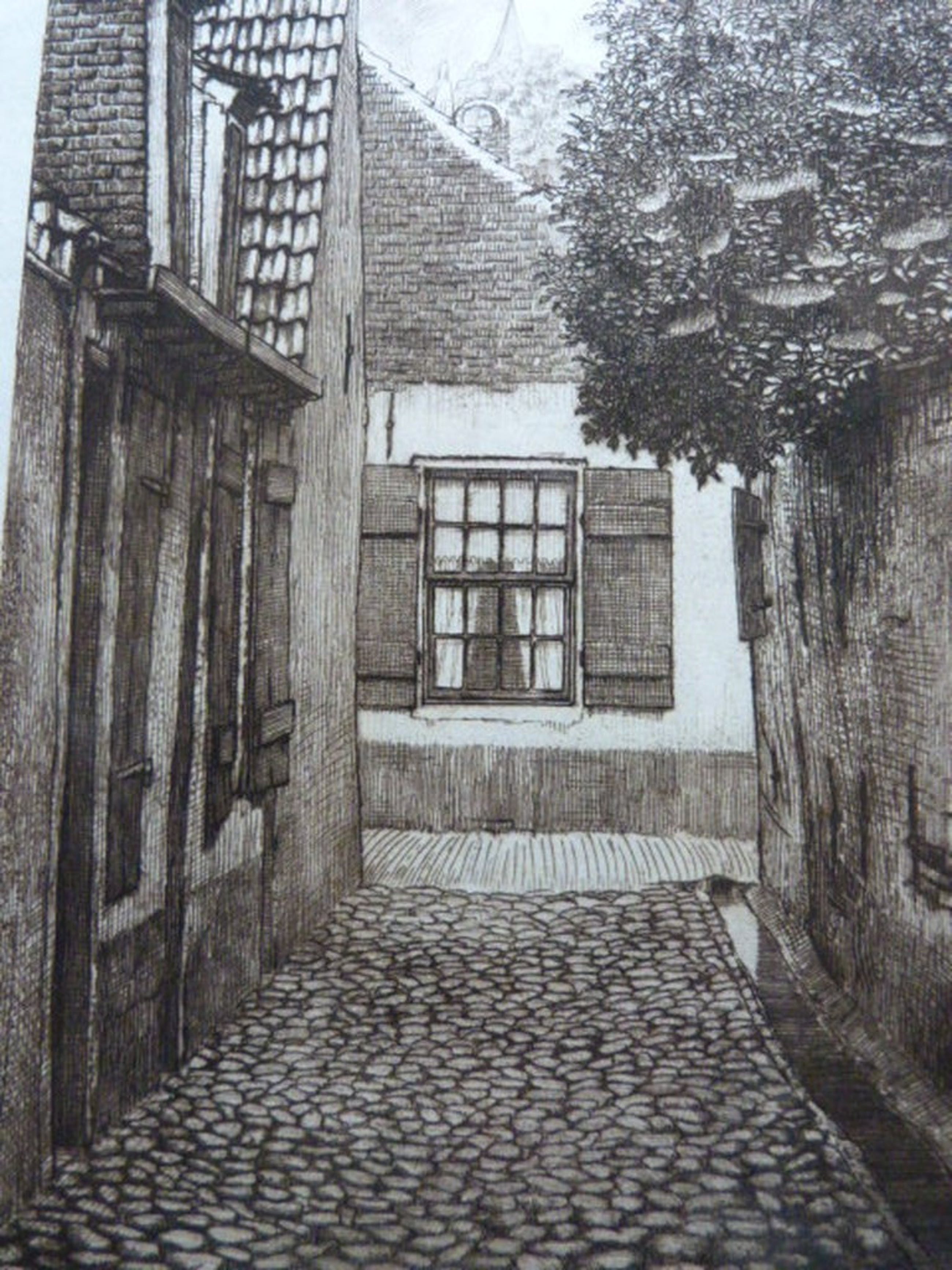 Ets, passe-partout en lijst zijn in zeer goede staat.