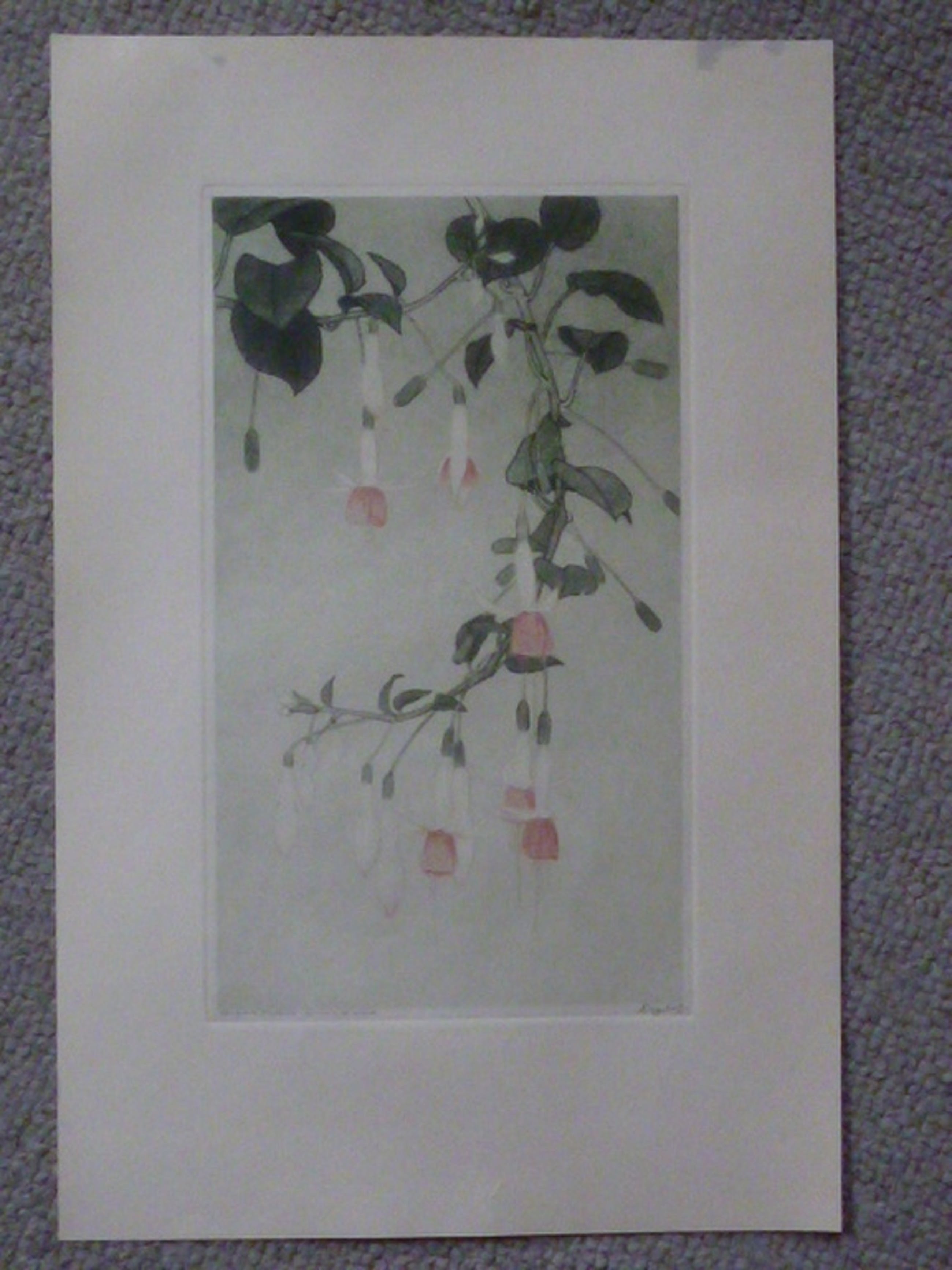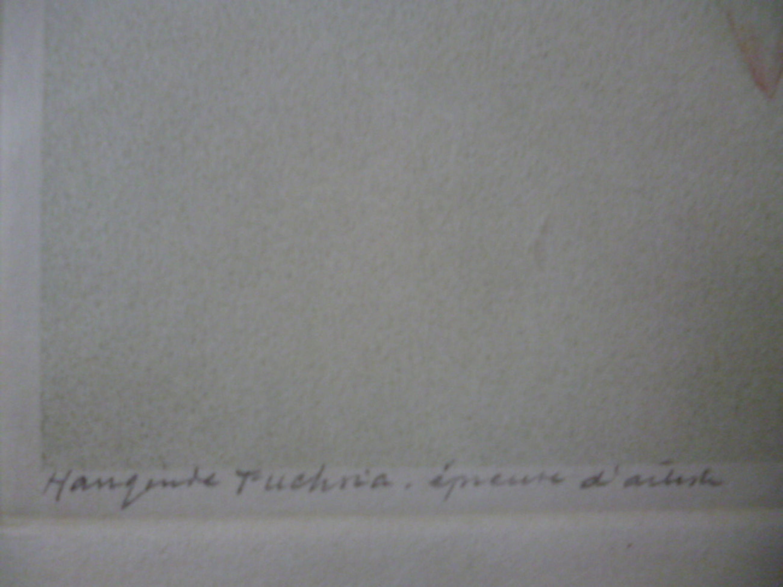 Fraaie ets en aquatint in kleuren. Potlood gesigneerd rechtsonder.