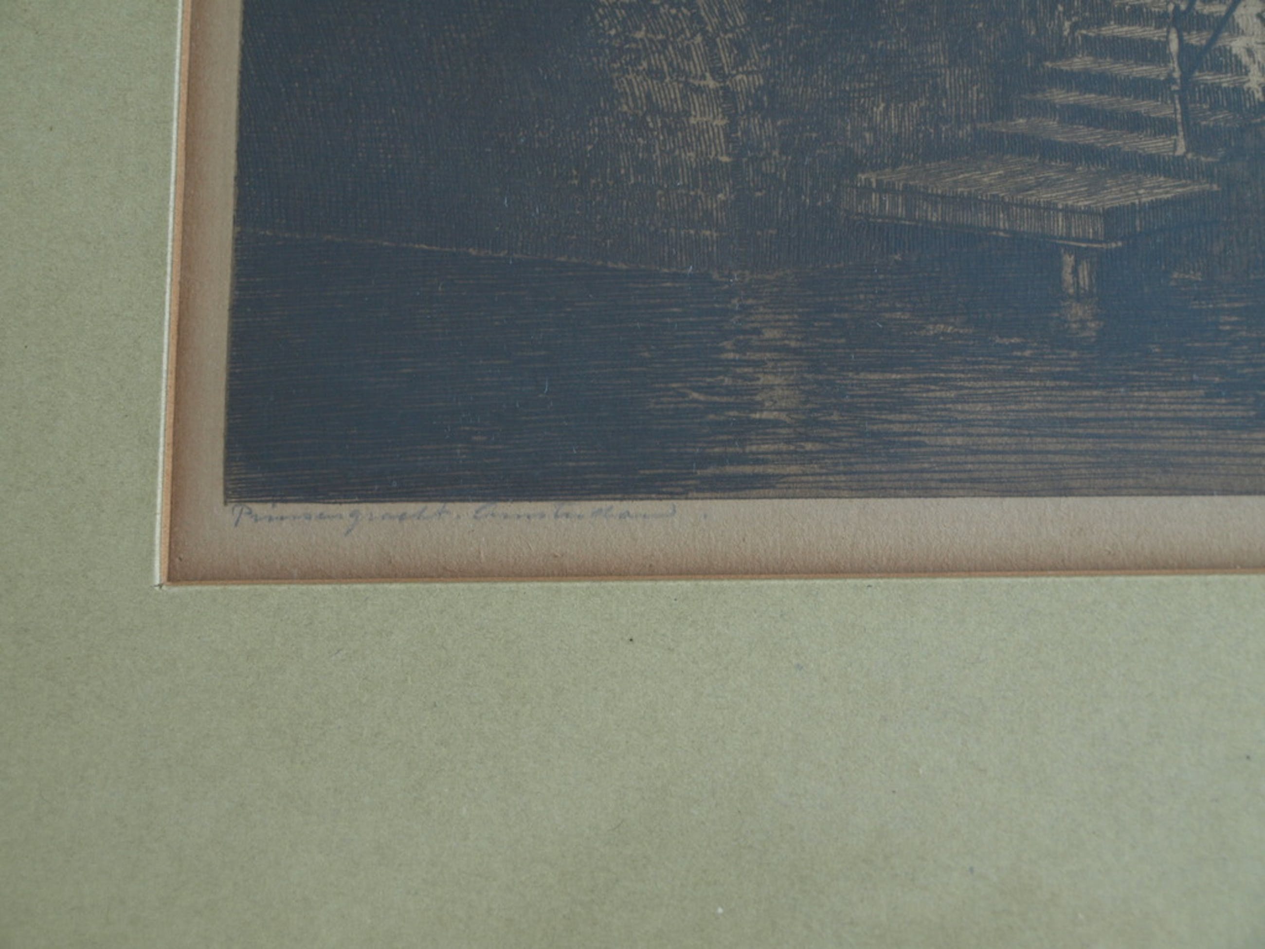 Conditie: Het papier van de ets is wat ‘vergeeld’. Verder in goede staat. De lijst heeft slijtplekjes.