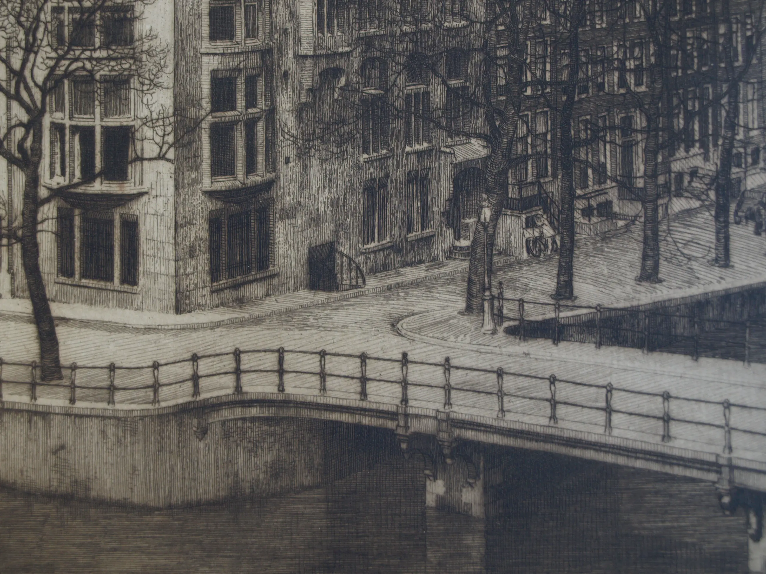 -Gesigneerd en getiteld in de ets. Niet ingelijst, wel achter een passe-partout.