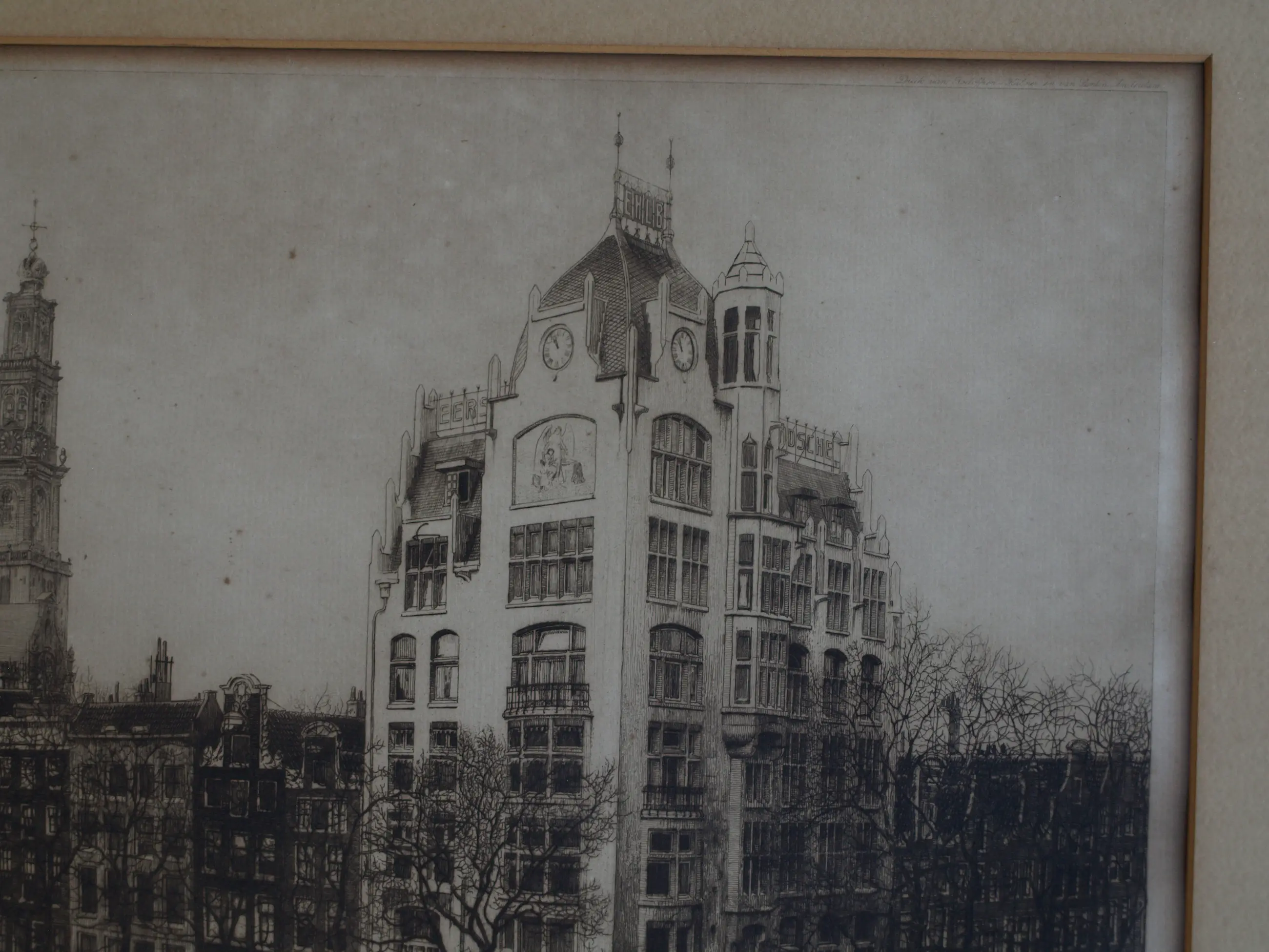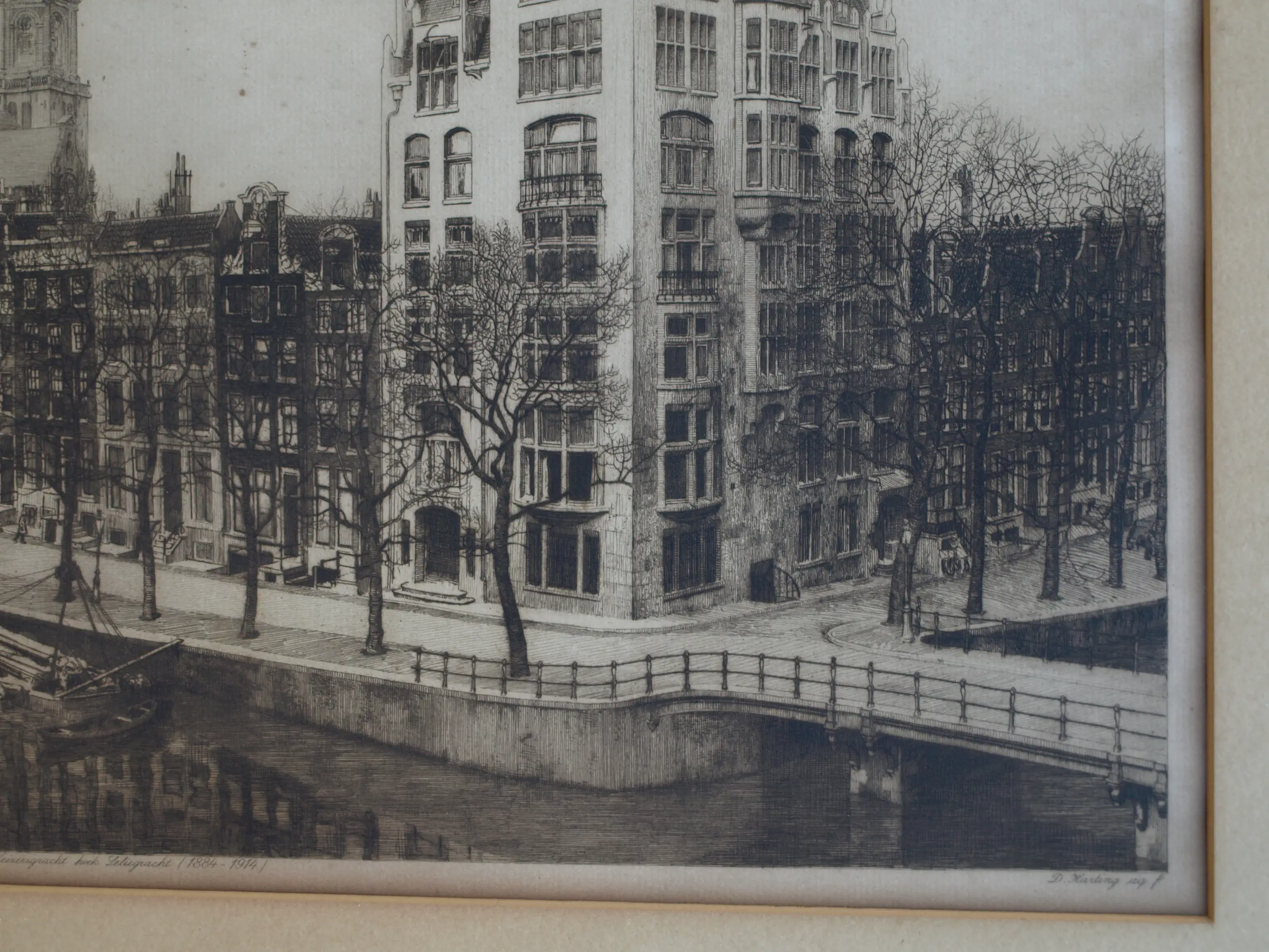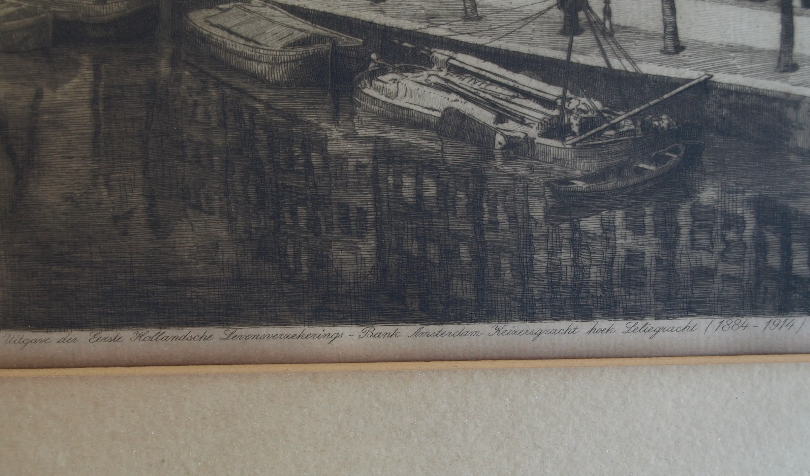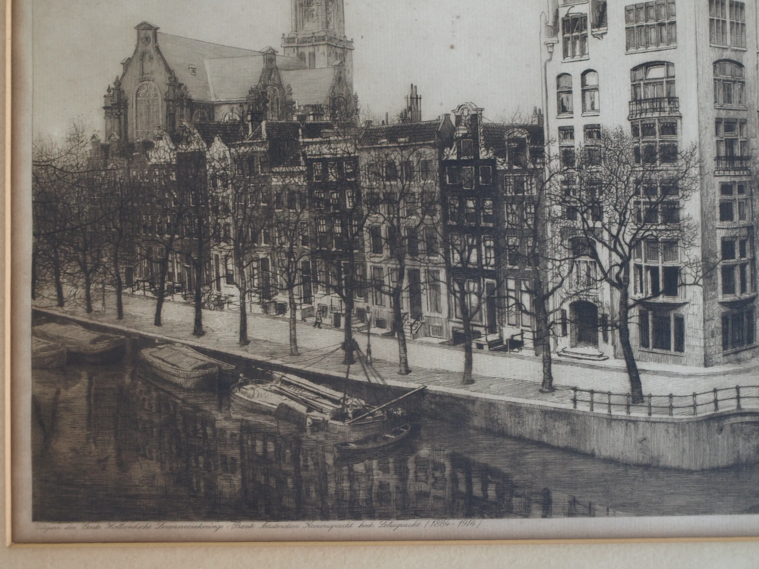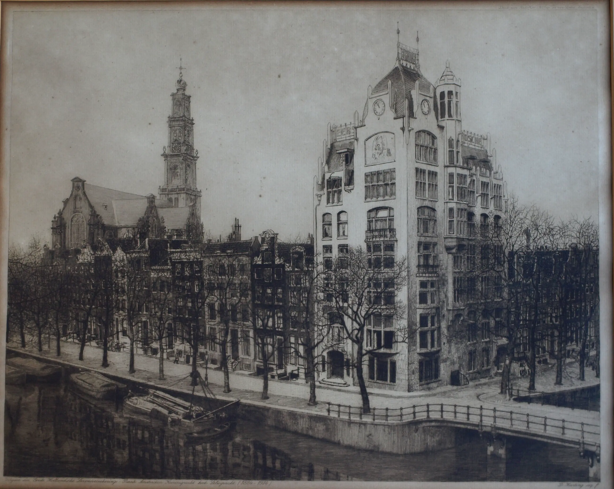 Gemaakt in opdracht van de “Eerste Hollandsche Levensverzekerings Bank Amsterdam”, gelegen aan de Keizersgracht op de hoek van de Leliegracht. De ets is uitgegeven t.g.v. het 30-jarige bestaan van deze bank.