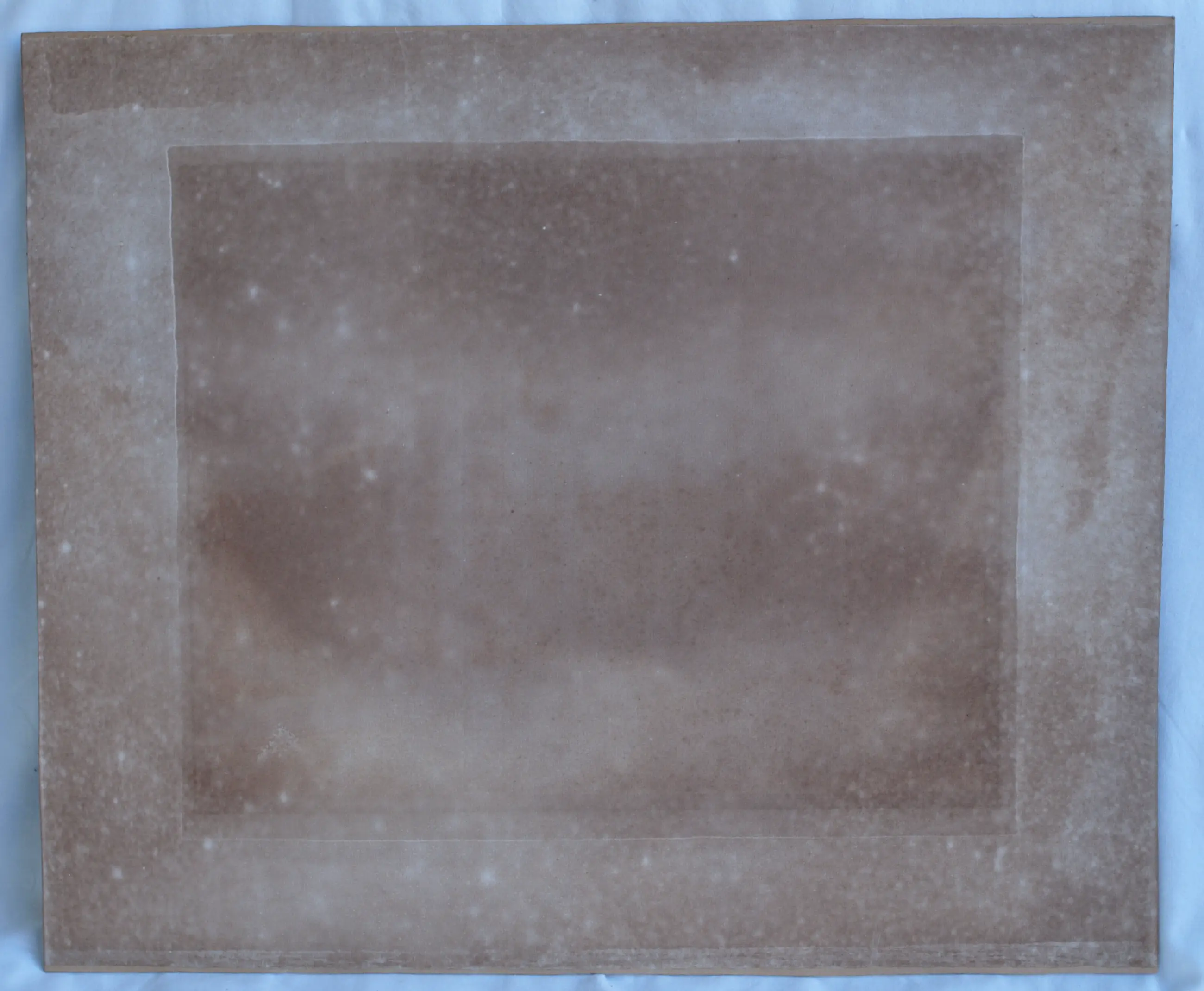 | Het papier van de ets is ‘vergeeld’ en heeft een paar zuurvlekjes. Het passe-partout is ‘vergeeld’. | |||