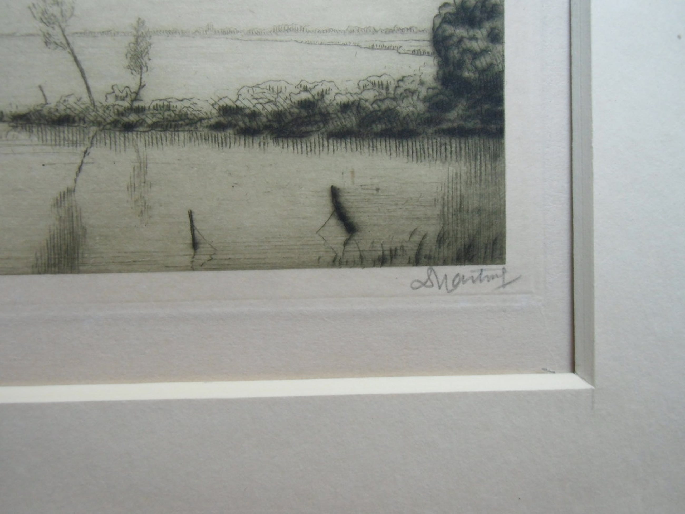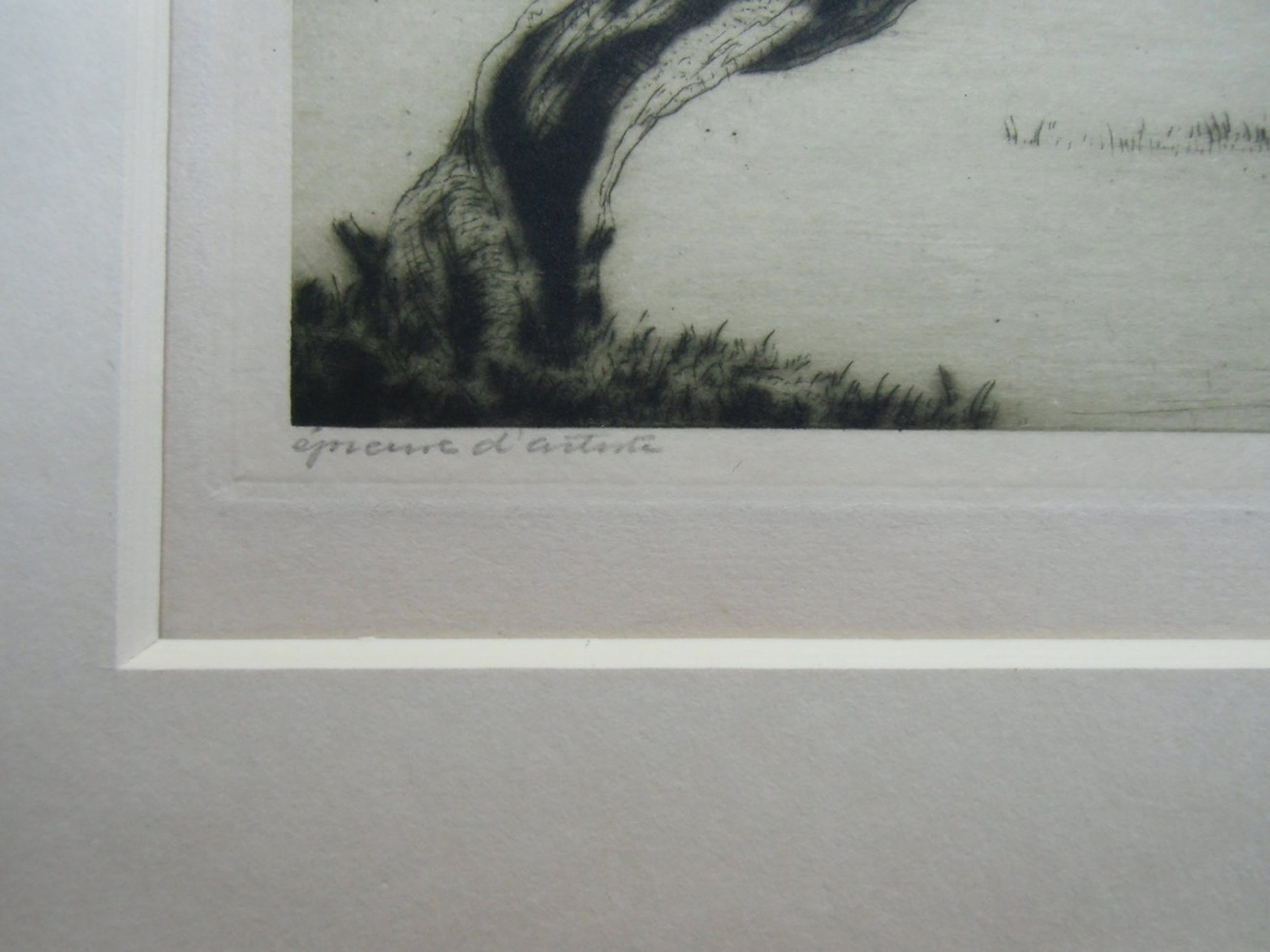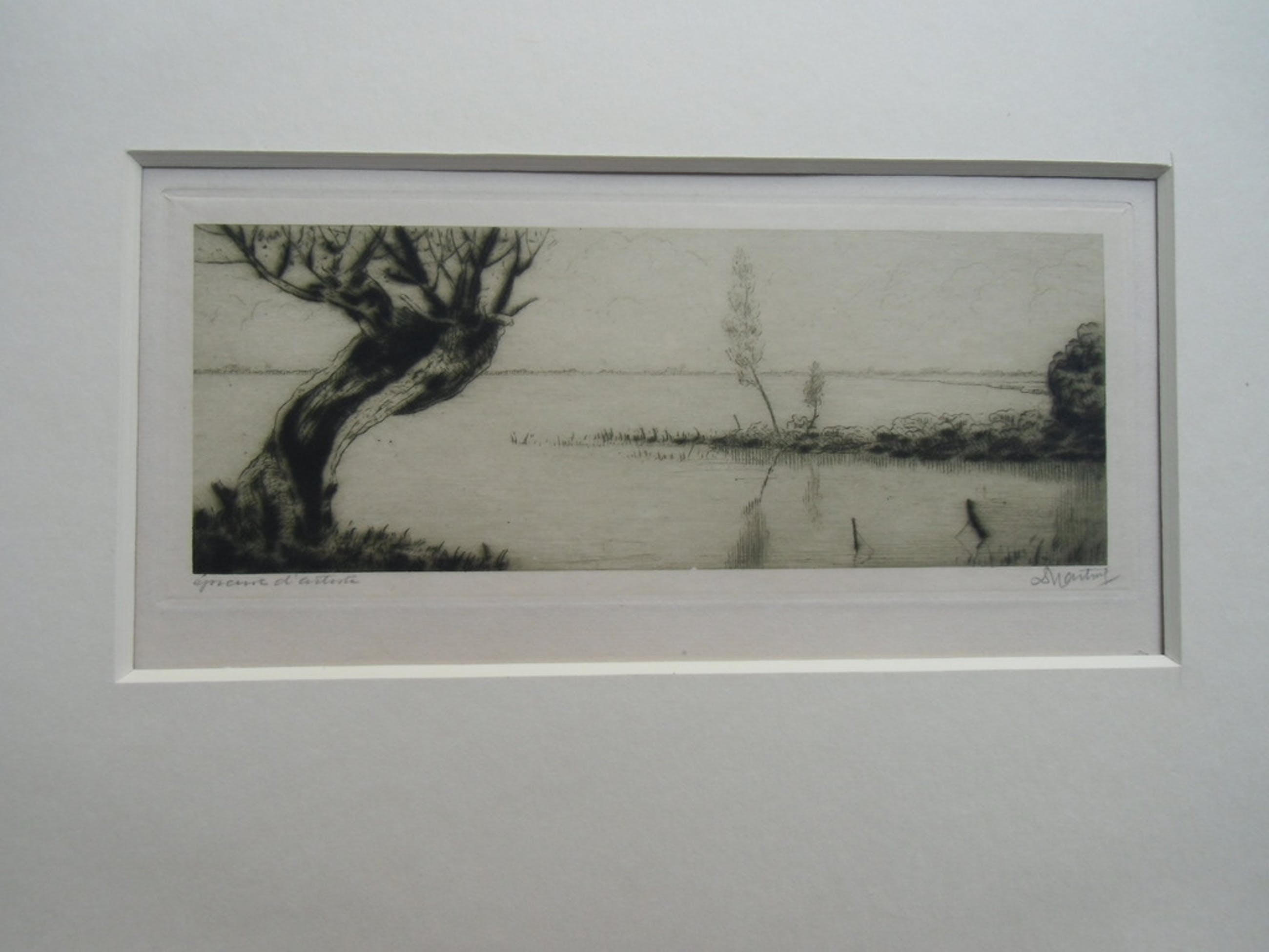 Deze ets van Dirk Harting met een beeldmaat van 5.8 x 15.3 cm is in goede staat. Gesigneerd met potlood en épreuve d'artiste. Opgenomen in passepartout met achtervel.