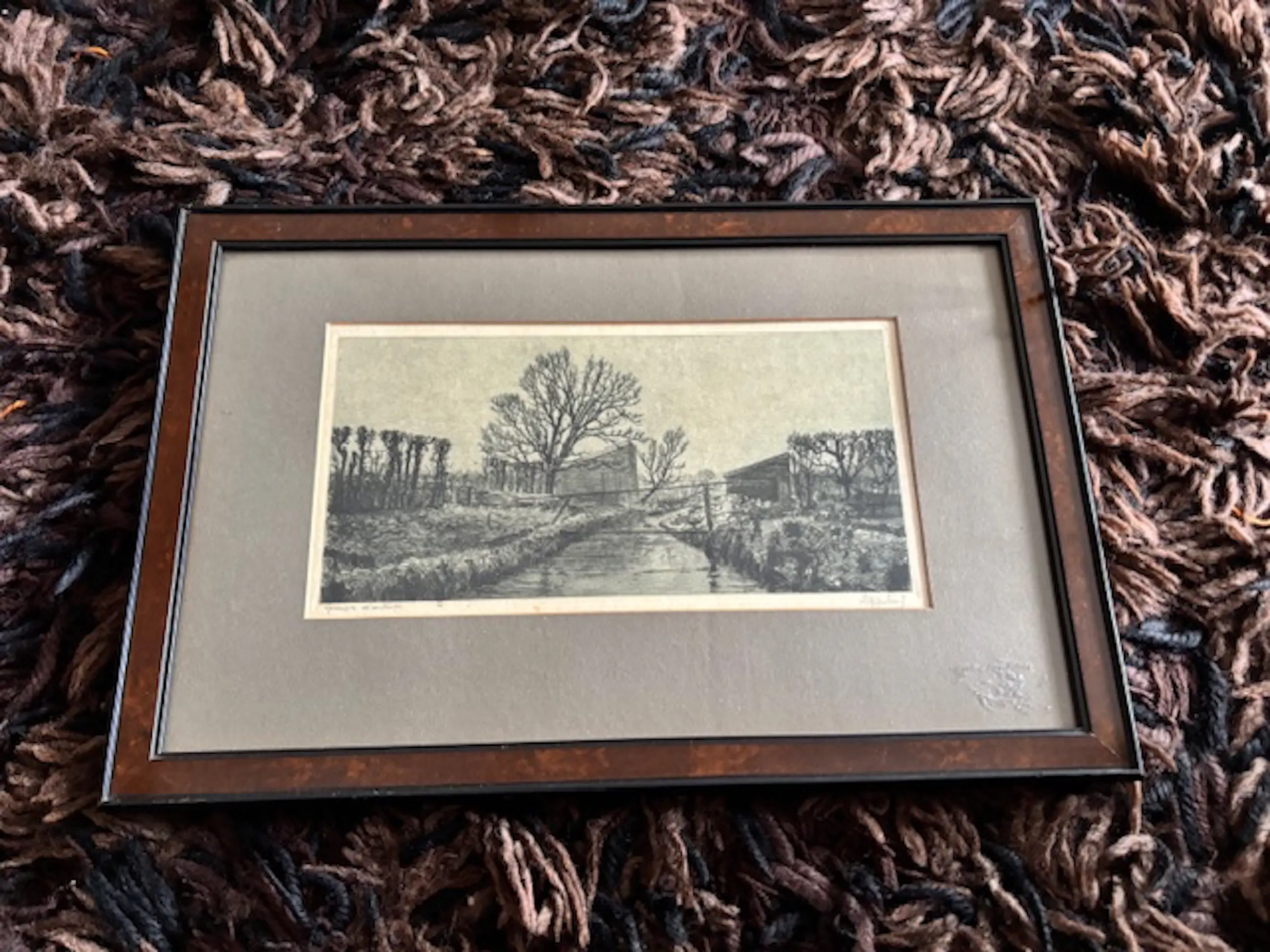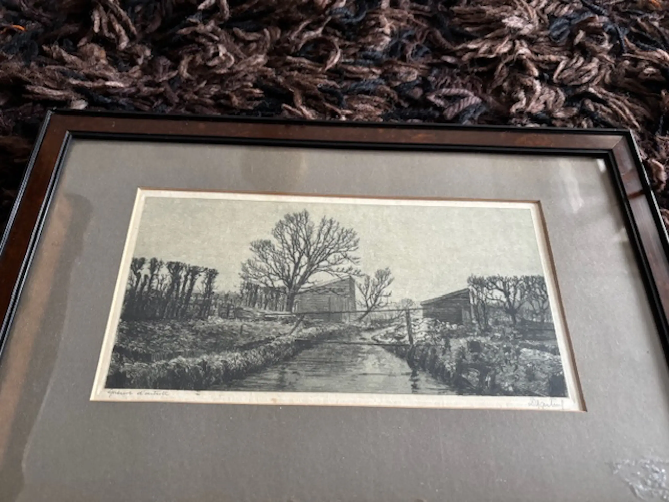Een ets uit de eerste helft van de 20e eeuw van de Nederlandse kunstenaar Dirk Harting met voorstelling van een polderlandschap.