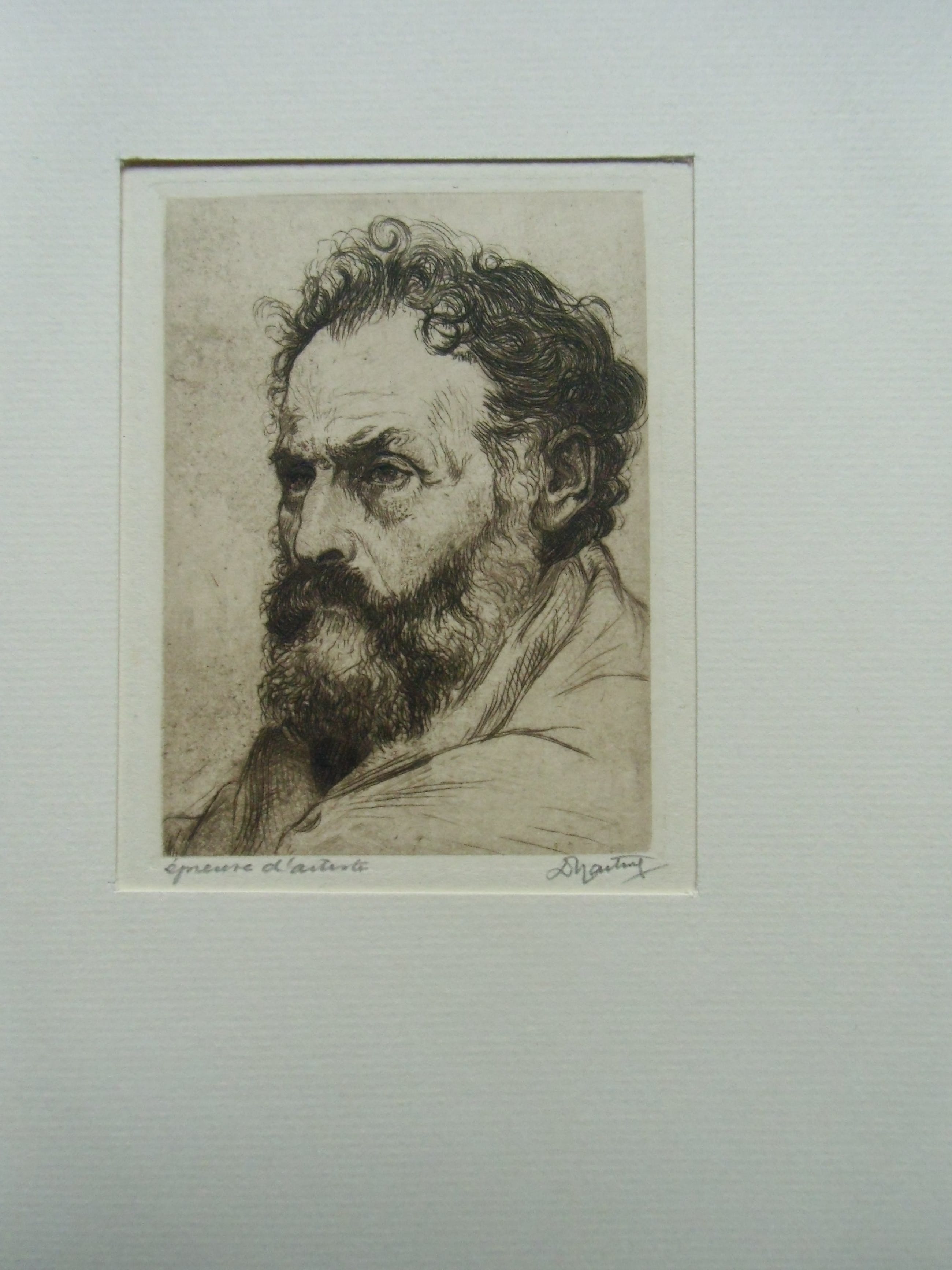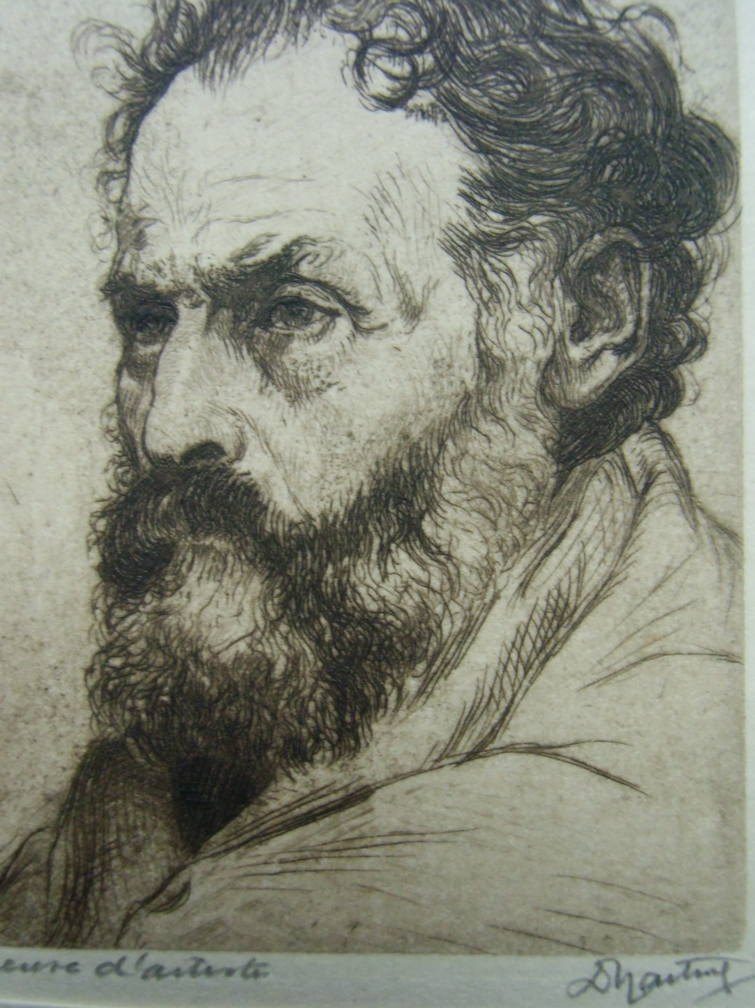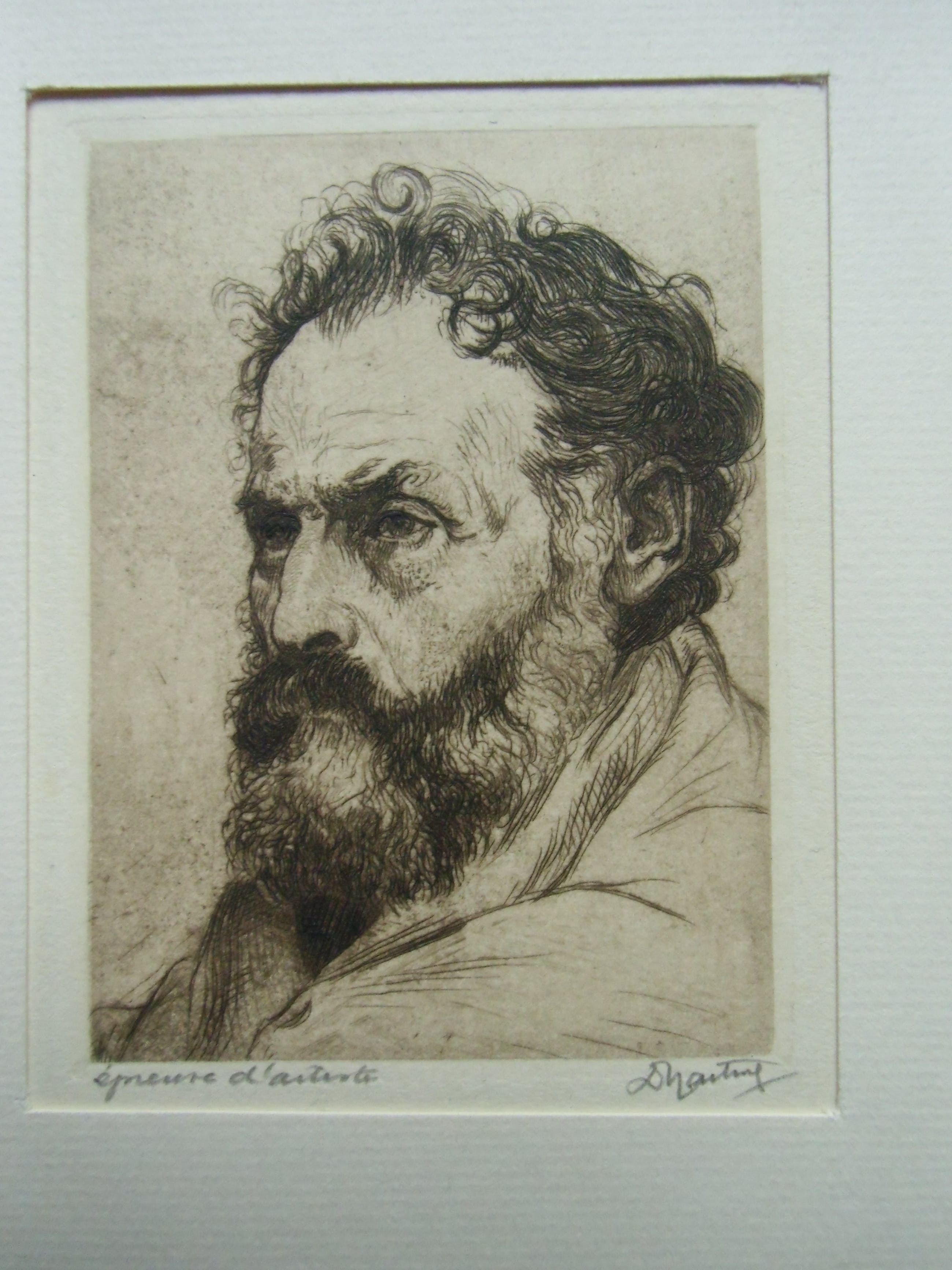 Expressieve kop van Dirk Harting. Épreuve d ártiste en signature met potlood. Uitstekende staat.