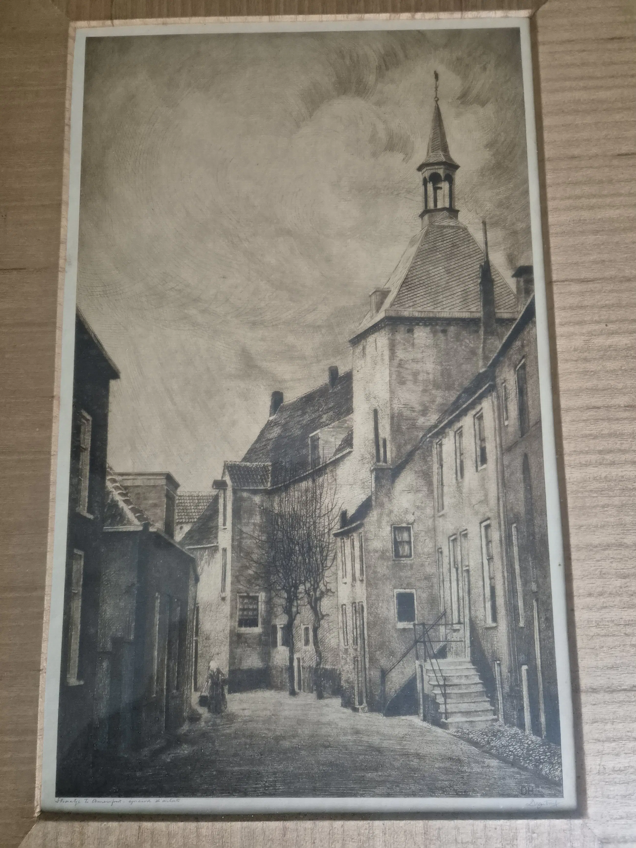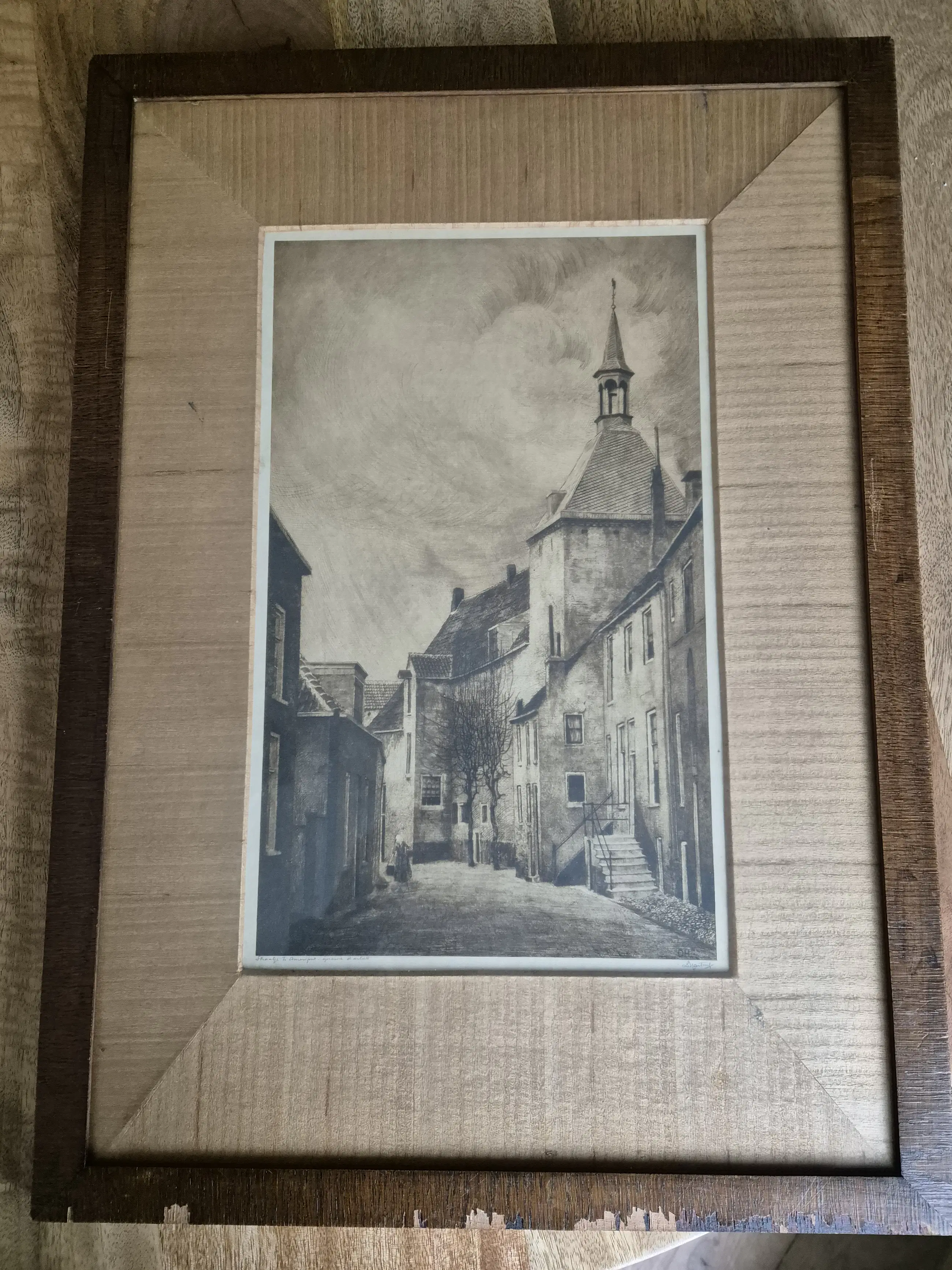 Tekening is helemaal intact, de lijst is wat beschadigd