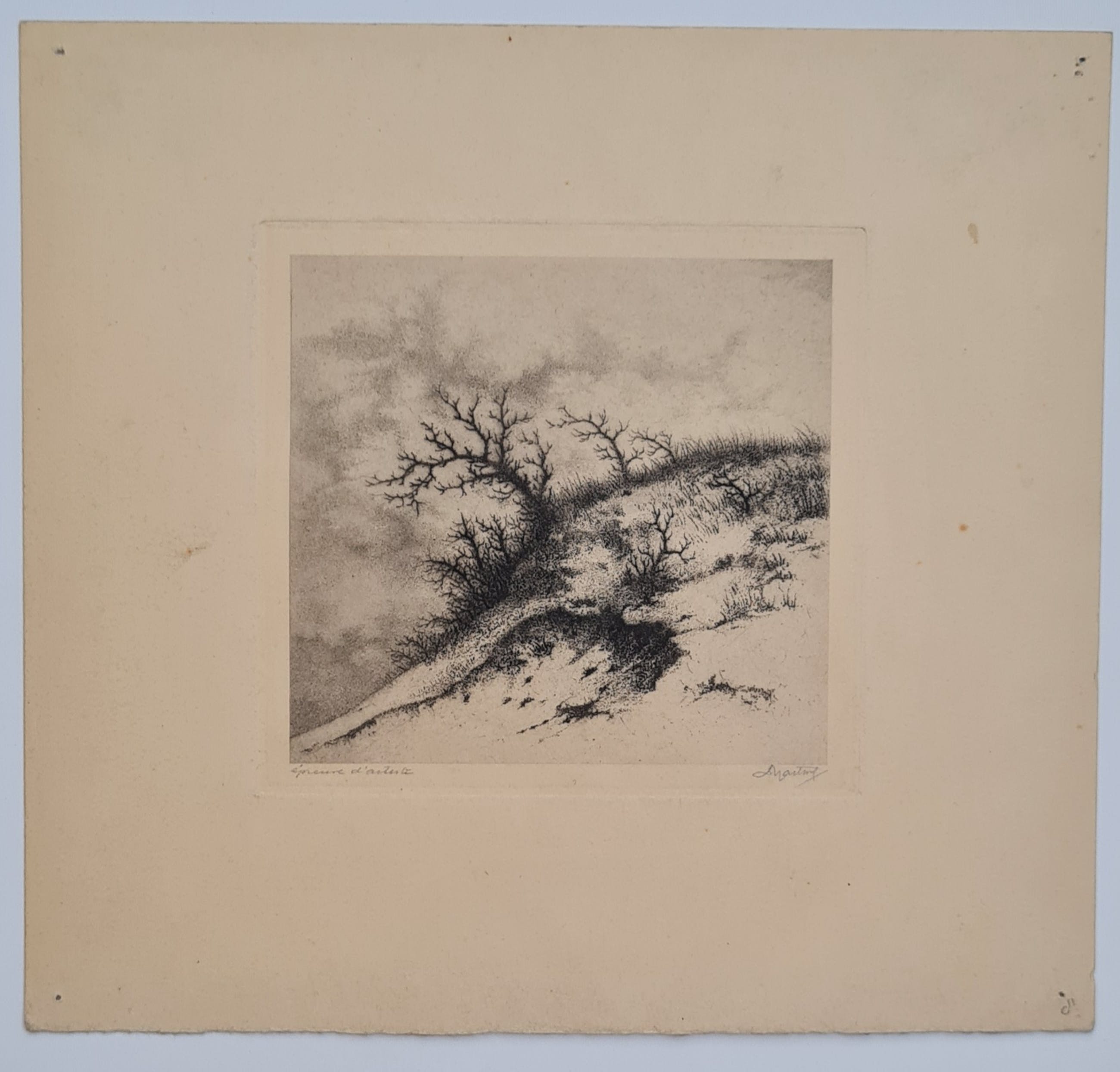 Twee verfijnde landschapsetsjes van Dirk Harting, beide handgesigneerd en gedrukt door de kunstenaar zelf.