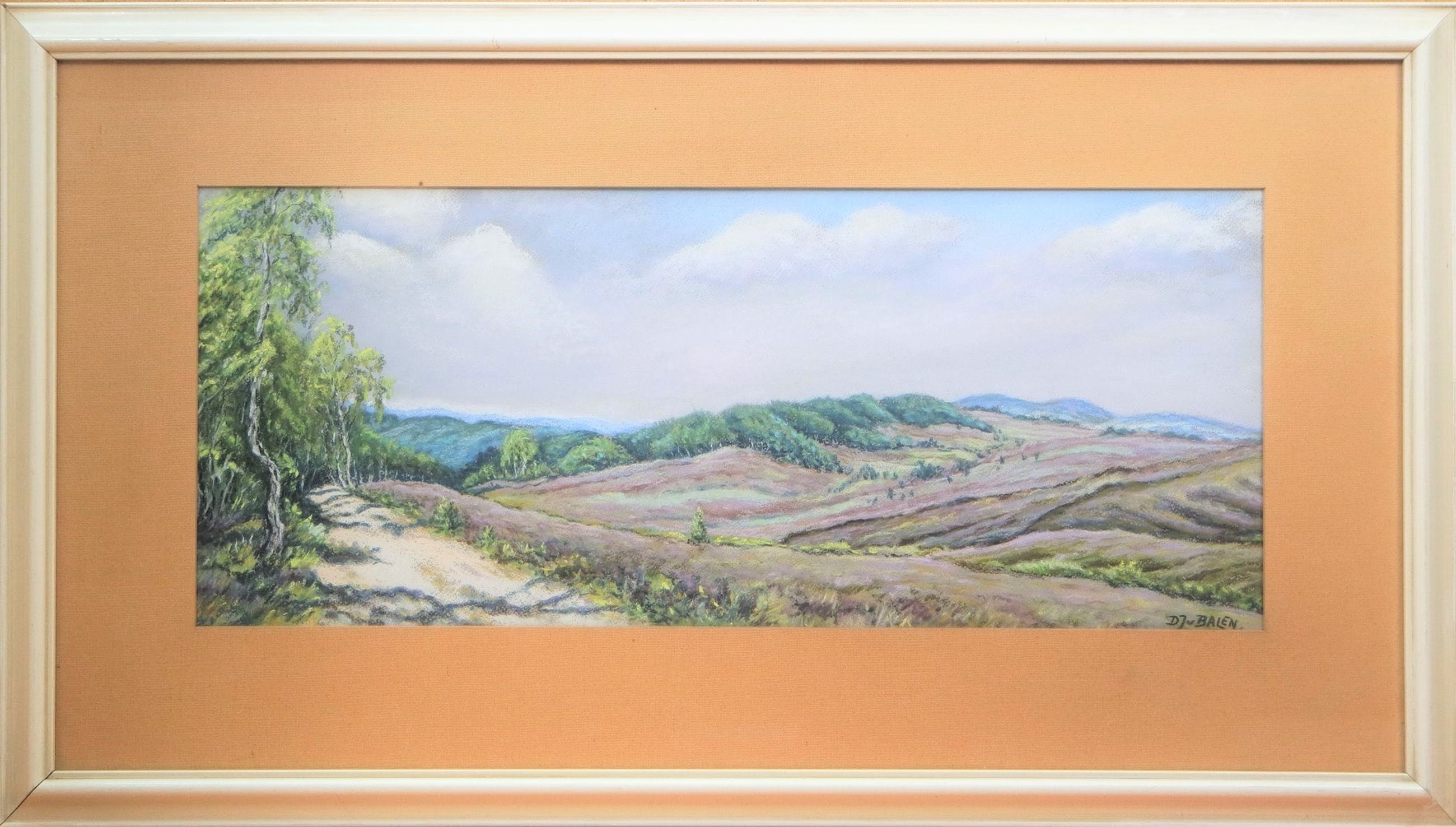 Een prachtig kunstwerk ( "heuvellandschap", pastel op papier ) van de Nederlandse kunstschilder Dirk Jacobus van Balen (1889-1970). Veluwse school. Met een mooie witte lijst en passe-partout. Het werk is rechts onder gesigneerd. Het kunstwerk is te bezichtigen bij Kunsthandel Martins te Wolvega en wordt geleverd met een echtheidscertificaat.