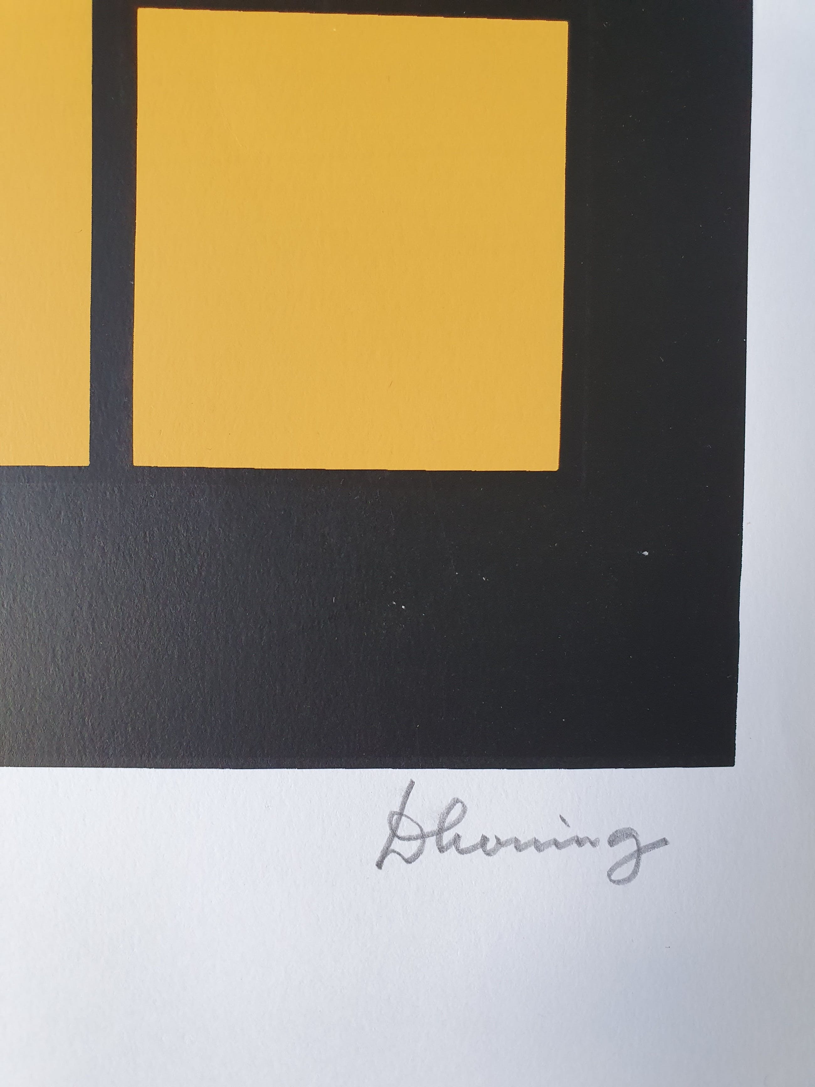 Fraaie compositie in sprekende kleuren rood, geel, blauw en zwart. Jaren '70 Handgesigneerd (rechtsonder) Genummerd 258 (linksonder) Afmetingen blad: 60 cm x 42 cm