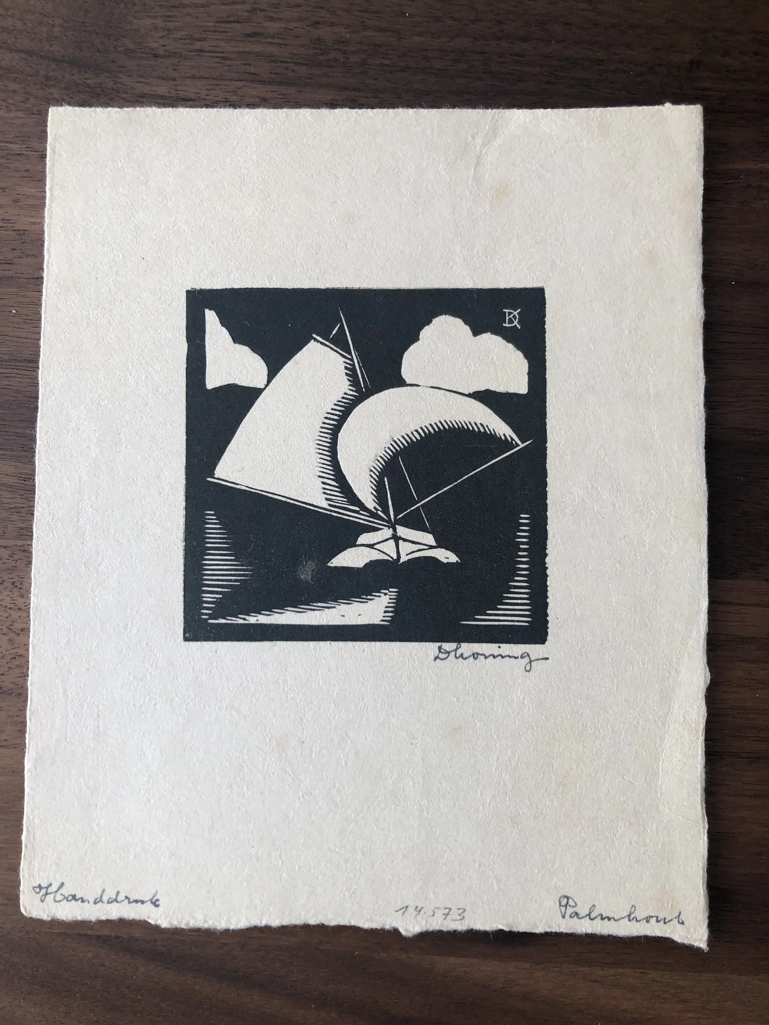 Aangeboden een fraaie houtdruk, getiteld “met volle zeilen” , rechtsonder na de druk gesigneerd