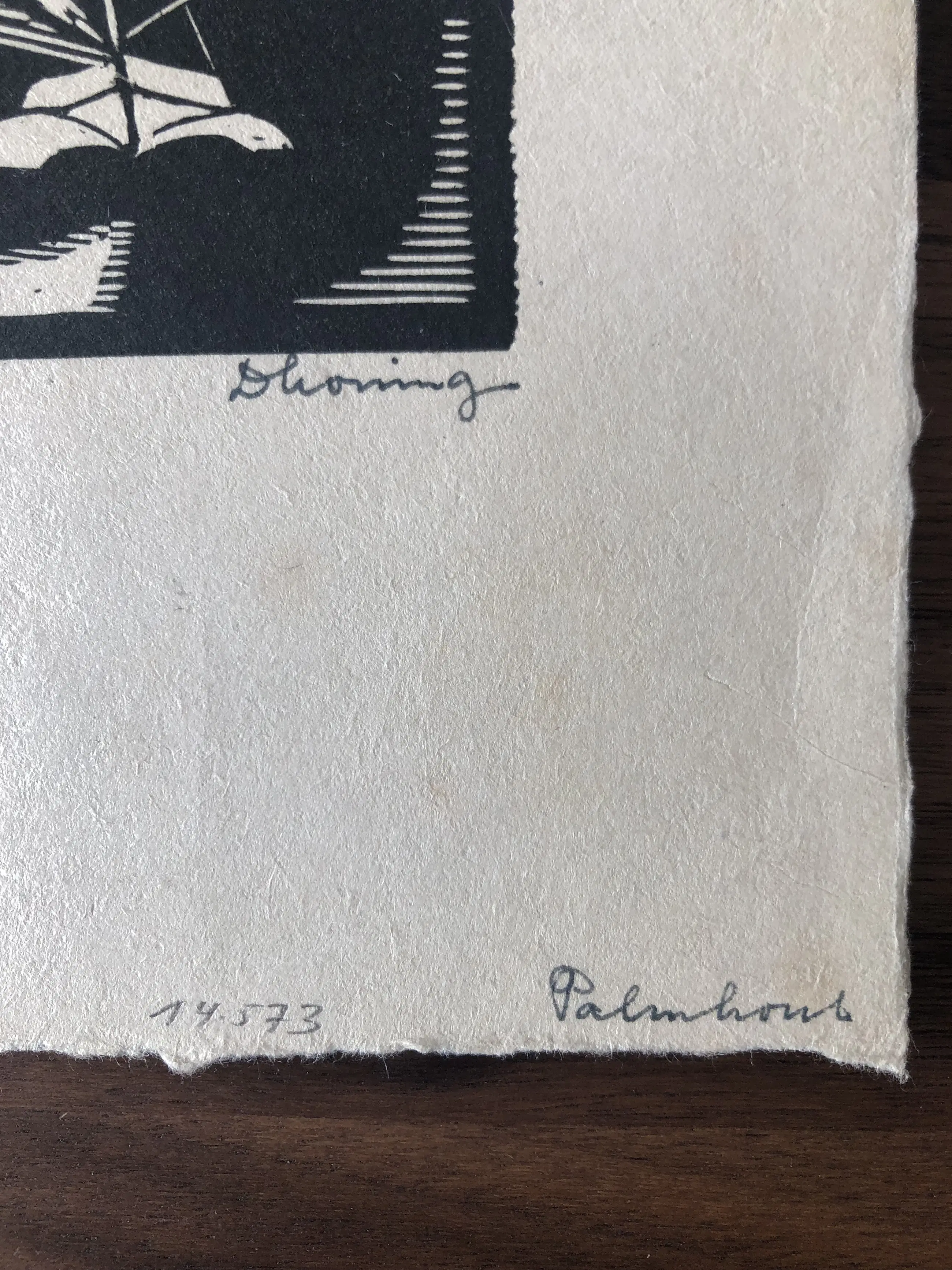 D. Koning en in de druk rechtsboven gemonogrammeerd. Afmetingen druk 7 x 7 cm, papier meet 13 x 16 cm.