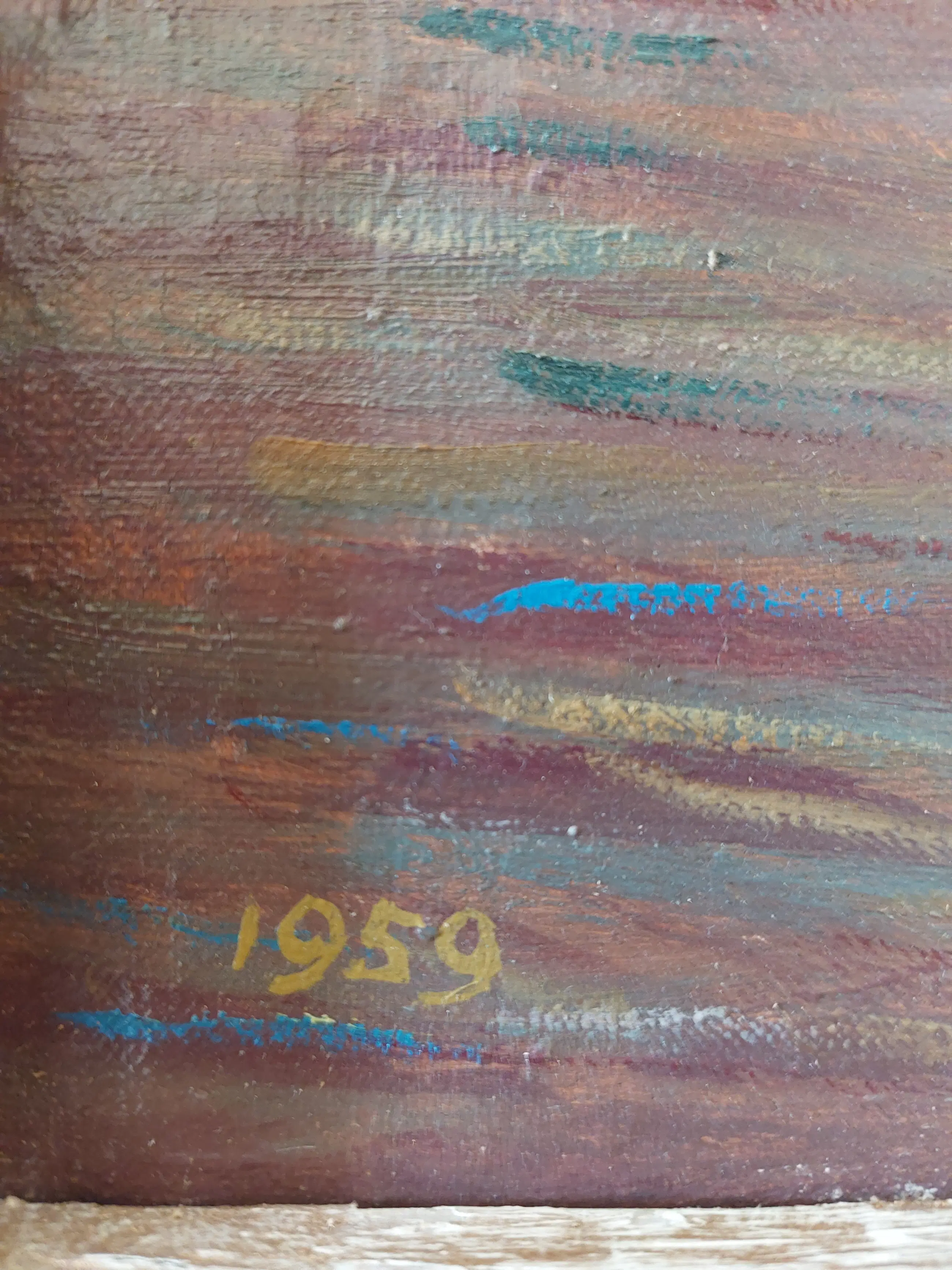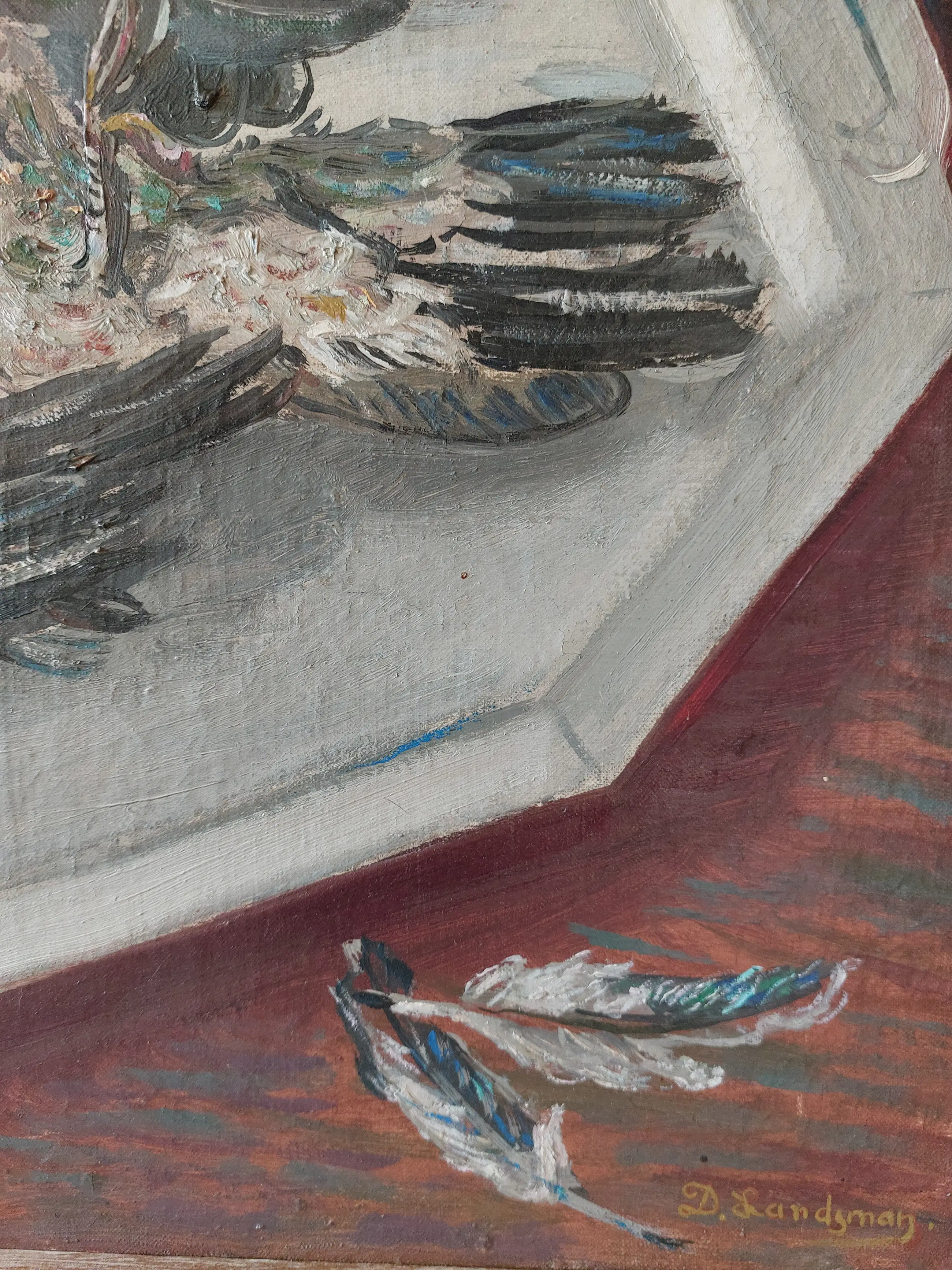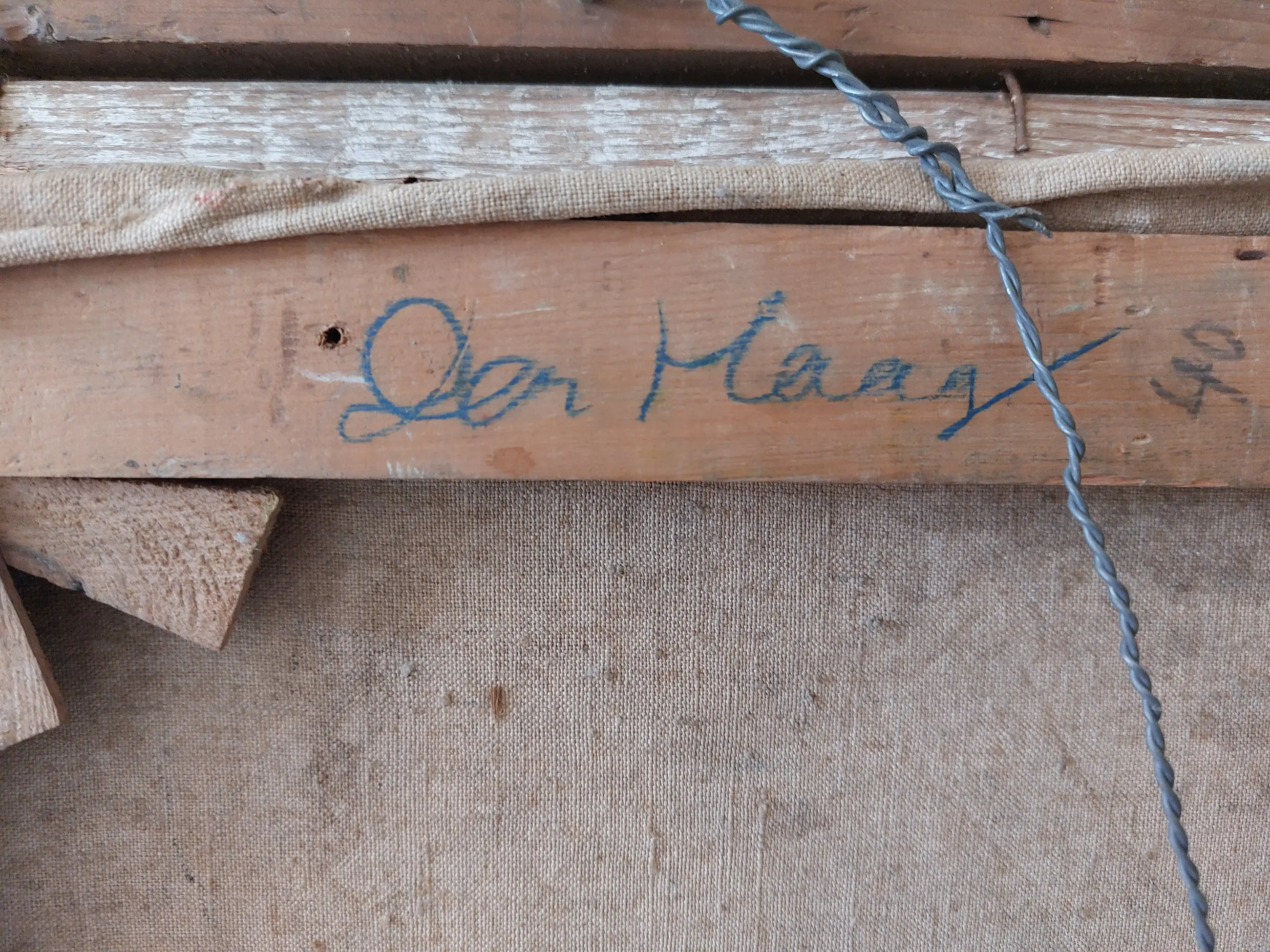 Vanaf 1972 woonde hij afwisselend in Brabant en Frankrijk. Dick Landsman beperkte zich tot het schilderen van landschap, stadsgezicht, interieur en stilleven in de techniek van olieverf en gouache. Naast schilderen was Dick Landsman componist en dichter. Ingelijst in eenvoudige houten lijst. Ziet er wat slordig uit.