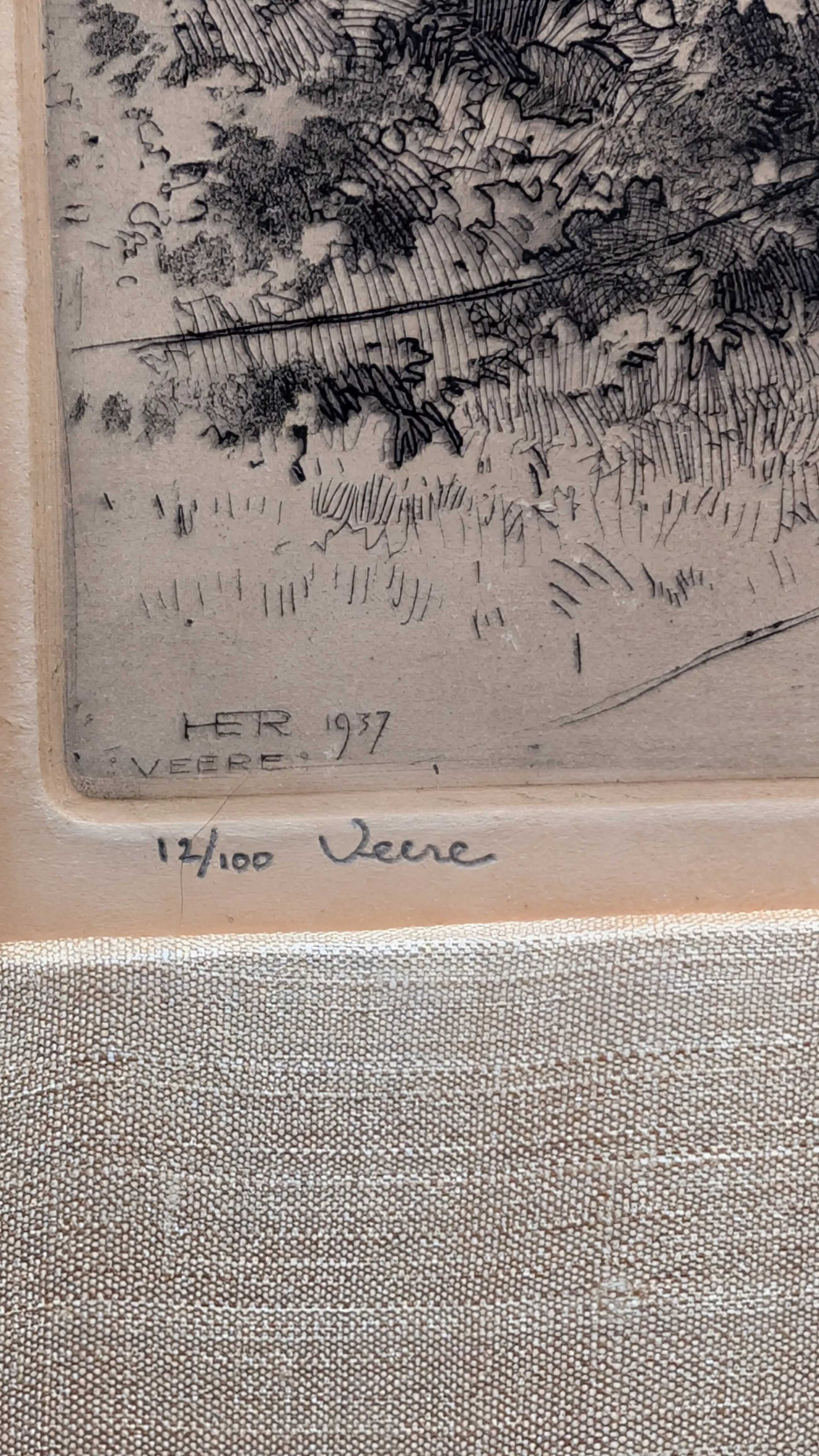 Mooie ets van het stadje Veerle. De lijst is helaas onlangs kapot gegaan.