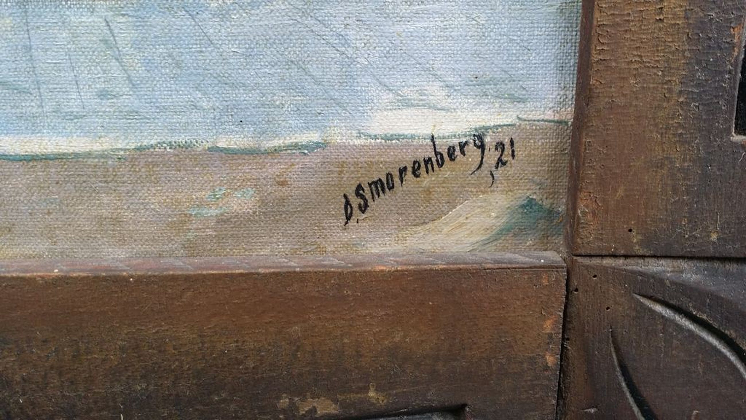 Wat dit schilderij volledig afmaakt is de zeer fraaie origineel handgestoken lijst van de hand van Dirk Smorenberg zelf.