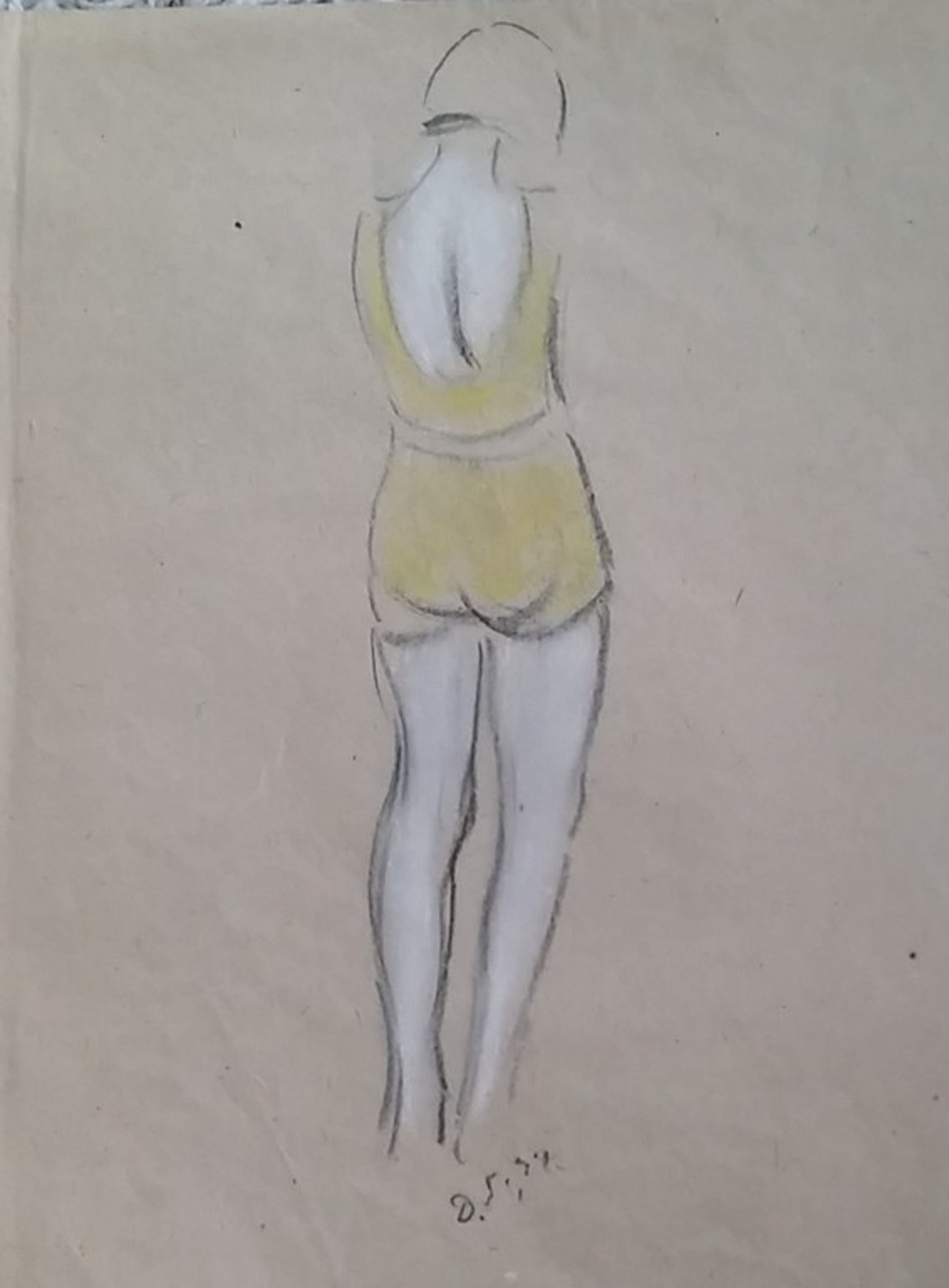 Pastel en houtskool op bruin papier