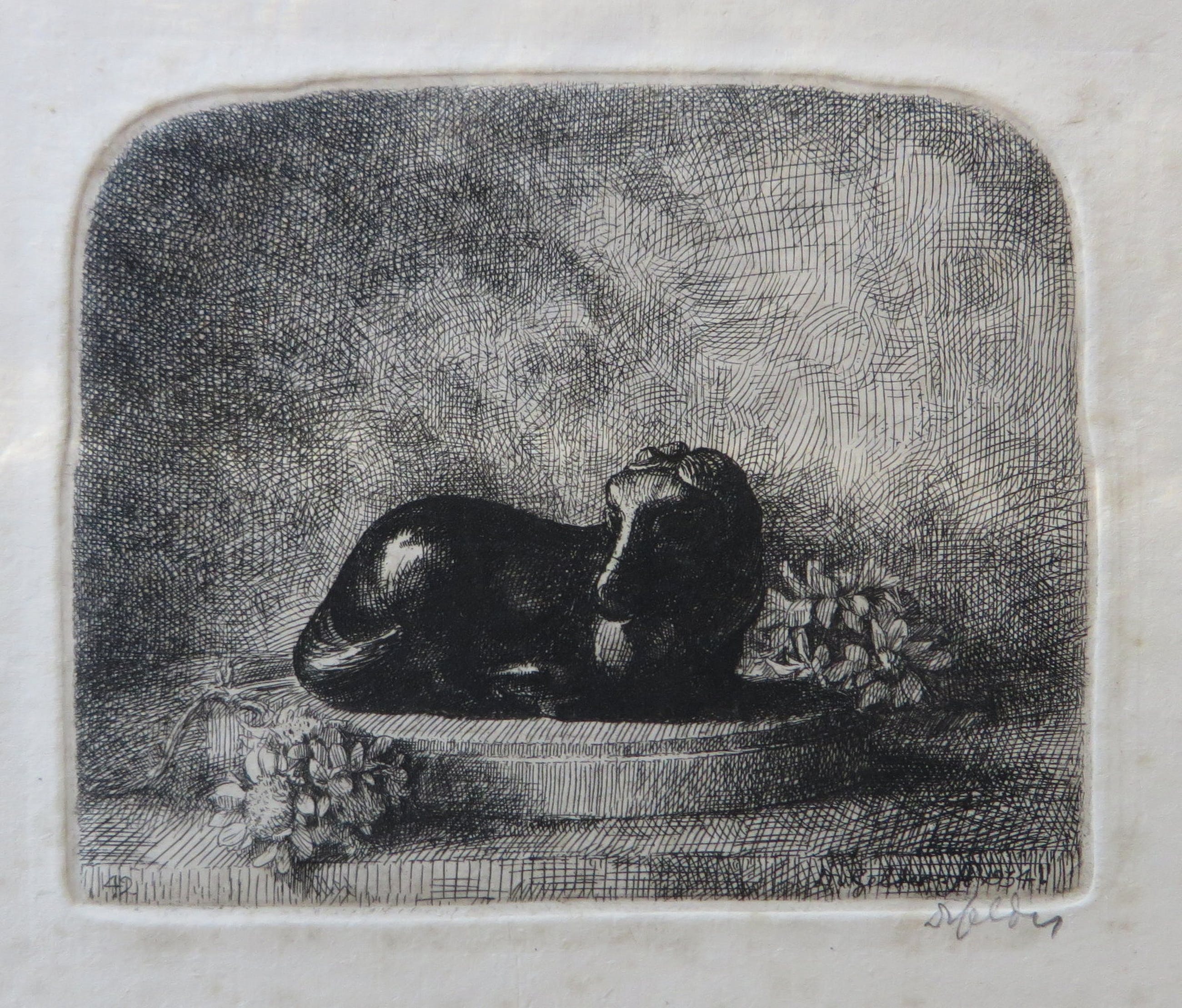 Het betreft hier twee werken van Dirk van Gelder.Het landschapje zit ook in een passe partout.Afmeting afbeelding: 13x8cm. Beide werken zijn gesigneerd/gemonogrammeerd o.a. met potlood.Vermoedelijk gemaakt in zijn Veerse periode.