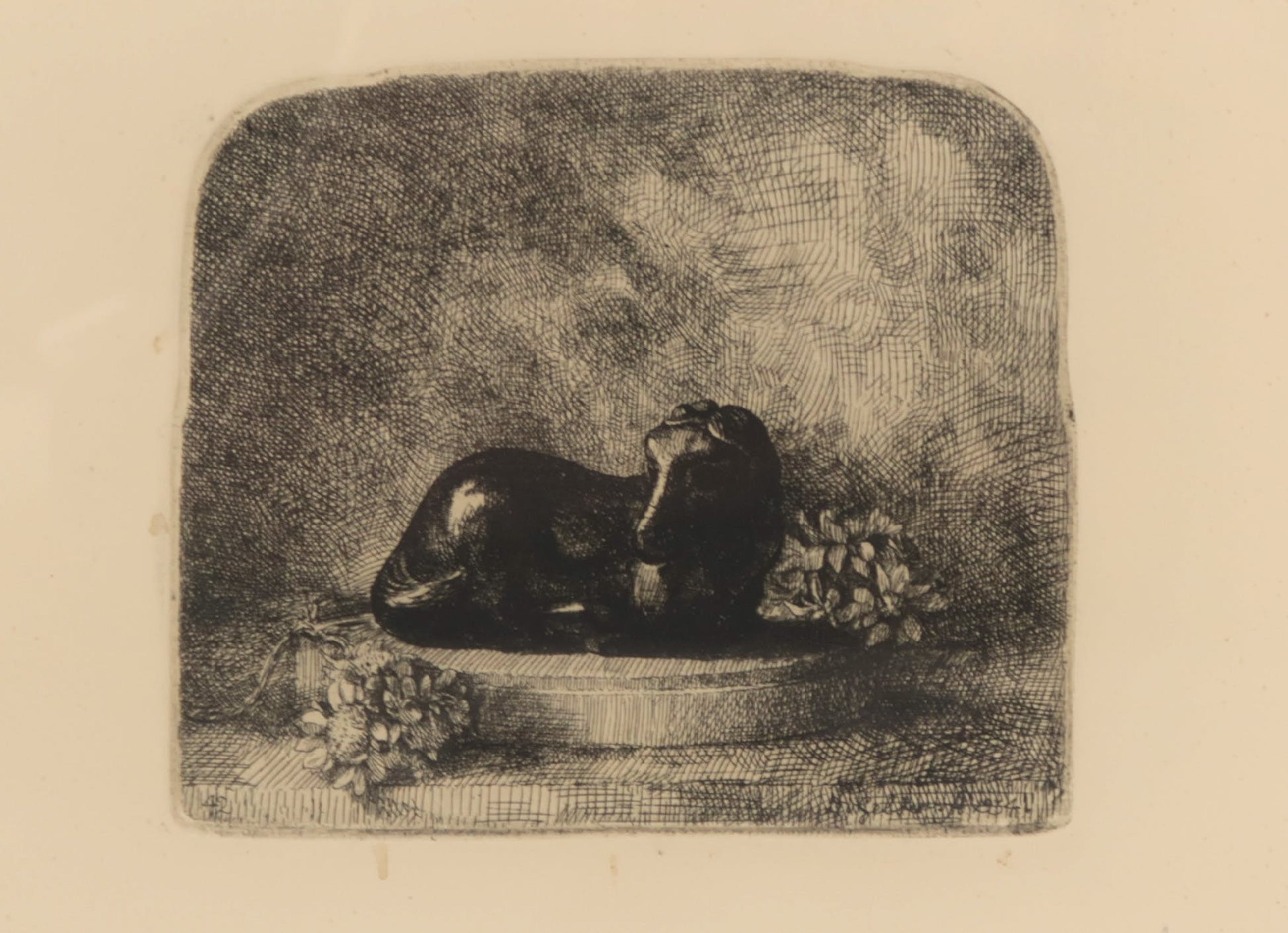 Originele ets van Dirk van Gelder gesigneerd rechtonder in beeld met D. van Gelder 1934. De signatuur is niet in spiegelbeeld, dus waarschijnlijk niet in de plaat gesigneerd, maar handgesigneerd met zwarte inkt.