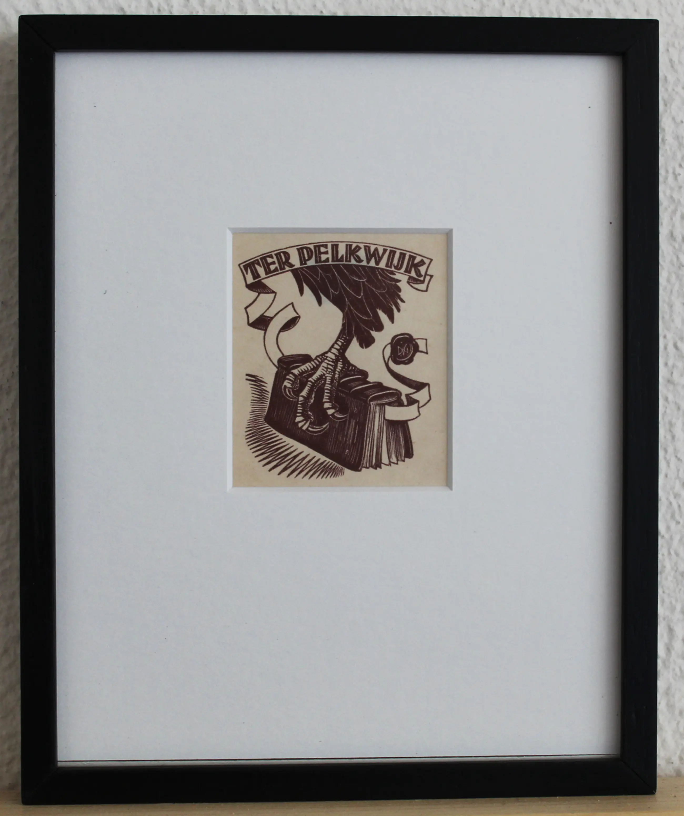 1: Ex Libris Ter Pelkwijk: Beeldmaat: 6 x 5 cm. Bladmaat: 8 x 6,5 cm. Lijstmaat: 20 x 16 cm.