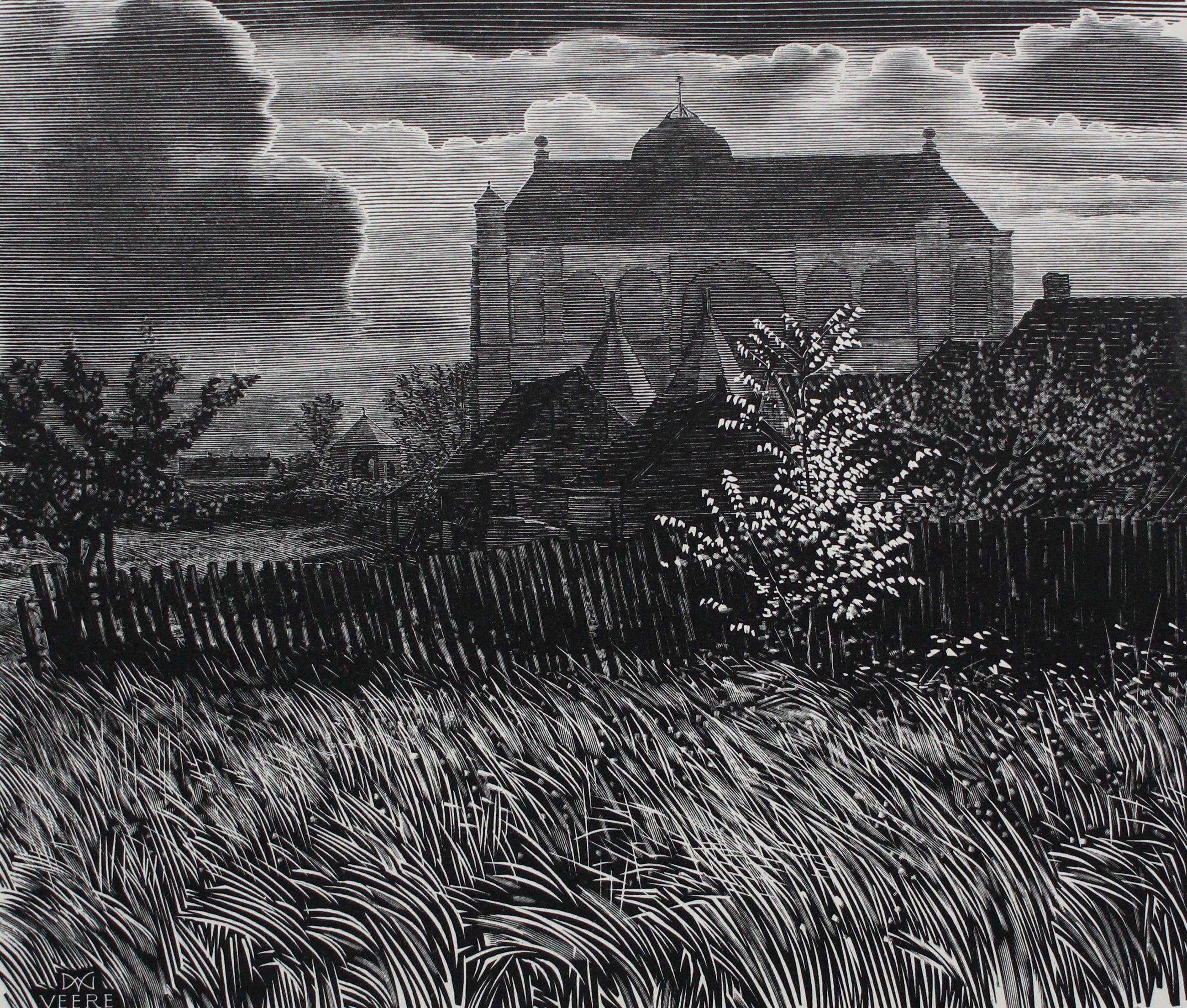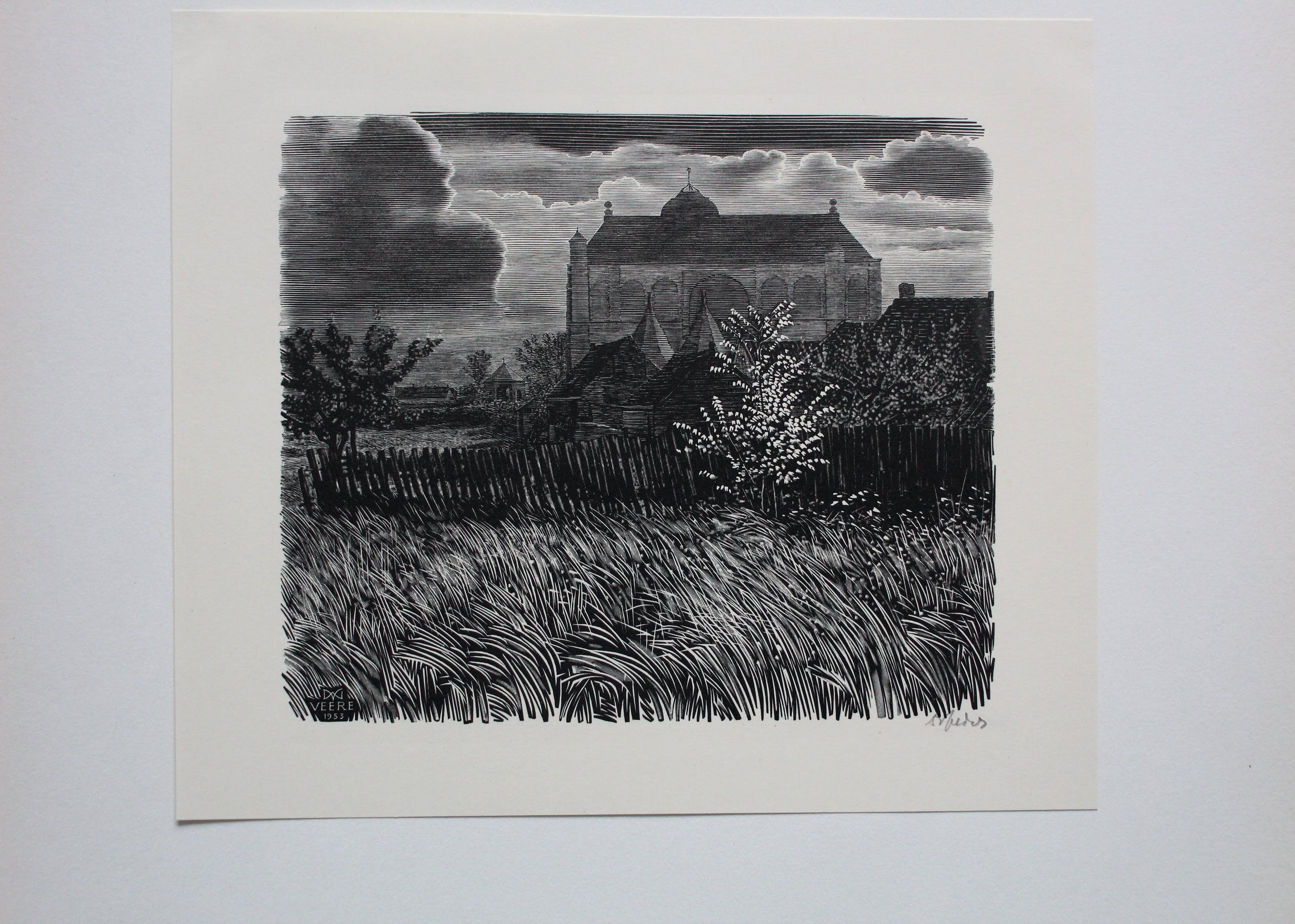 Losbladig onder passepartout, beeldmaat 13x14,5, passepartoutmaat 38,5x28. Gesigneerd in potlood r.o. 'DvGelder', monogram, annotatie en datering in de plaat l.o.. Jaar: 1953. e authenticiteit van dit werk wordt volledig gegarandeerd. Een certificaat van echtheid kan, op verzoek, worden gemaild.