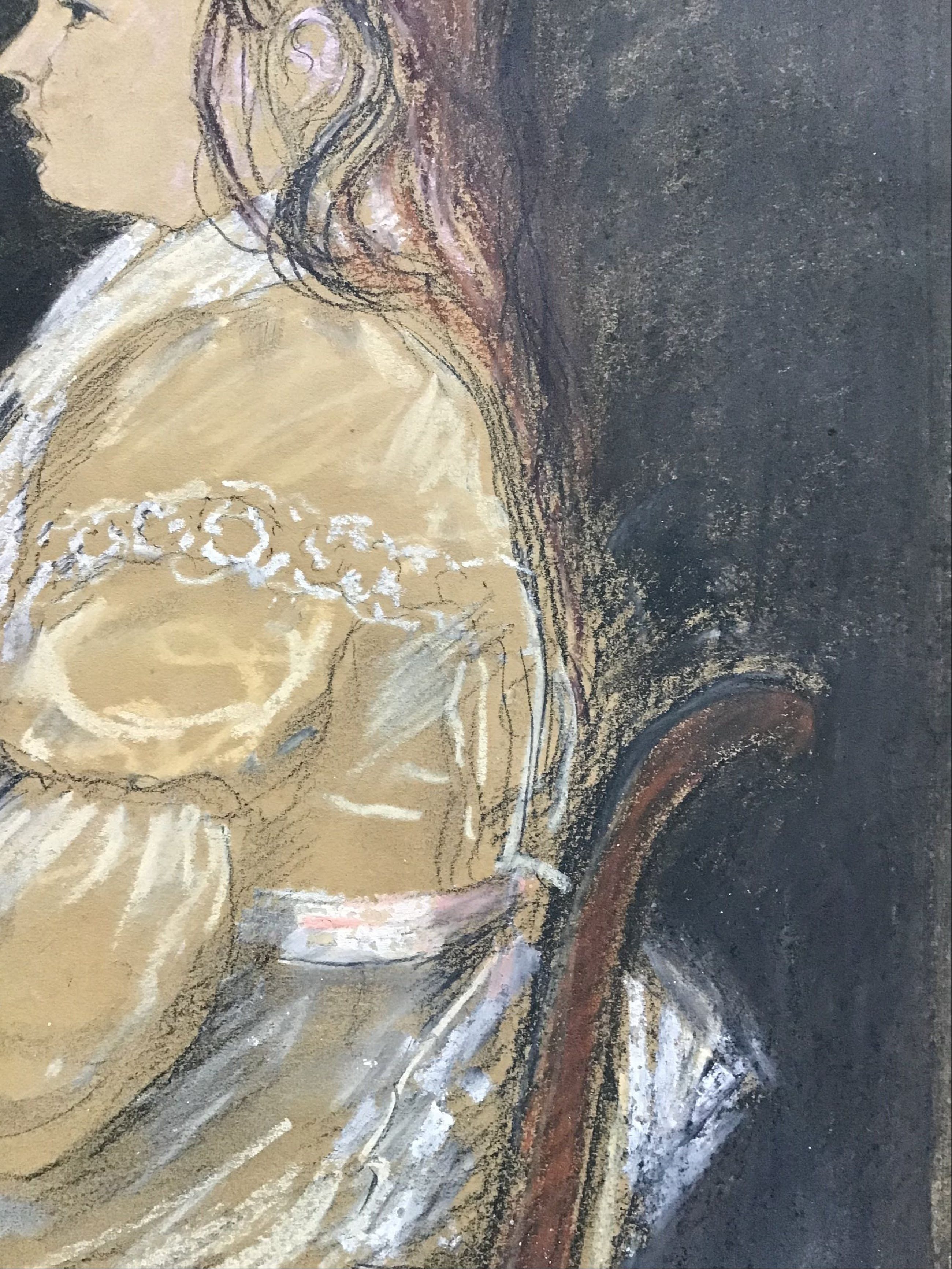 Een jong meisje van gegoede ouders en profil. Dirk Johannes van Haaren was een Nederlands kunstschilder. Dirk van Haaren woonde en werkte in Amsterdam evenals in Sloten. Hij was een autodidact en vervaardigde aquarellen en olieverfschilderijen. Geboren: 21 april 1878, Amsterdam Overleden: 30 juni 1953, Amsterdam