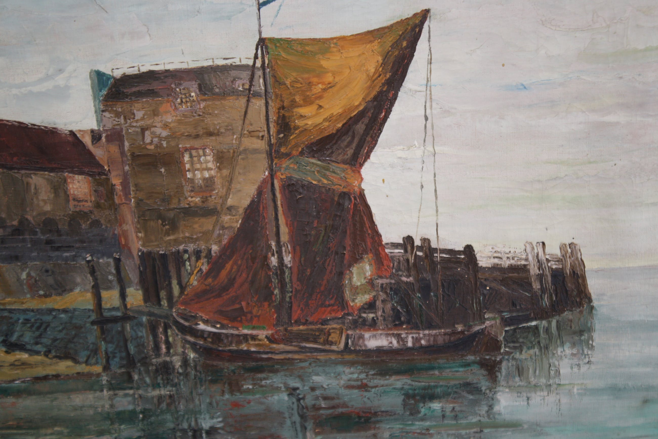 dirk verel Boten aan de kadeolieverf op linnen in de maar 50 x 65 cmgesigneerd en gedateerd 1936goede staatmet lijstverzenden aangetekend