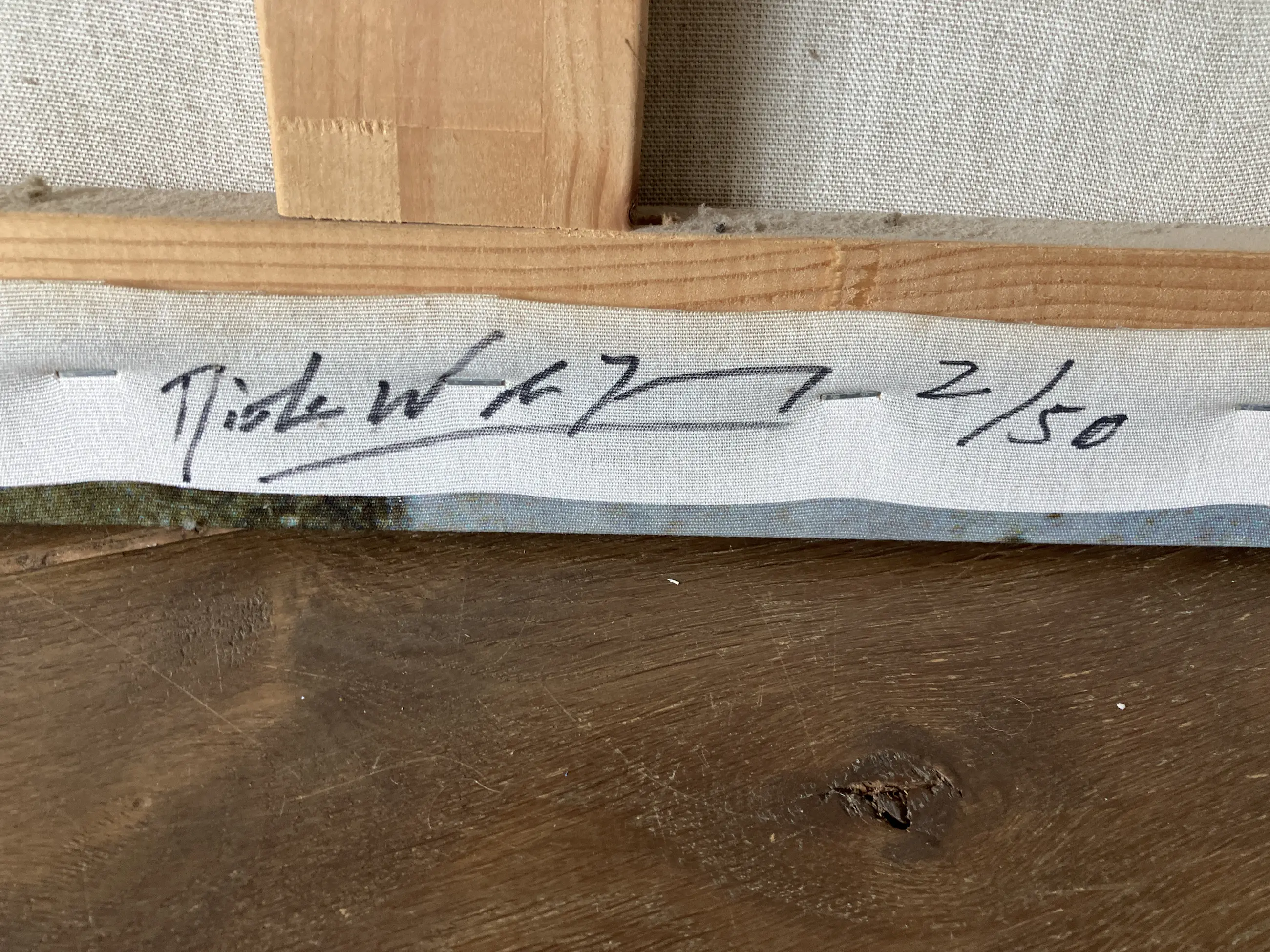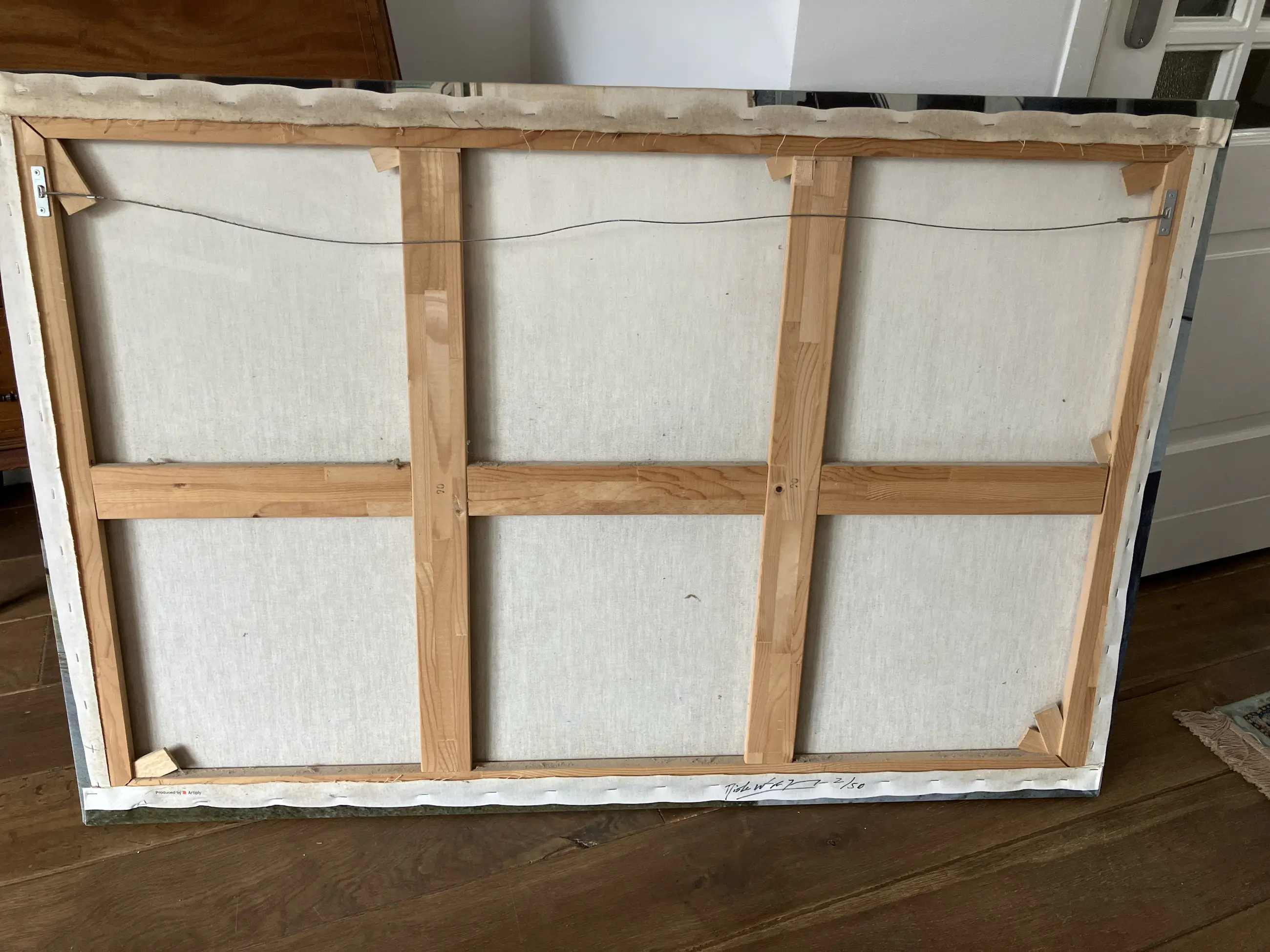 Werk heeft altijd aan de muur gehangen. Is onbeschadigd. Allen wat stoffig.