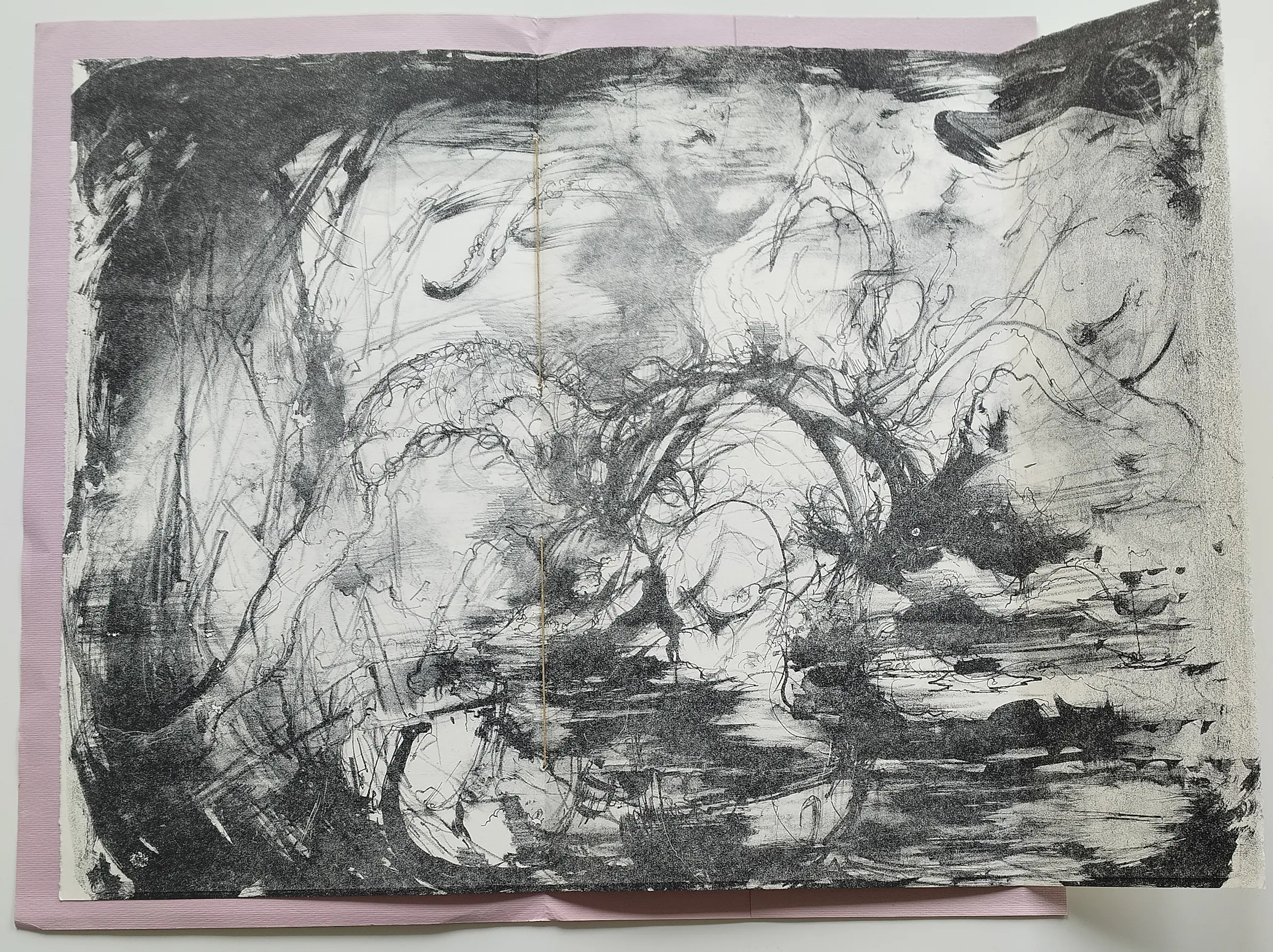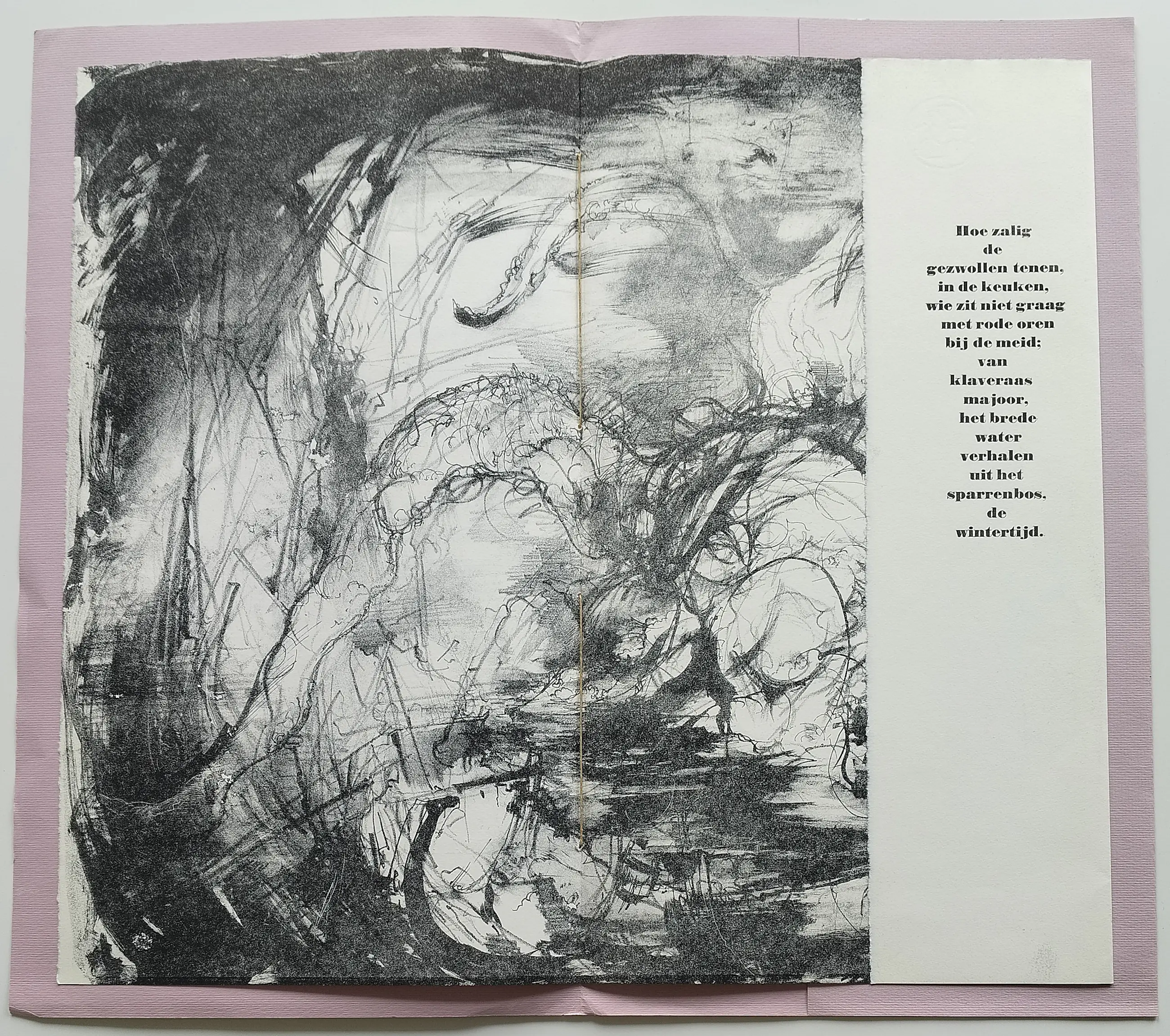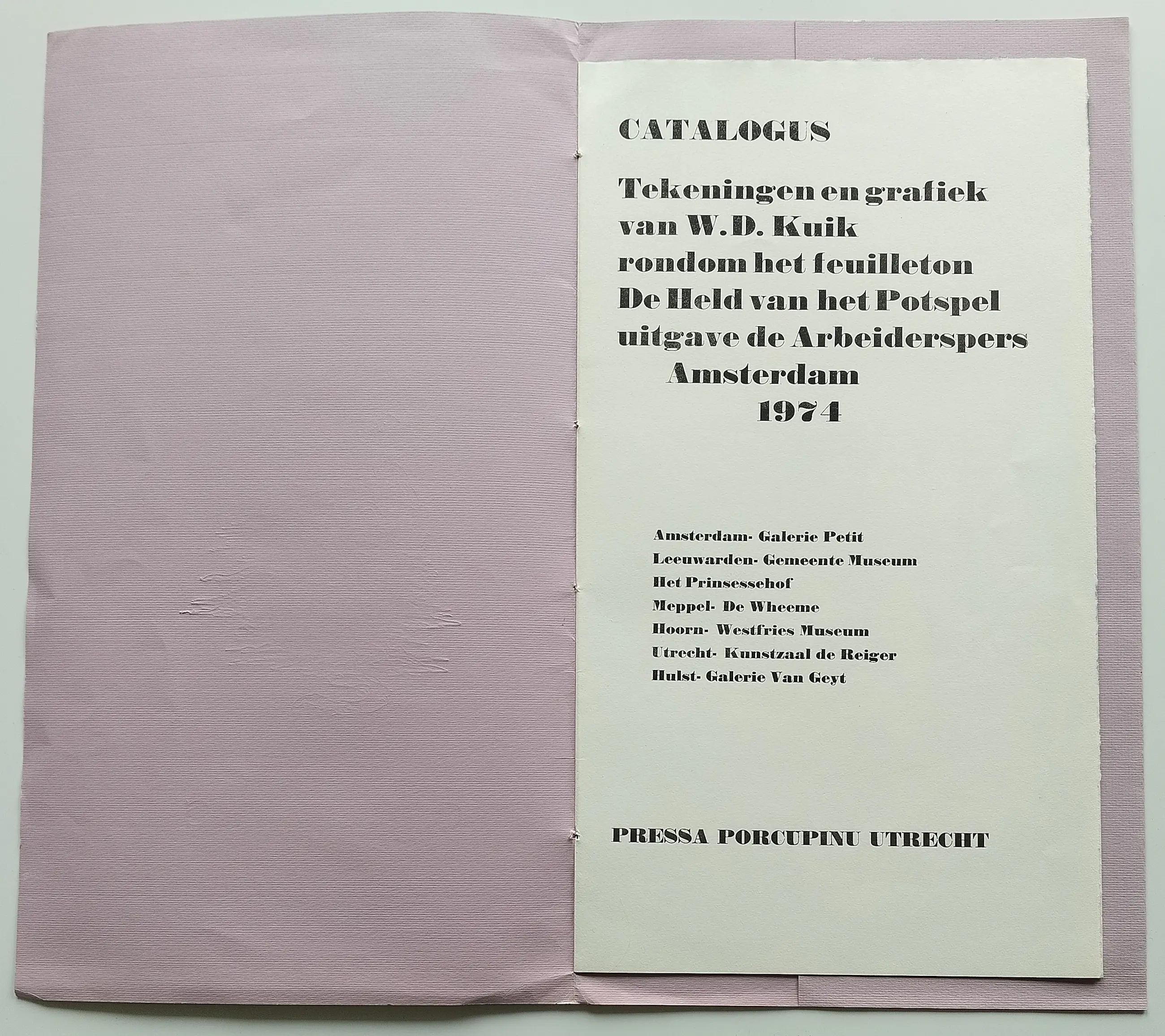 Catalogus uit 1974 met ongesigneerde, ingebonden en gevouwen litho van de kunstenaar Dirkje Kuik (1929-2008), gedrukt in een oplage van 75 stuks. Dit is nummer 69/75 Afmeting catalogus 27 x 48 cm (hxb) Afmeting uitgevouwen litho 44 x 60 cm (hxb) De litho is in prima staat de kaft heeft een paar vlekjes, kreukjes en vouwtjes. De 2 losse litho’s ontbreken.