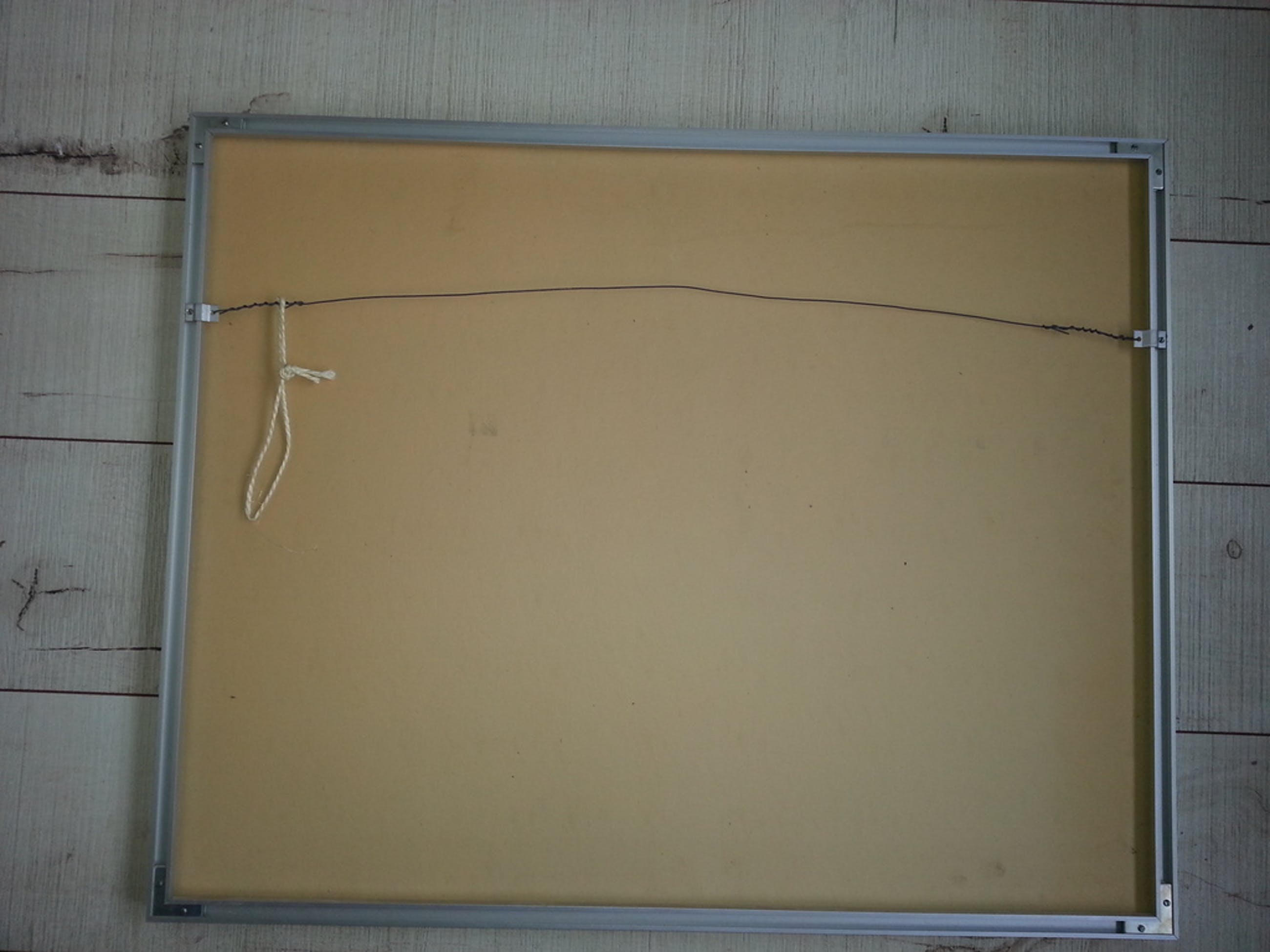 Ontspiegeld glas, lijst en ophangwerk, kan zo aan de muur