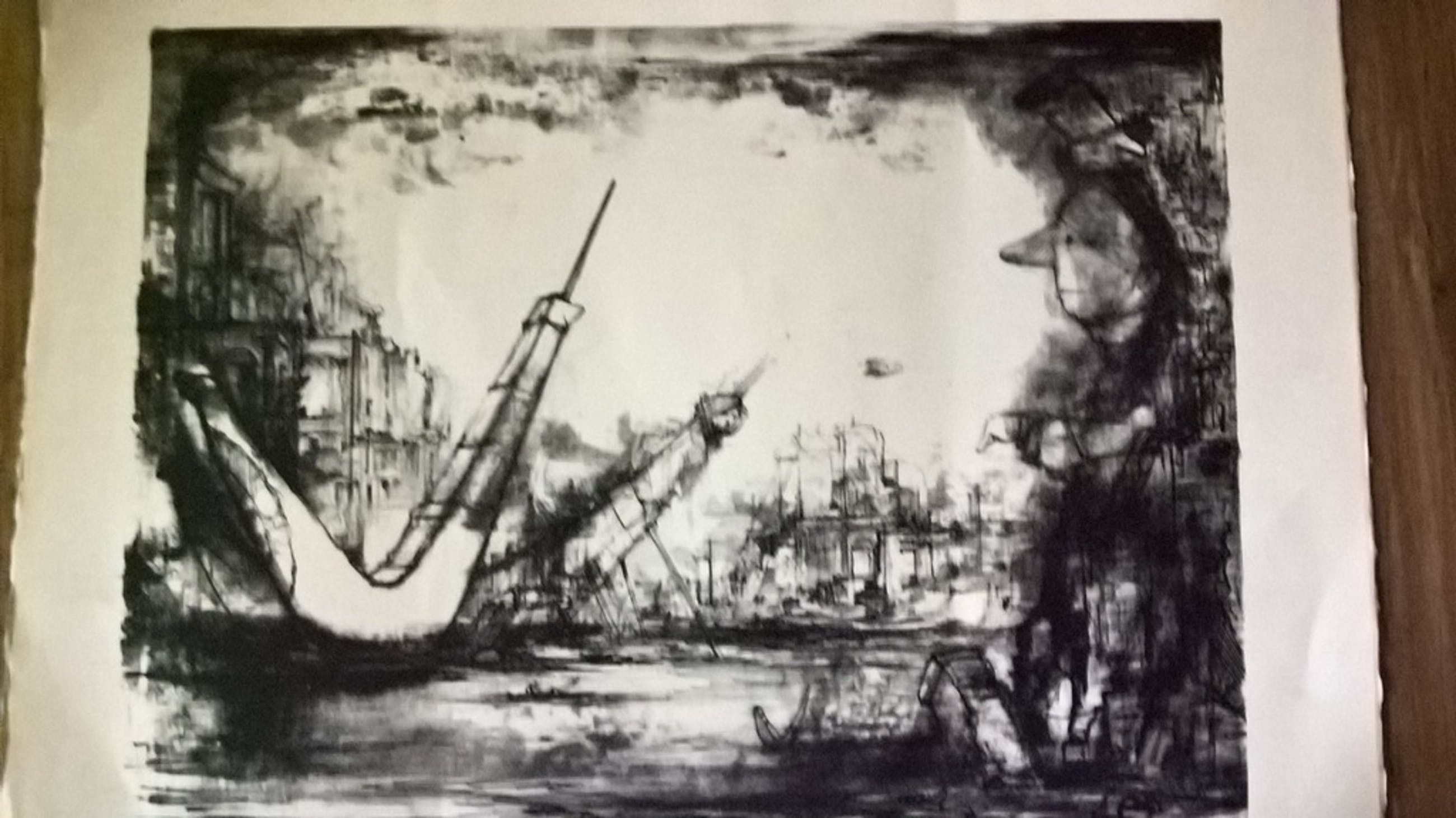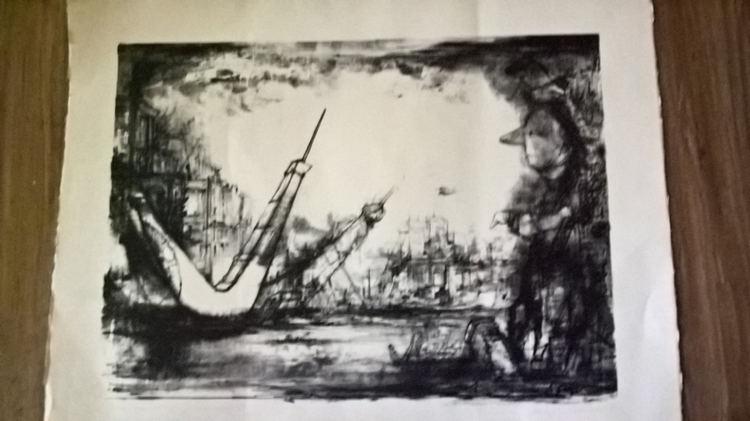Litho door Dirkje Kuik, op papier, nummer 32 van 75, afmeting beeld 46 bij 34. Afmeting papier, 56 bij 45. Handgesigneerd Dirkje Kuik, Utrecht. Niet ingelijst.