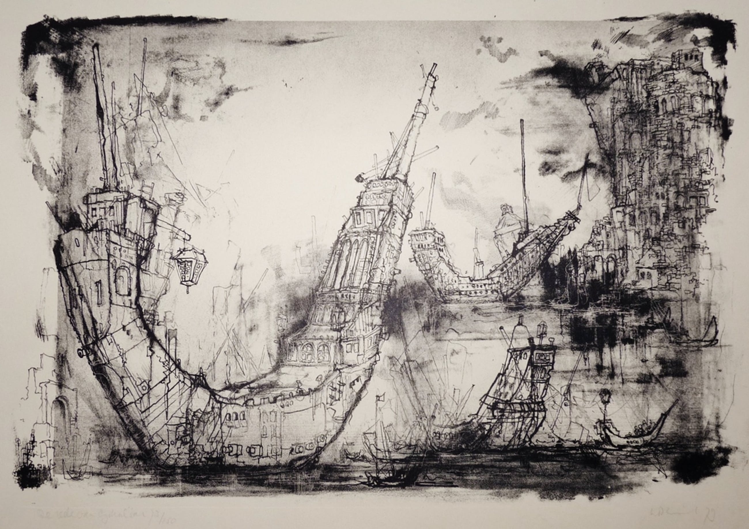 * Mooie originele prent (litho) van de bekende Utrechtse kunstenaar Dirkje Kuik. Titel: De rede van gibraltar.
