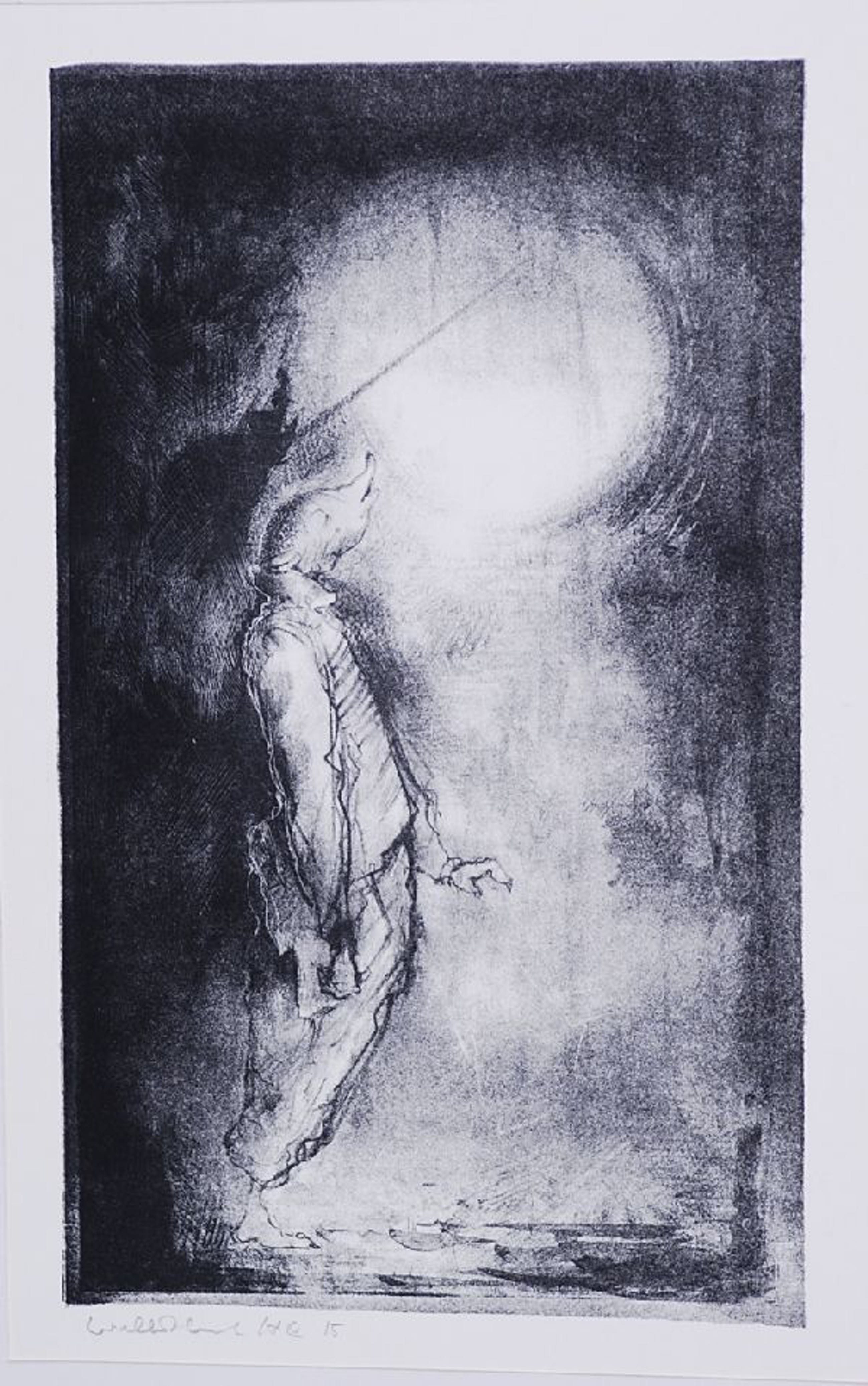 Hele mooie litho van Dirkje Kuik, hier nog gesigneerd met William Kuik. Met een voorstelling van 1 van zijn fantasiefiguren met muizenkop. In passepartout