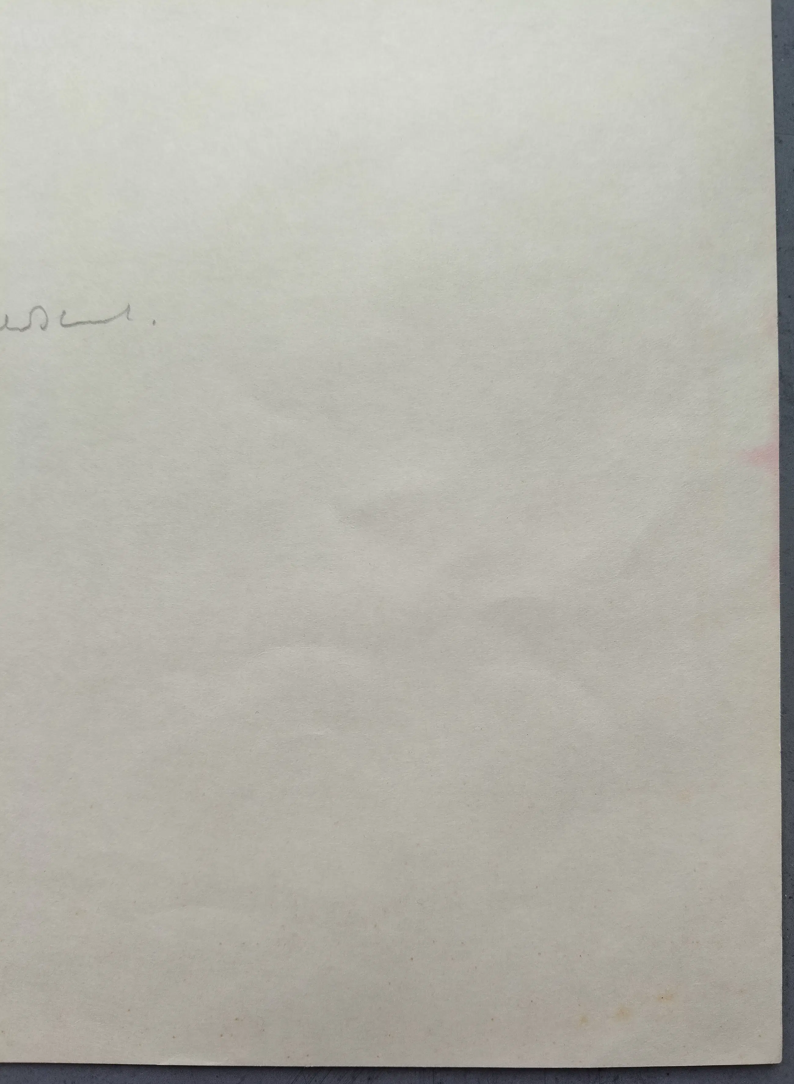Rechts aan de rand van het papier zit een roze vlekje en met name langs de onderste rand van het papier wat kleine oxidatie vlekjes Links zit een klein vouwtje in de hoek van het papier. In het papier zitten ook wat lichte kreukjes. Verder is het werk in goede staat. en is nooit ingelijst geweest.