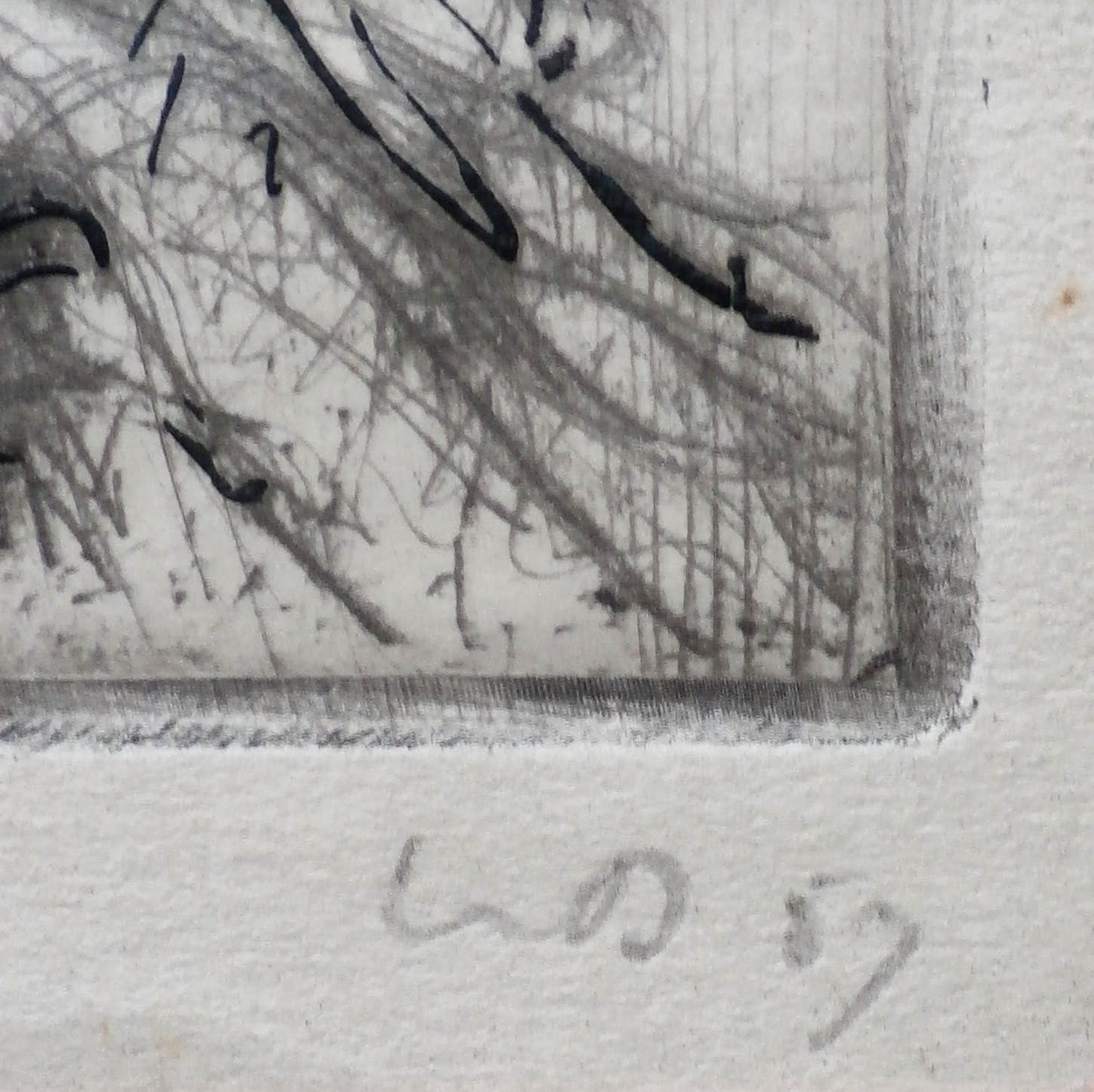 Conditie: Het werk is in goede staat. Er zit een vouw in het passepartout.