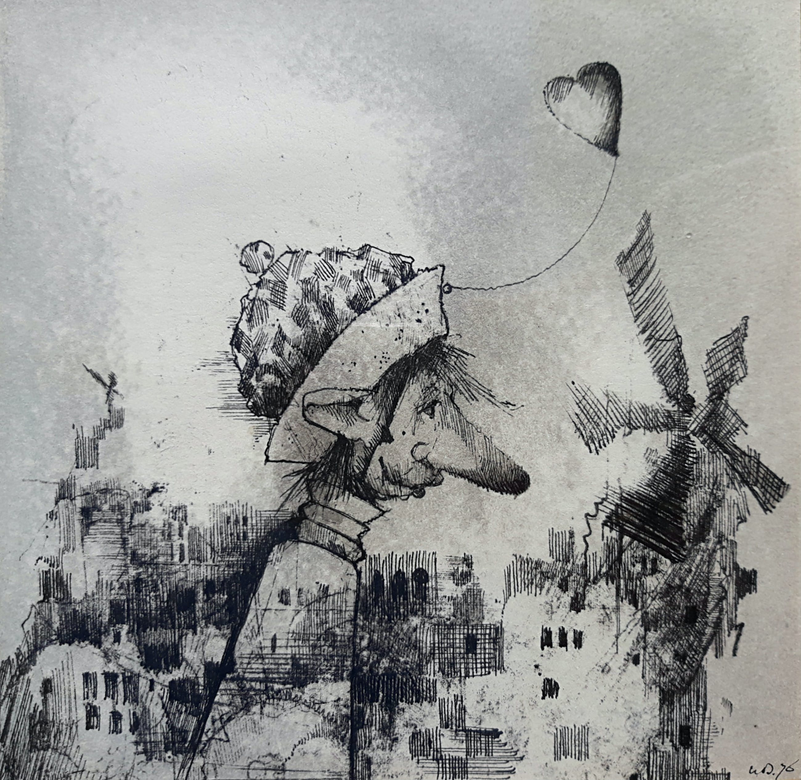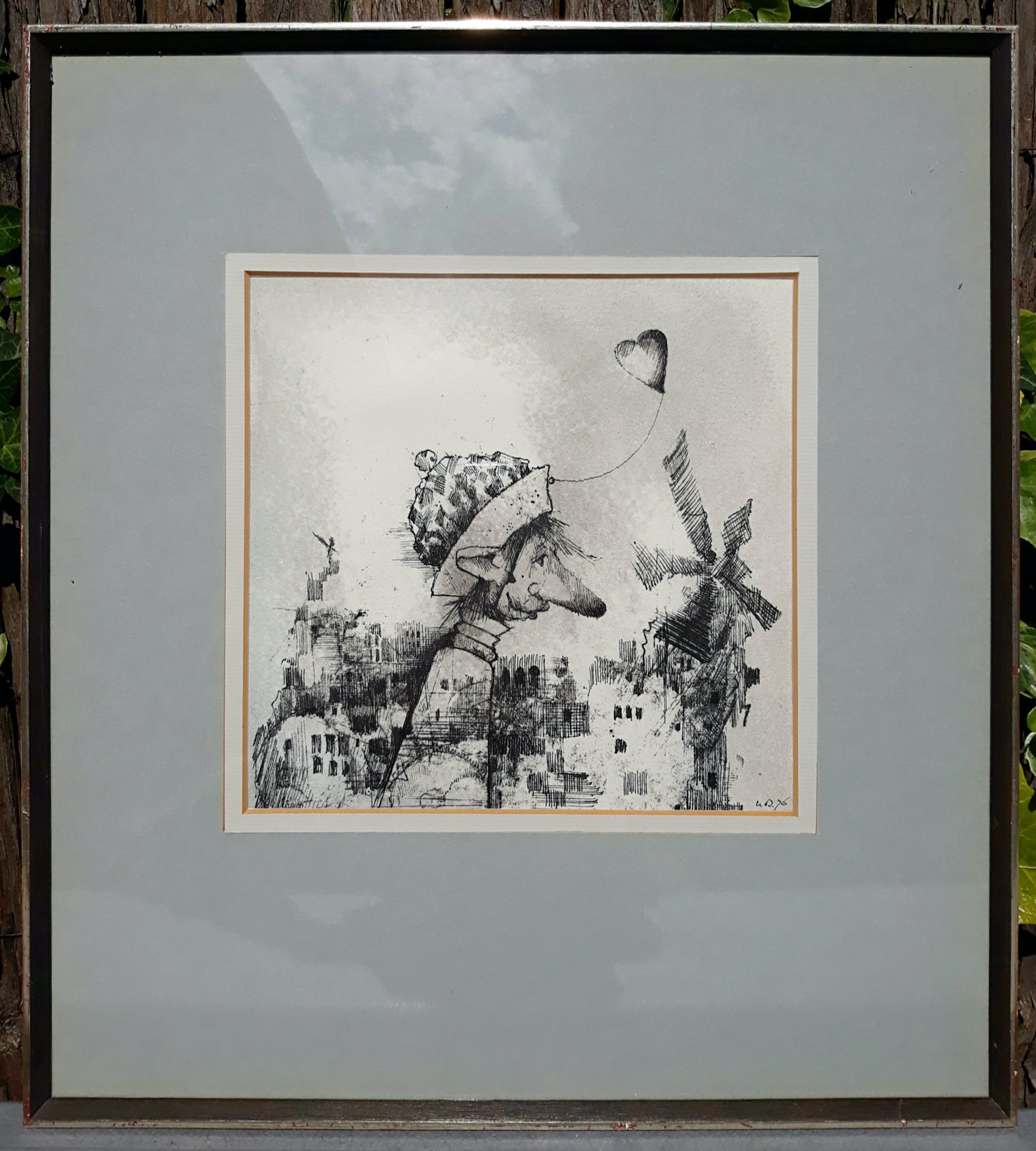 Karakteristiek werk van Dirkje Kuik. Tekening met Oost-Indische inkt, gemonogrammeerd en gedateerd (‘76) rechts beneden, ingelijst achter glas en met passe-partout. Achterop uitgebreide aantekeningen. Afkomstig van galerie JAS in Utrecht, in zeer goede conditie.