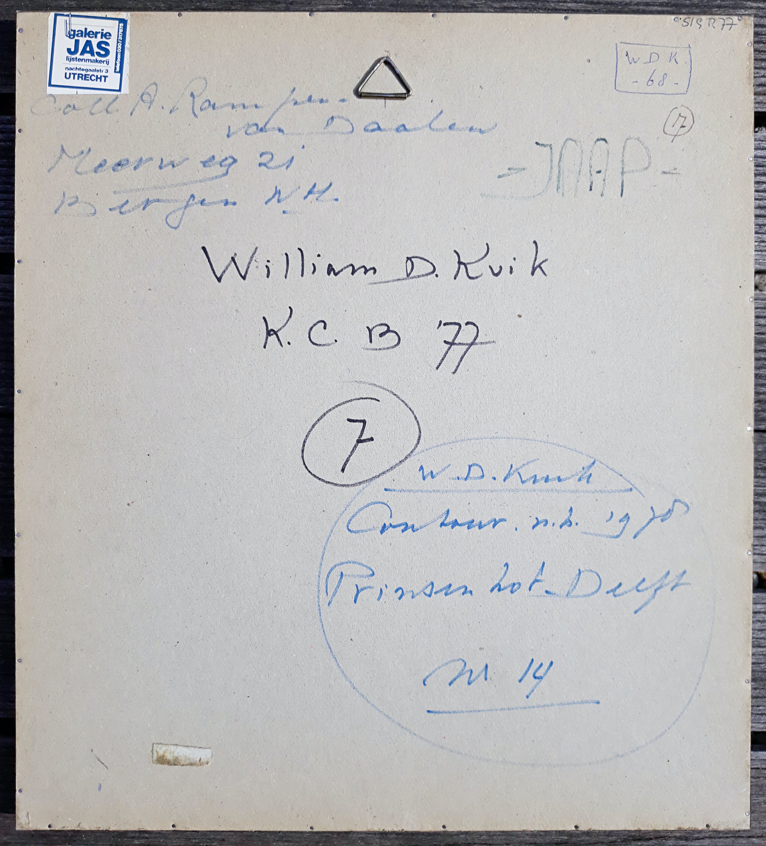 Werk moet bij aankoop het liefst worden opgehaald in Diemen (vlakbij het kantoor van Kunstveiling in Amsterdam Z-O), maar het kan eventueel ook goed verpakt en aangetekend verstuurd worden op kosten van de koper.