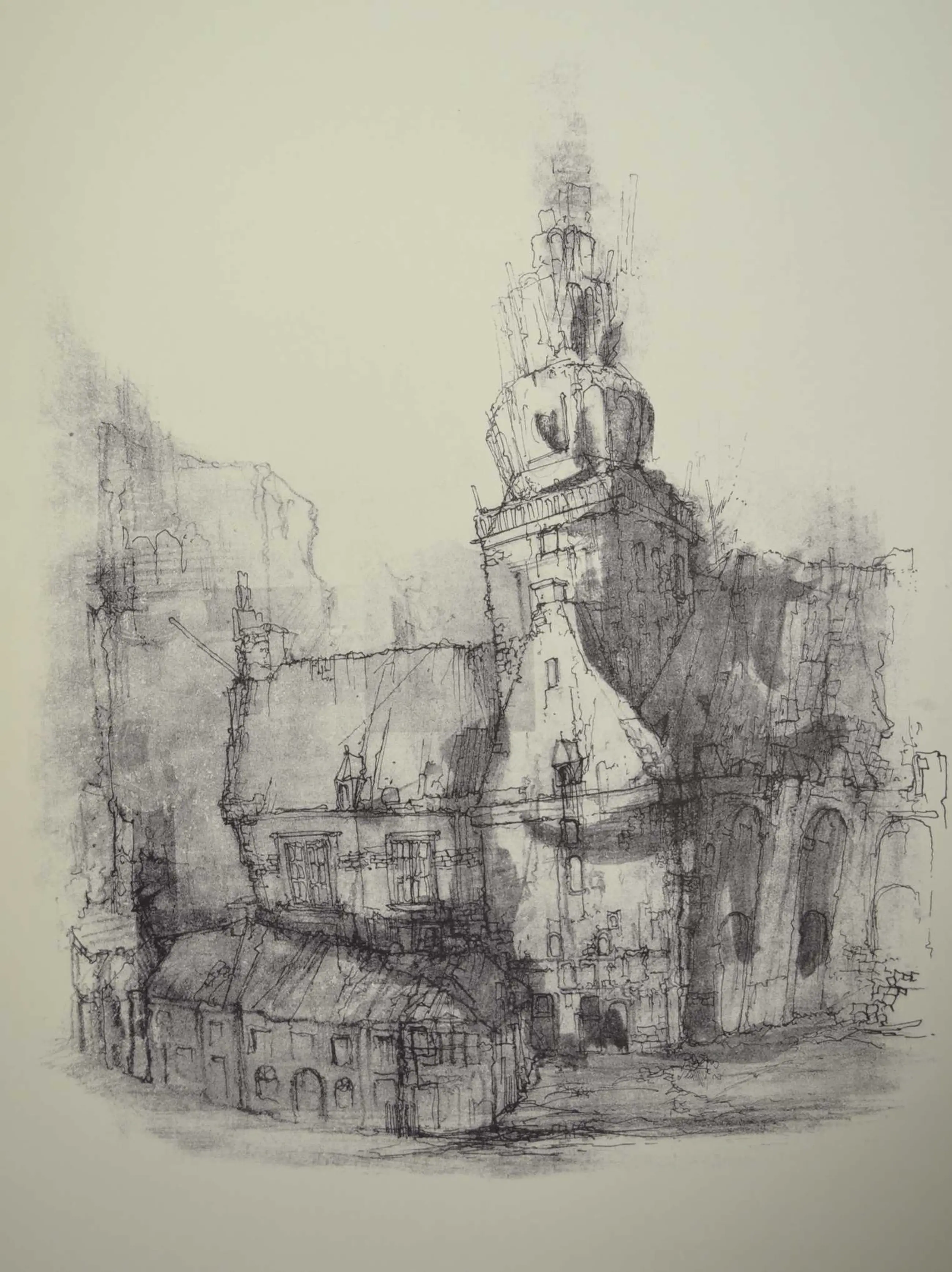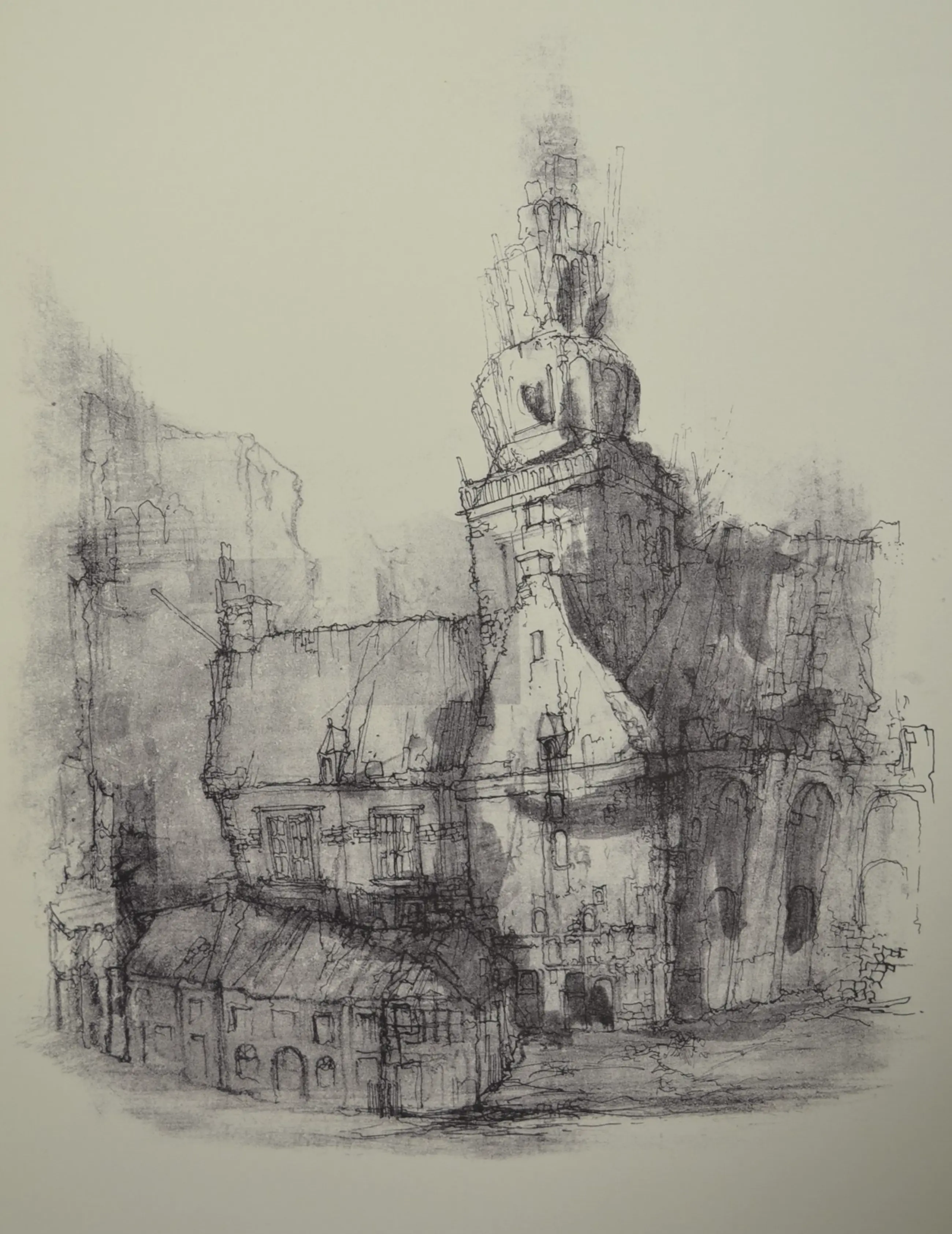 Litho van kerkplein in Amersfoort door Kuik. Ongeveer uit 1975