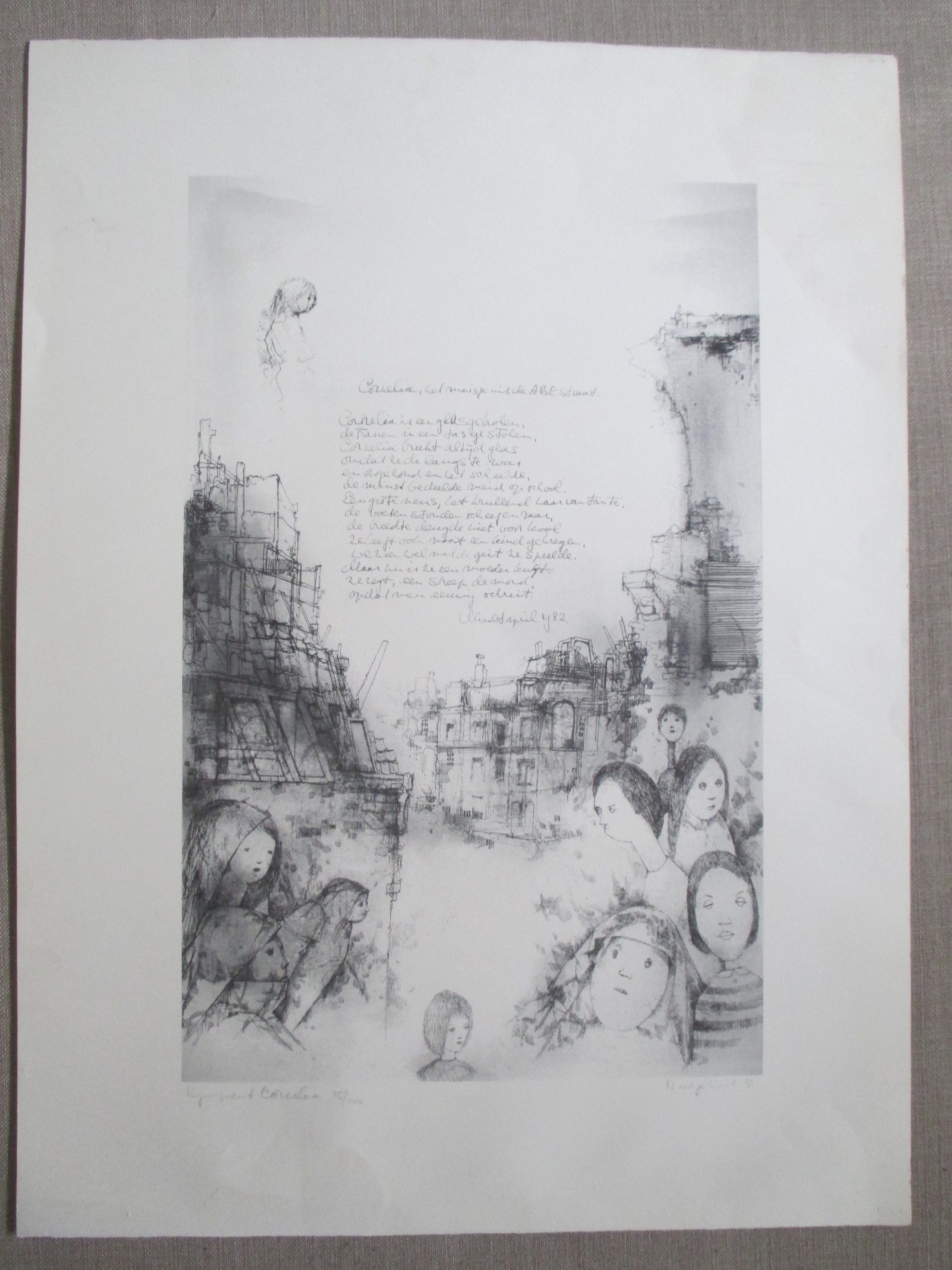 Litho van Dirkje Kuik, gesigneerd, gedateerd, getiteld en genummerd in potlood. verzending tussen twee platen, 9 euro, aangetekend 10,65