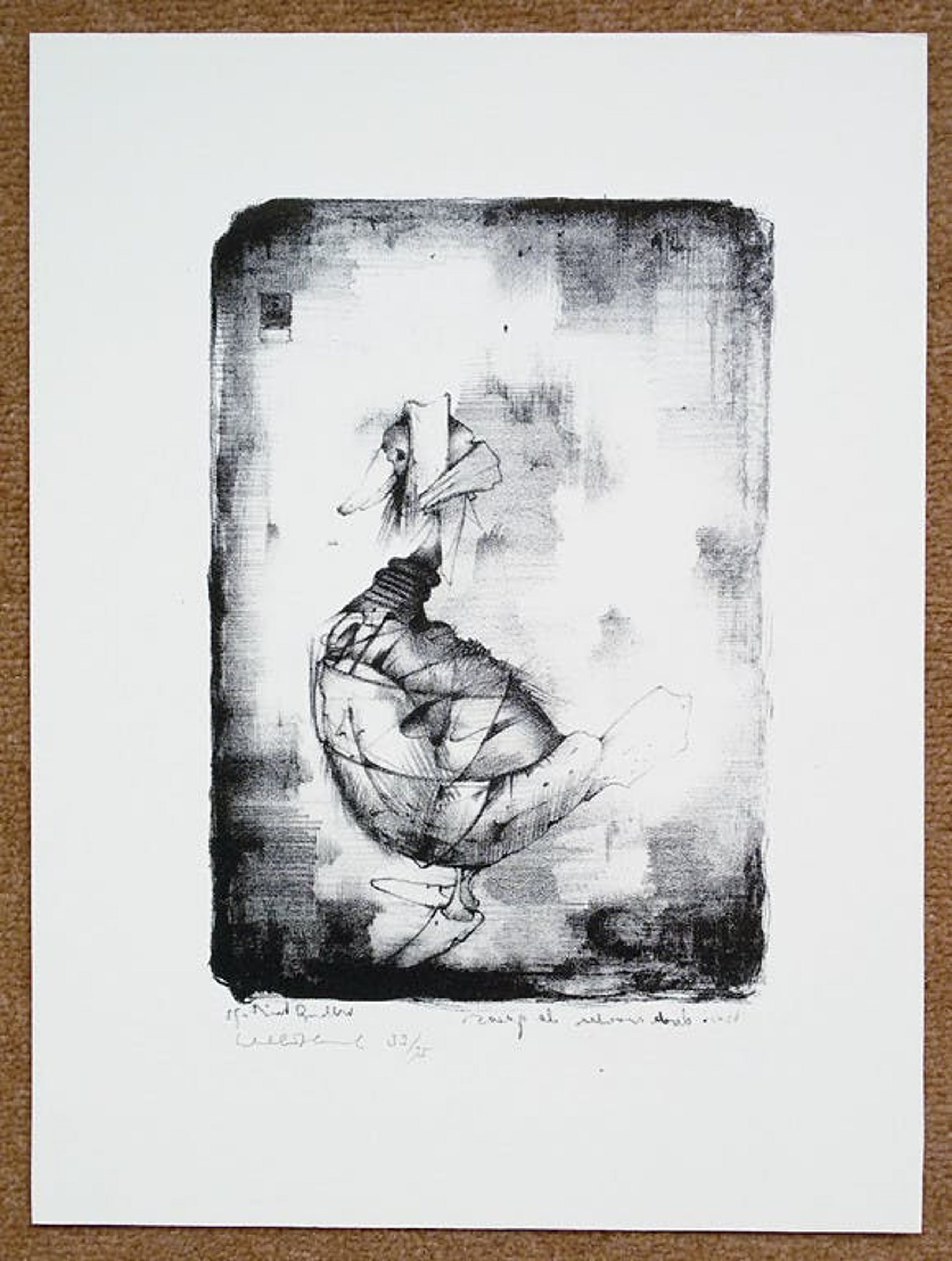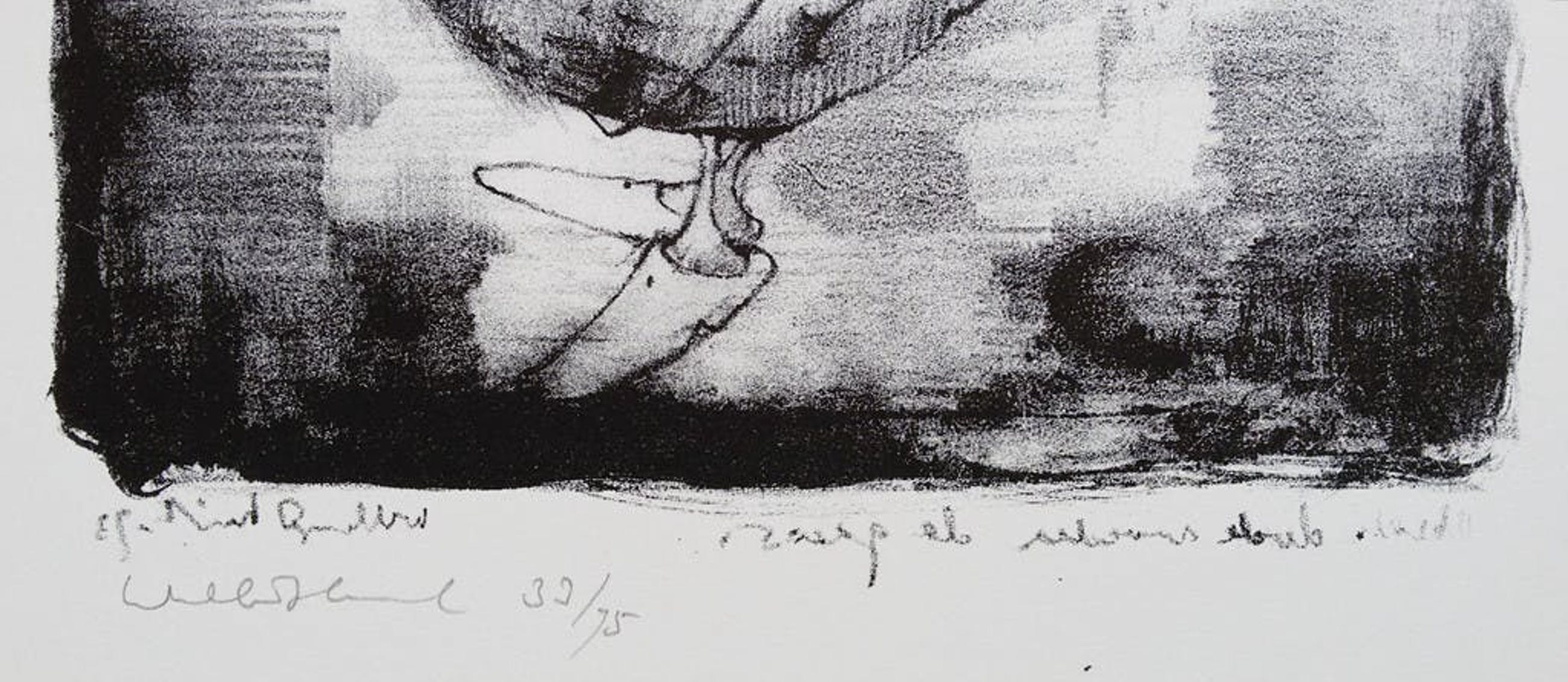 Karakteristiek werk van (toen nog) William Kuik uit 1973. Litho op papier, met potlood gesigneerd en genummerd (33/75), in de steen in spiegelbeeld gedateerd, getiteld en nogmaals gesigneerd. In zeer goede conditie.