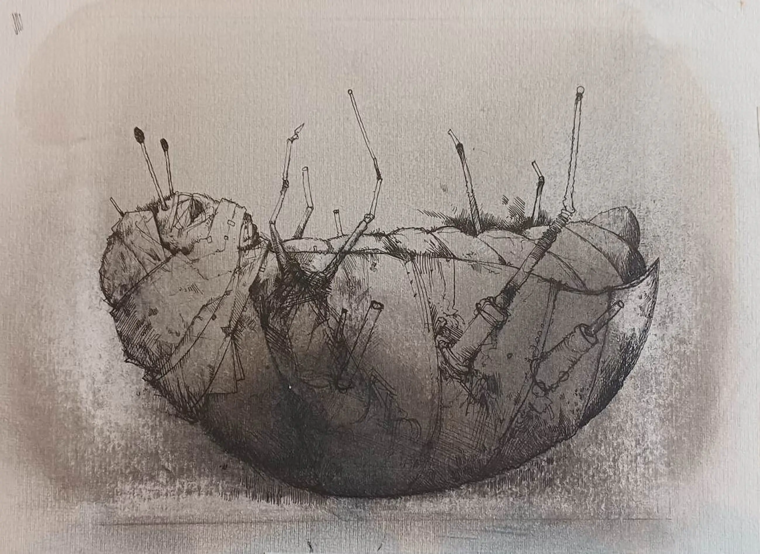 Dirkje Kuik - Pen/inkttekening: "Aram en de bende ..."