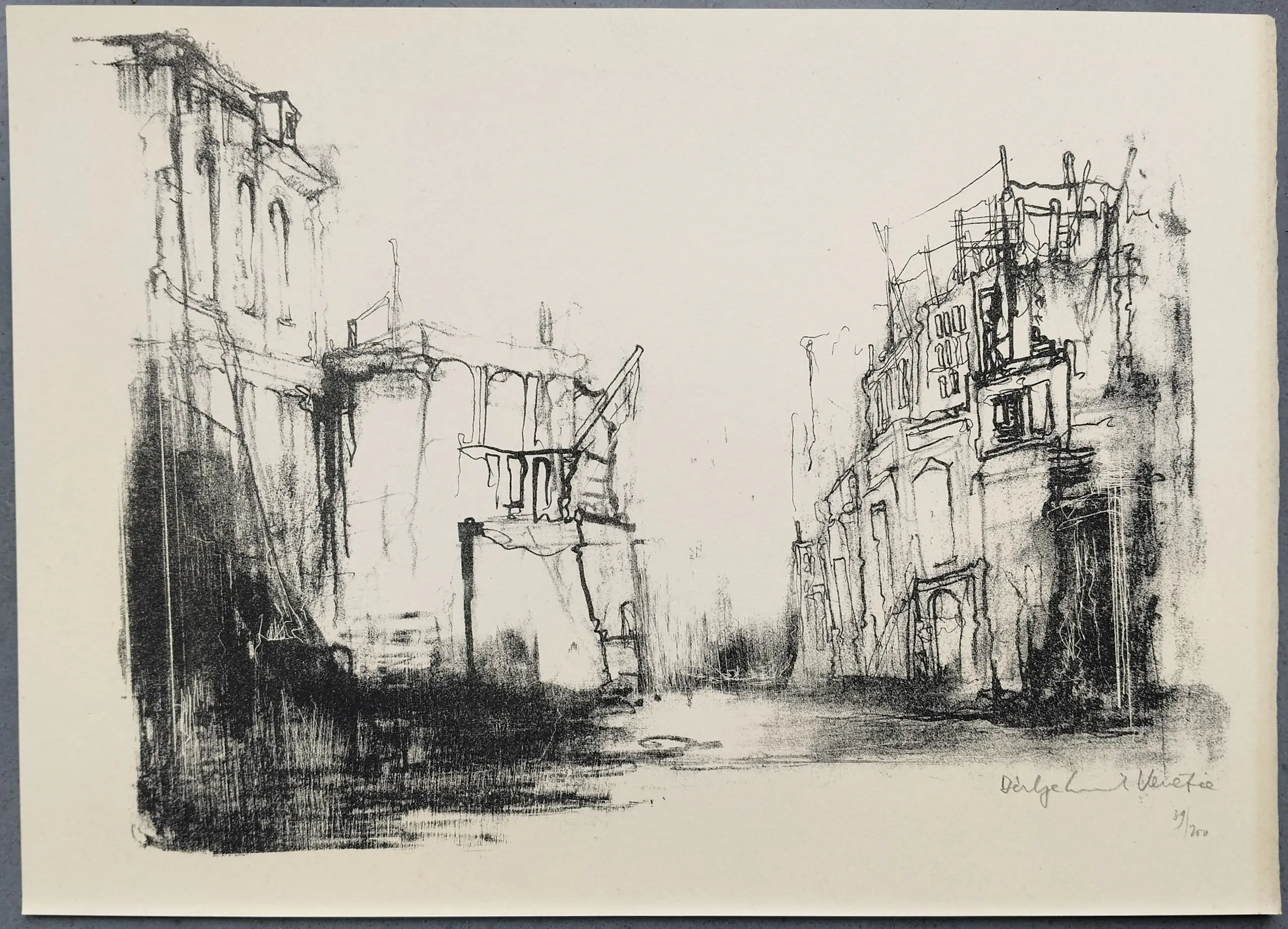 Bij de litho Venetië is langs de rechte rand een verkleuring van het papier te zien. Bij de litho Veduta is langs de linker rand een lichte verkleuring van het papier te zien en met name aan de onderzijde wat lichte vlekjes.