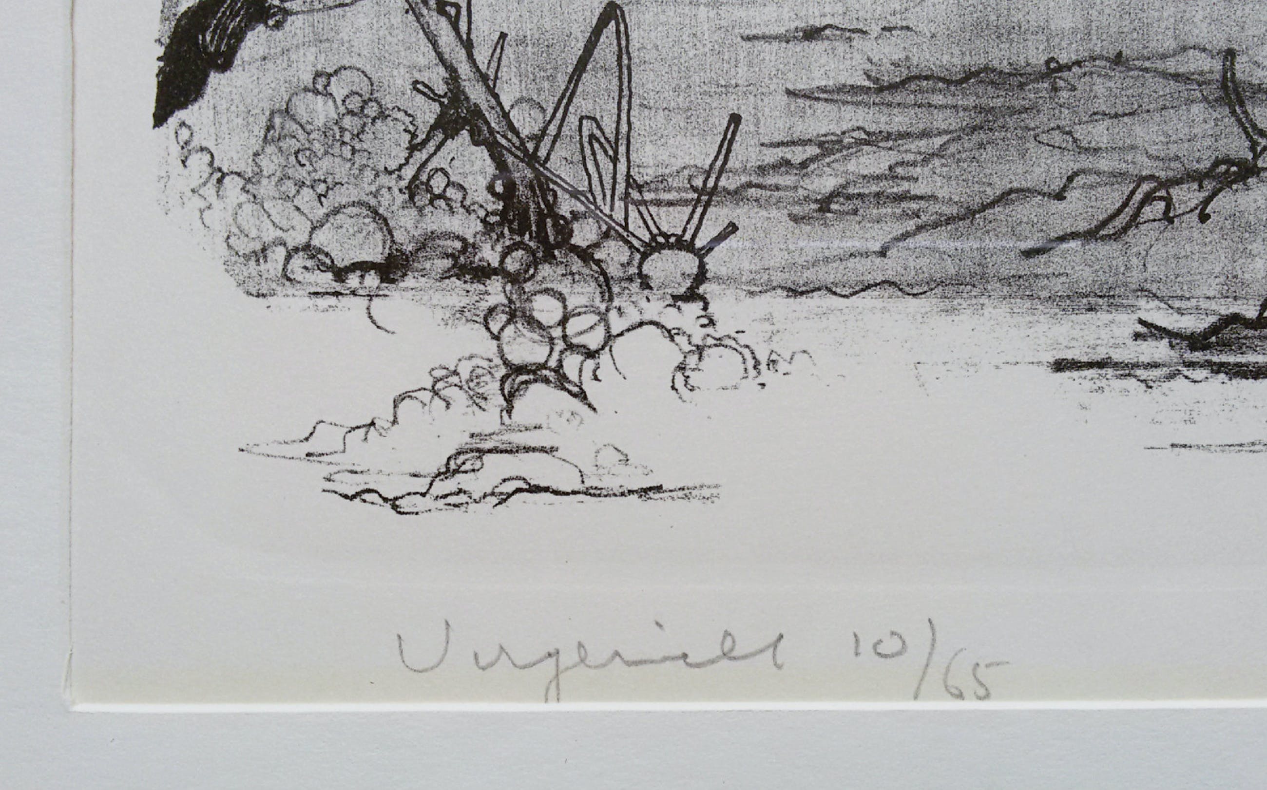 Karakteristiek werk van William (Dirkje) Kuik. Litho op papier, met potlood gesigneerd, getiteld en genummerd (10/65). In eenvoudige lijst, achter glas en met zuurvrij passe-partout. Alles in zeer goede conditie.