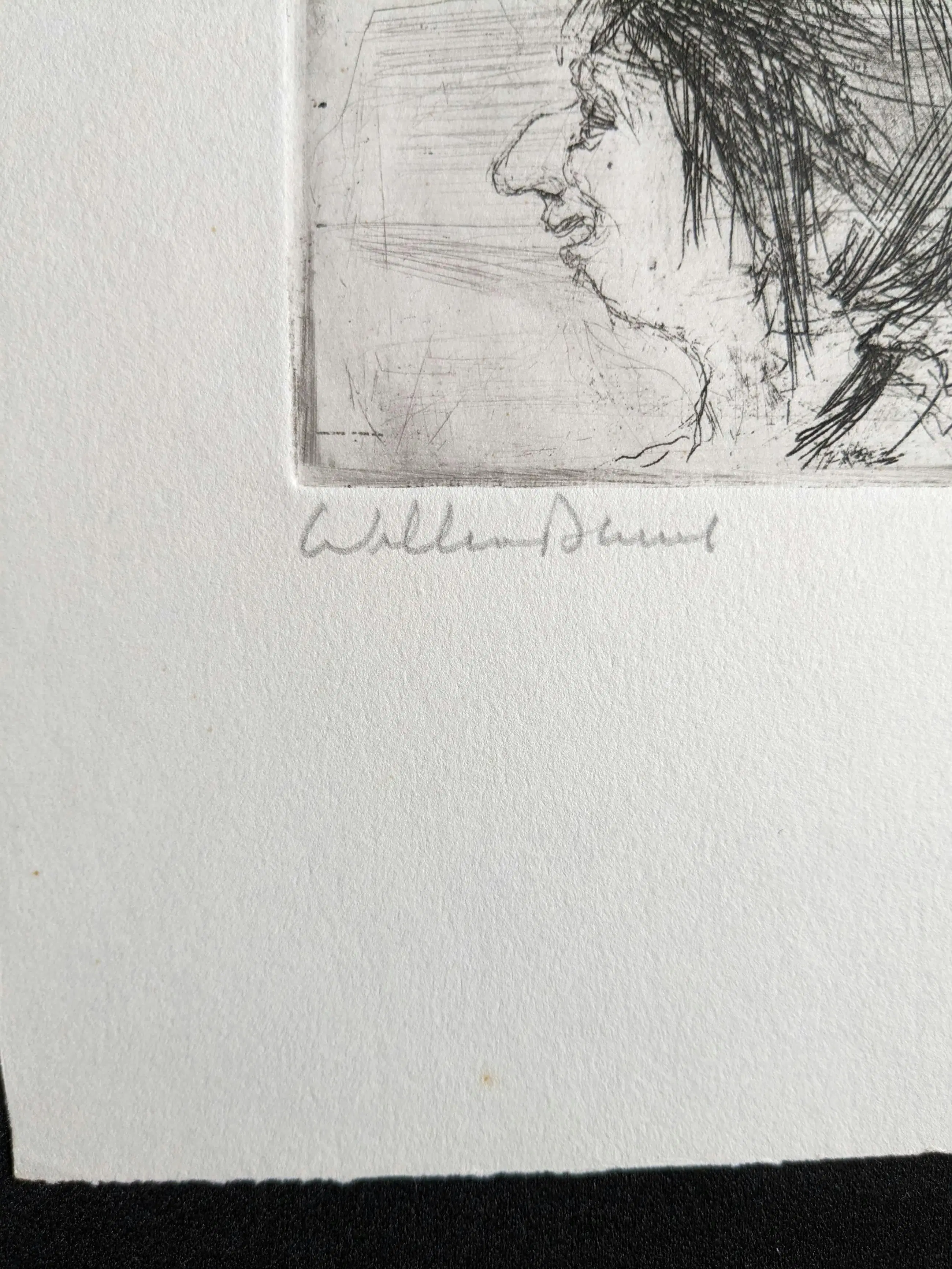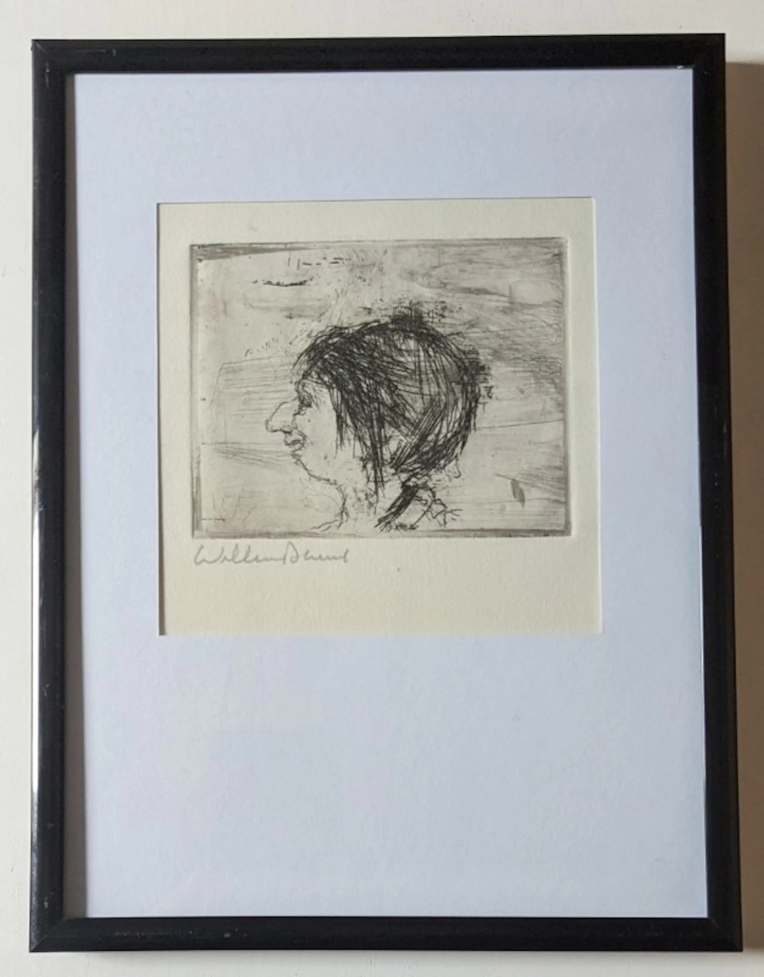 Ets gesigneerd "Wiliam D Kuik" in potlood. Het werk is een ets met een vrouwengezicht in profiel.