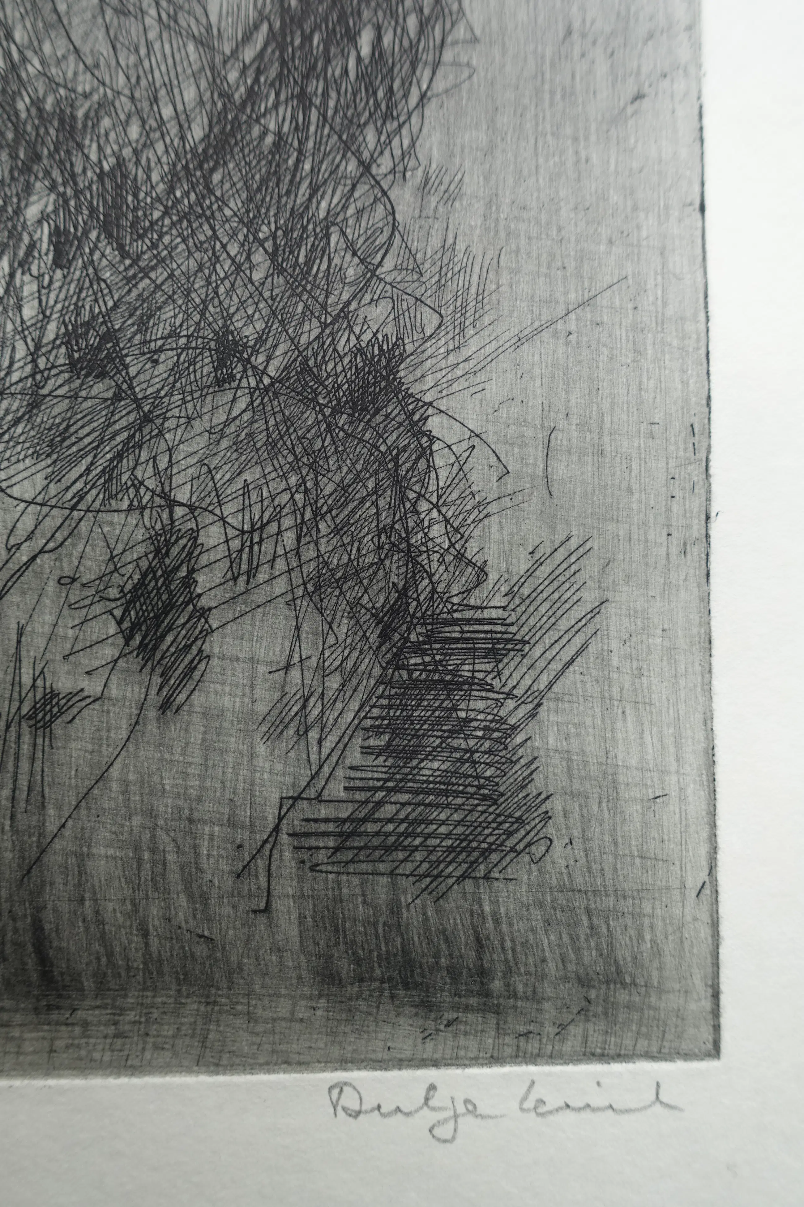 Ets in de karakteristieke stijl van Dirkje Kuik. Gesigneerd, betiteld en oplage-vermelding met potlood. De ets is afgedrukt op een blad van 43 x 34 cm. Zeer goede staat.