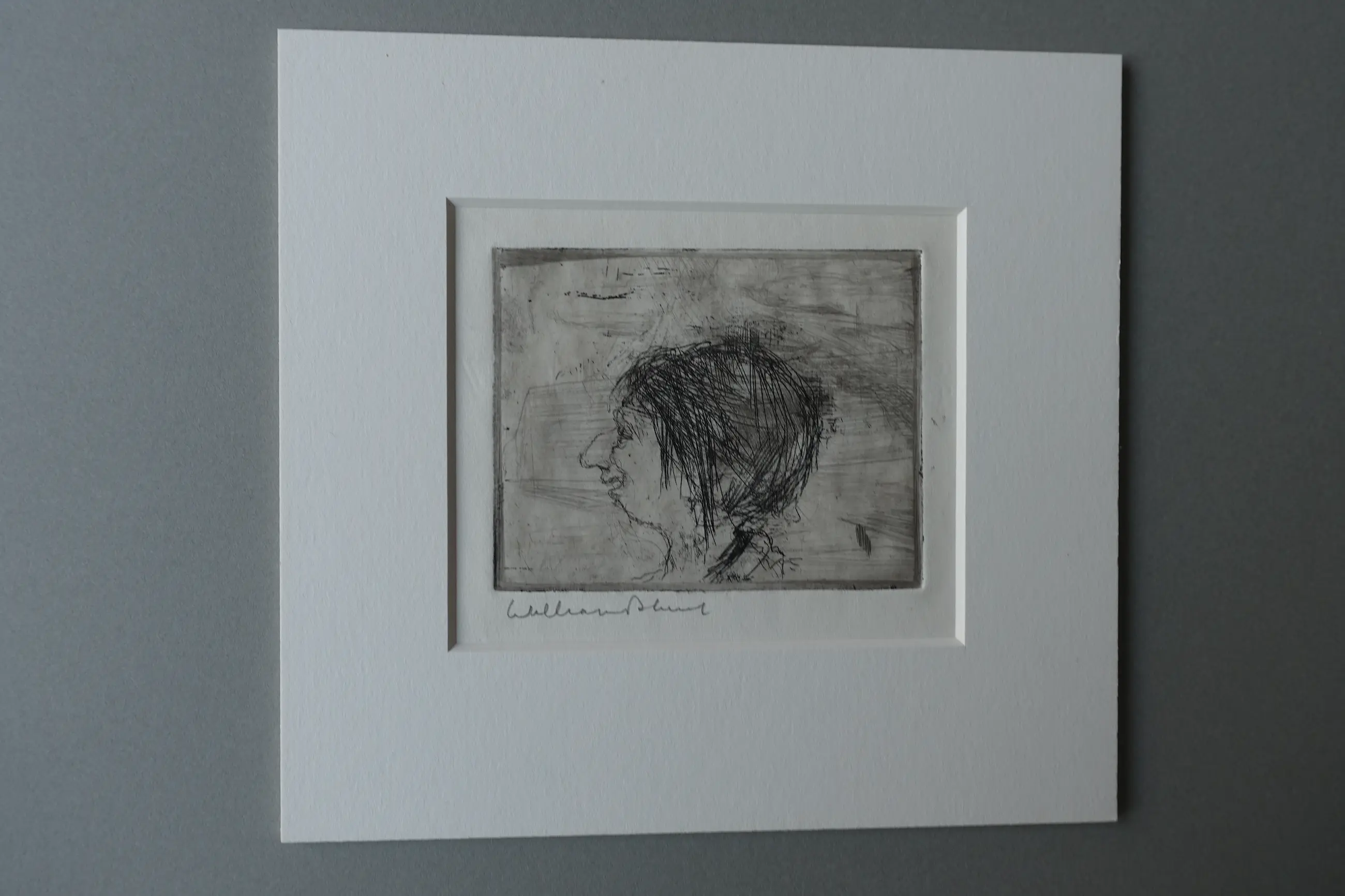 Indringend vrouwenportret ets uit de zestiger/zeventiger jaren van Dirkje Kuik.
