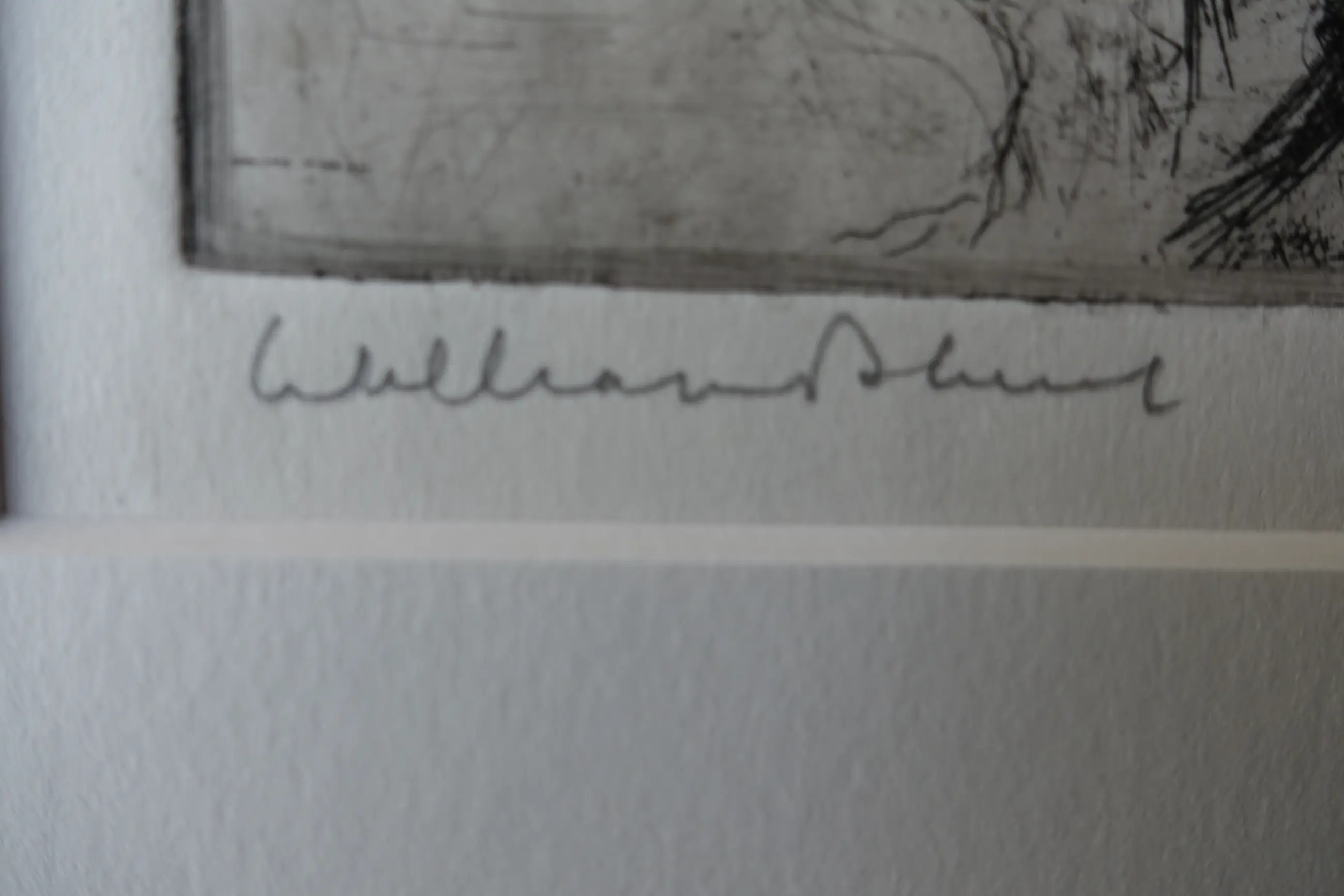 Los opgenomen in een passe-partout met het formaat 16.5 x 20 cm. Het beeldvlak is 8 x 10 cm. Het geheel verkeert in zeer goede staat. Het werk is met potlood gesigneerd William D Kuik. De verzending van deze ets is gratis .